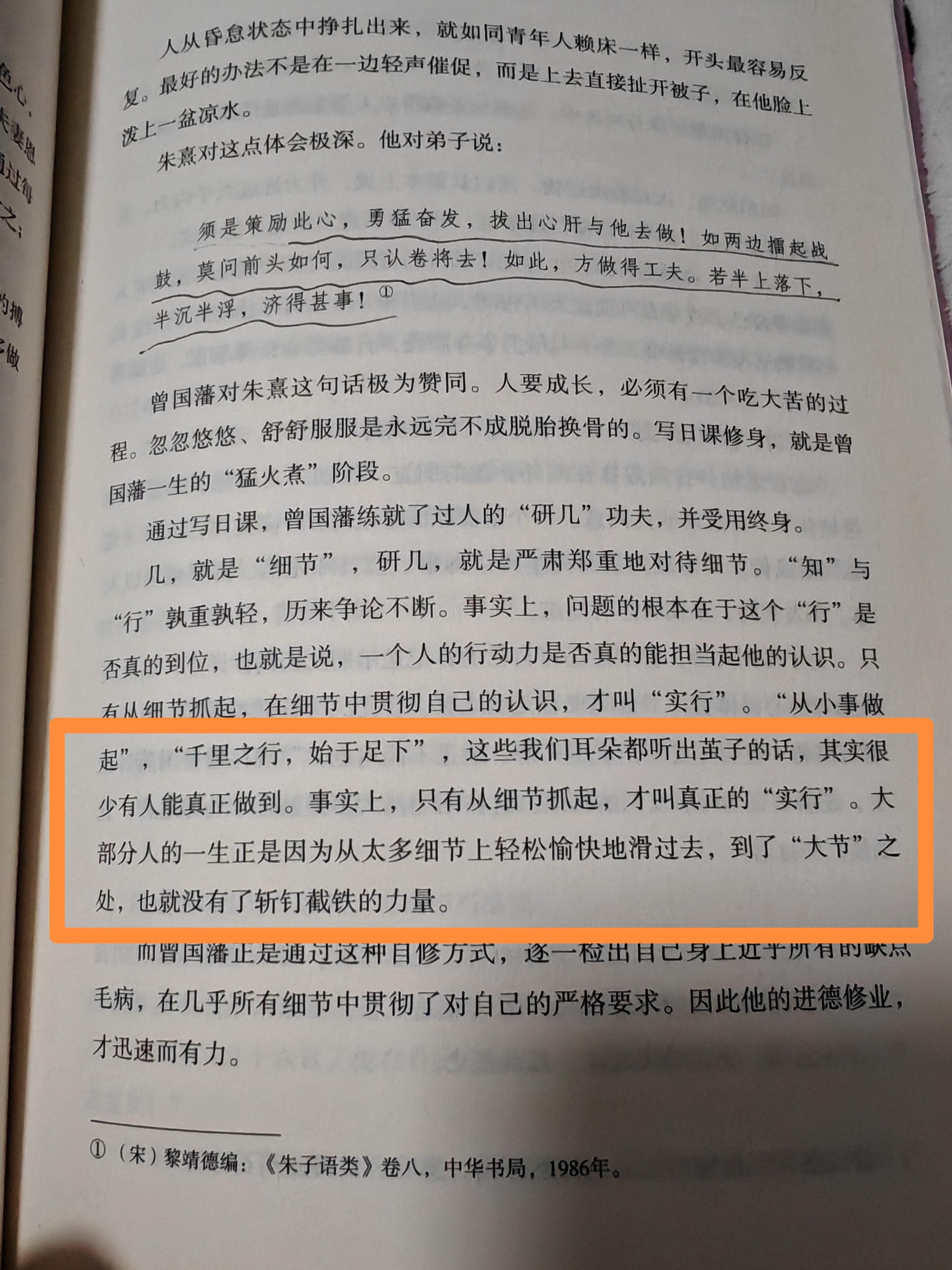 写日课,小事坚持做,一点点改变,汇聚成河! 事实上,只有从细节抓起,才叫真正的“实行”。大部分人的一生正是因为从太多细节上轻松愉快地滑过去,到了“大节”之处,也就没有了斩钉截铁的力量。