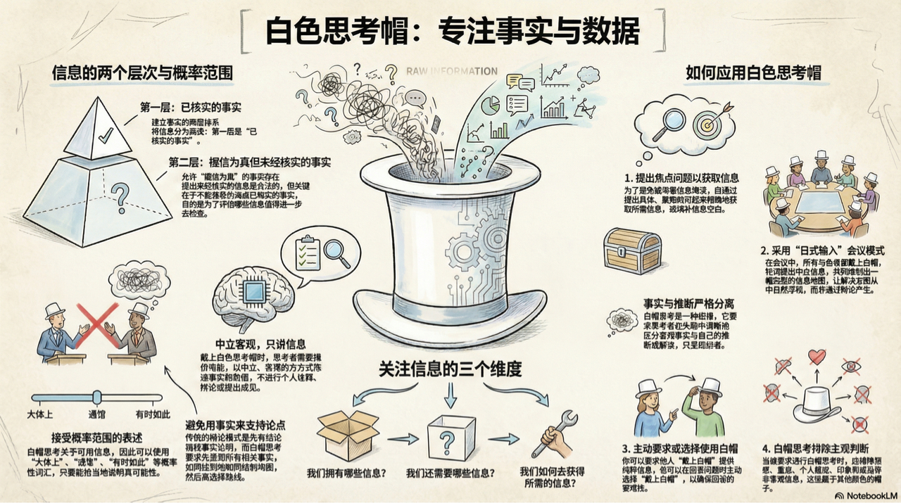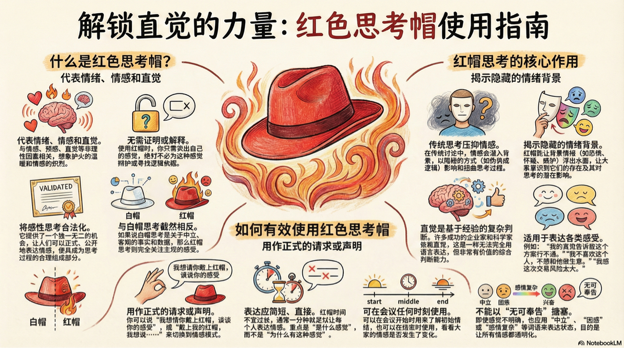 六种颜色的帽子代表六种截然不同的思考方向。 在职场应用中,关键在于一次只戴一顶帽子,将思维“分层”处理。这就是所谓的平行思考。 六顶思考帽就像彩色打印机一次只印一种颜色,最终合成全彩图像一样,一次只用一种思考模式,能极大减少大脑的内耗,缩短75%以上的会议时间 思考是一种技能,而不是一种天赋,它是可以像驾驶汽车一样被习得的。在这个日新月异的时代,我们不需要更聪明的大脑,我们需要的是更清晰的思维路径。《六顶思考帽》就是那张能带你走出迷雾的地图。 【静城·不服书】共读营《六顶思考帽》火热🔥进行中~