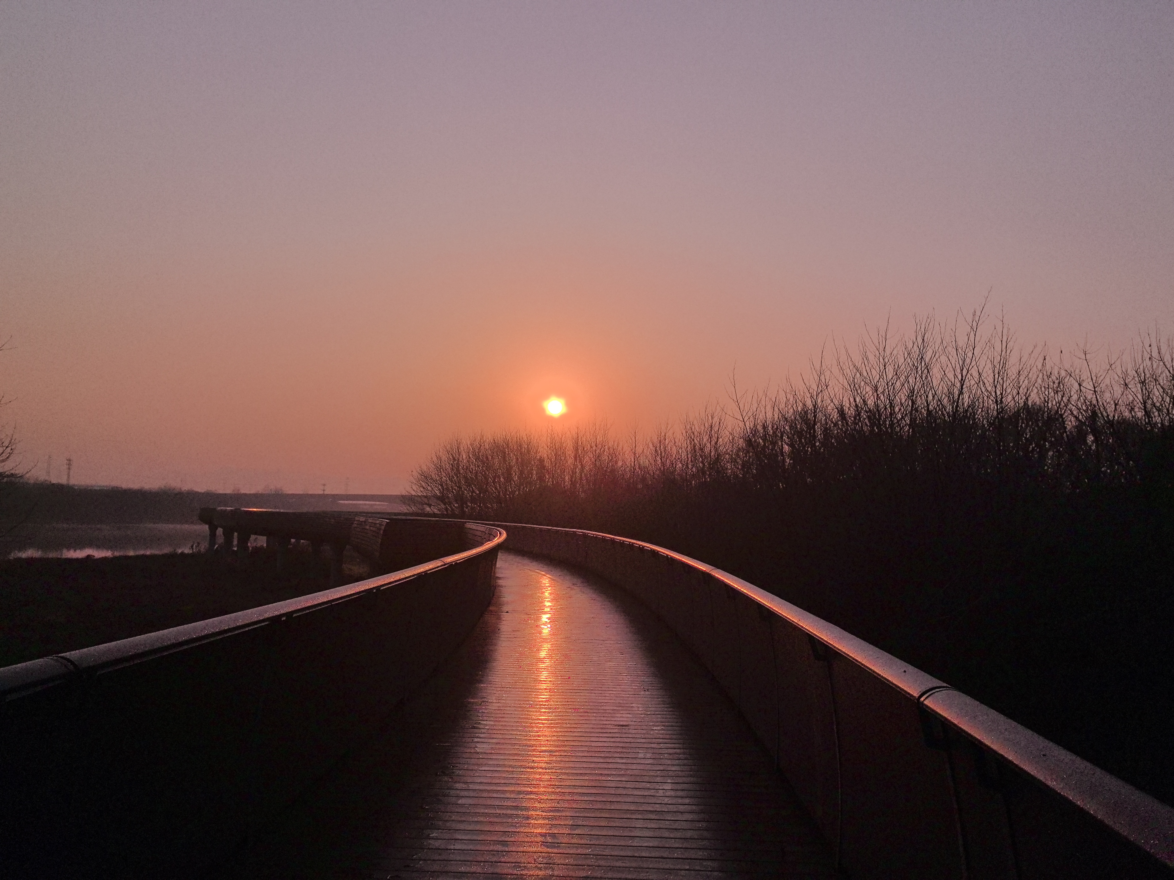 冬阳铸金,江畔散步,随手一拍都是金色浪漫。江面偷了晨阳的颜料,冬树当笔,写冬日静美诗行。