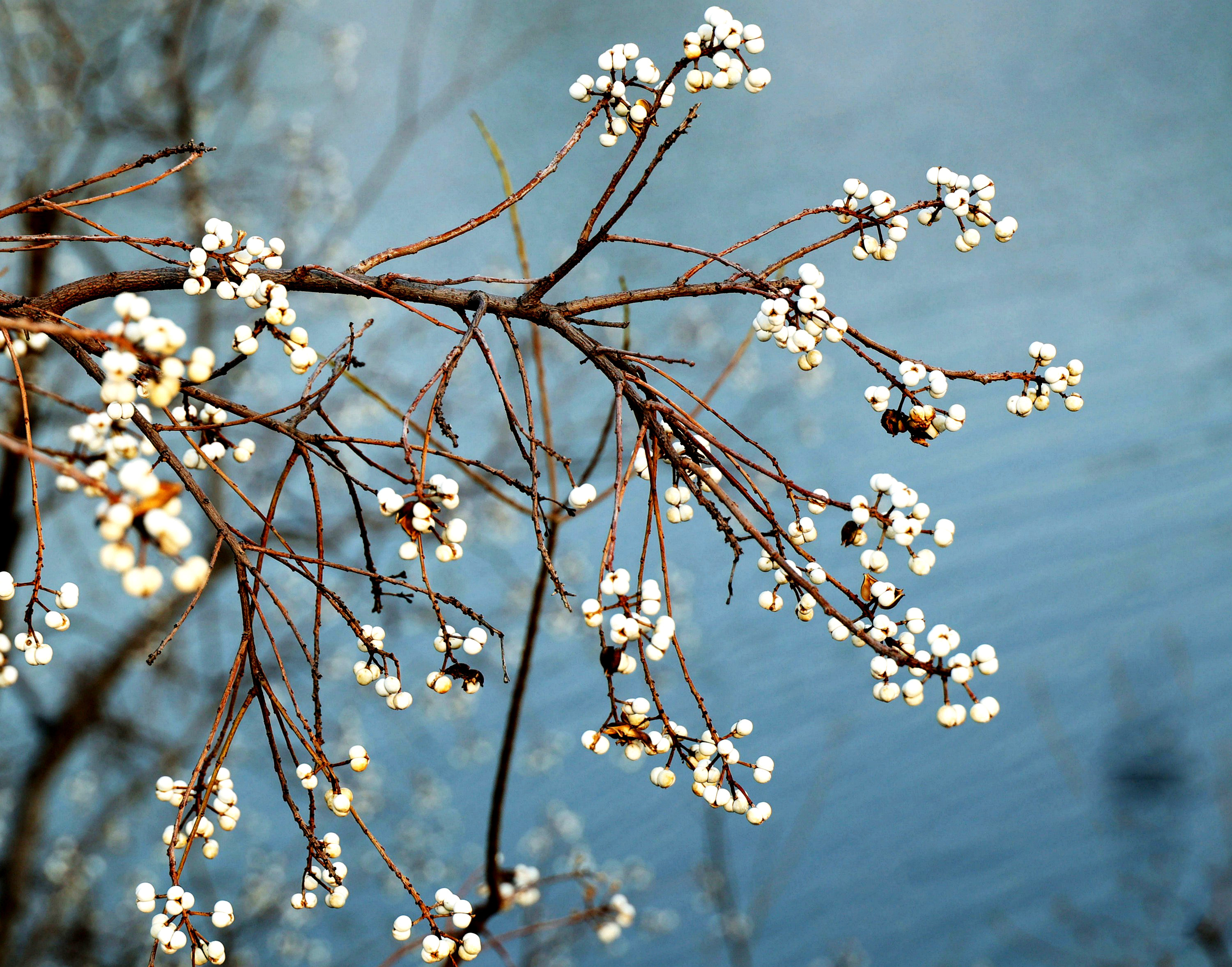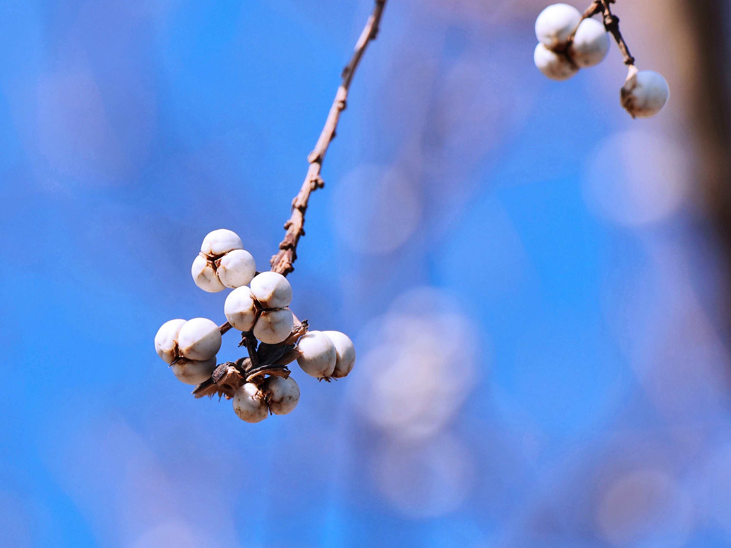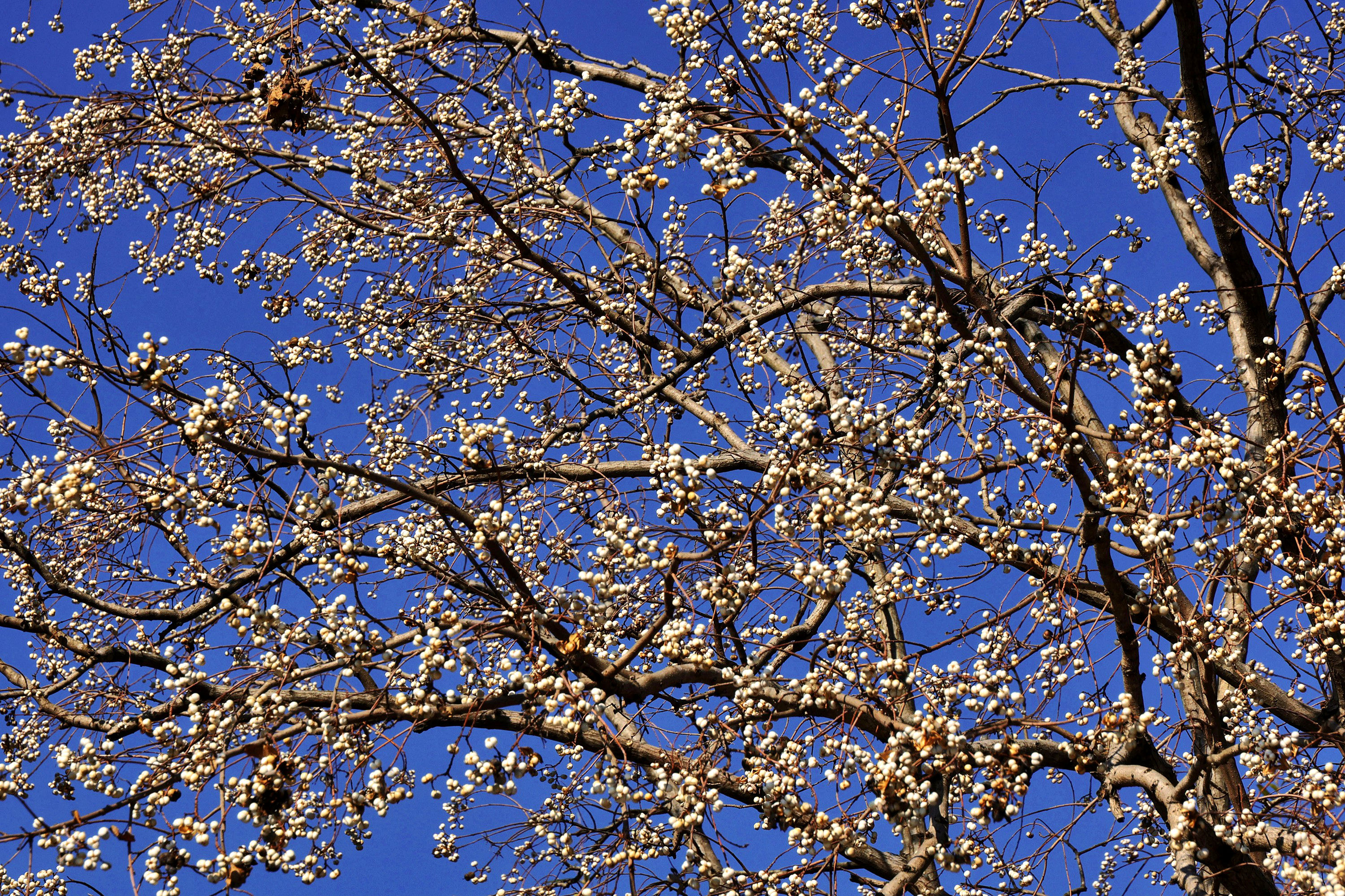 《冬日,乌桕那树洁白的诗意》冬日,乌桕之美在于果。到了冬季,乌桕的果实外壳悄然裂开,露出纯白果核,那便是“乌桕子”,三颗一簇,圆滚滚的,白得如瓷的温润,却又透着玉的莹润。远看,一树乌桕子似白梅盛开,时而有鸟雀落在枝头,啄食这白果子,如诗如画。