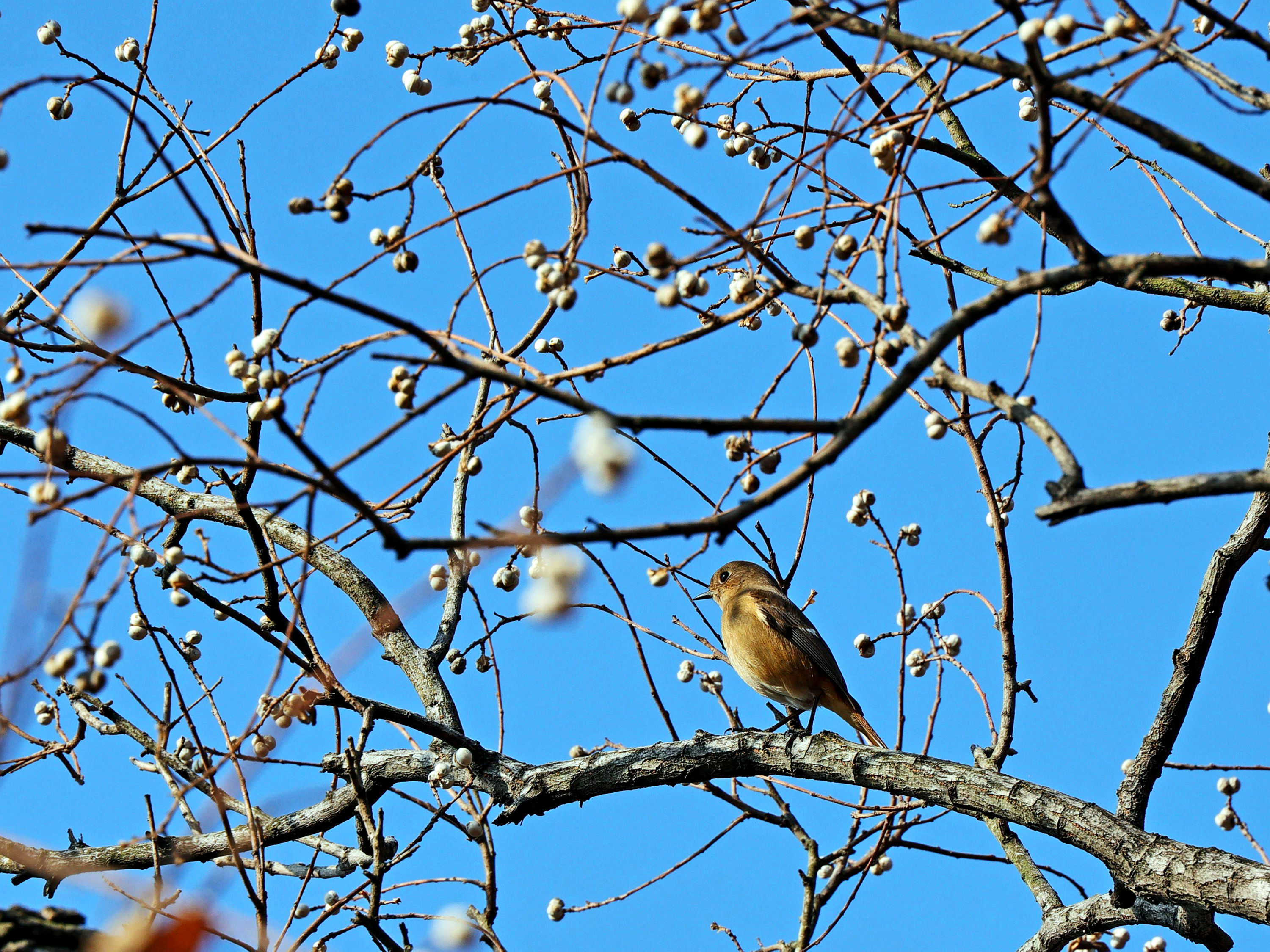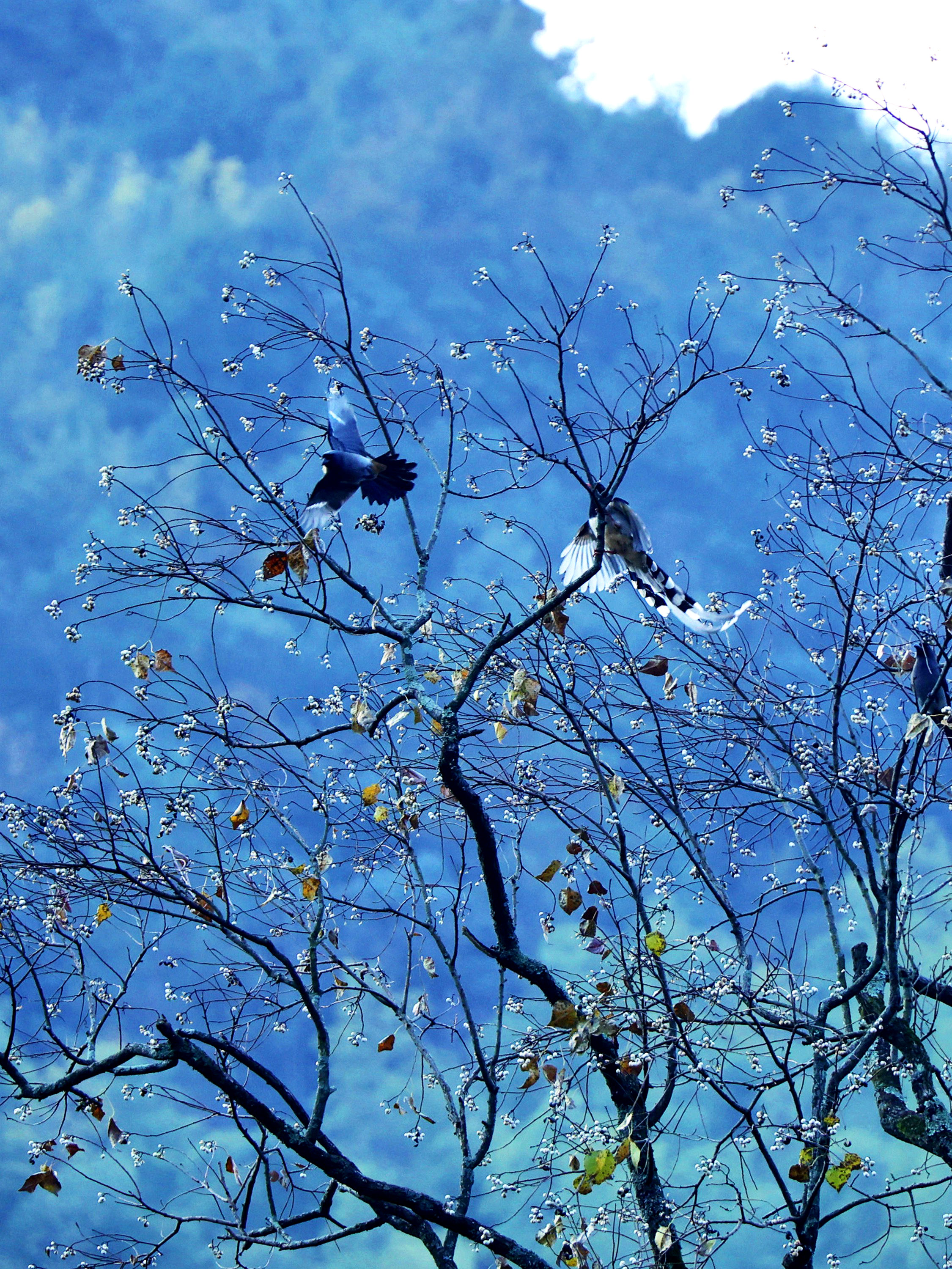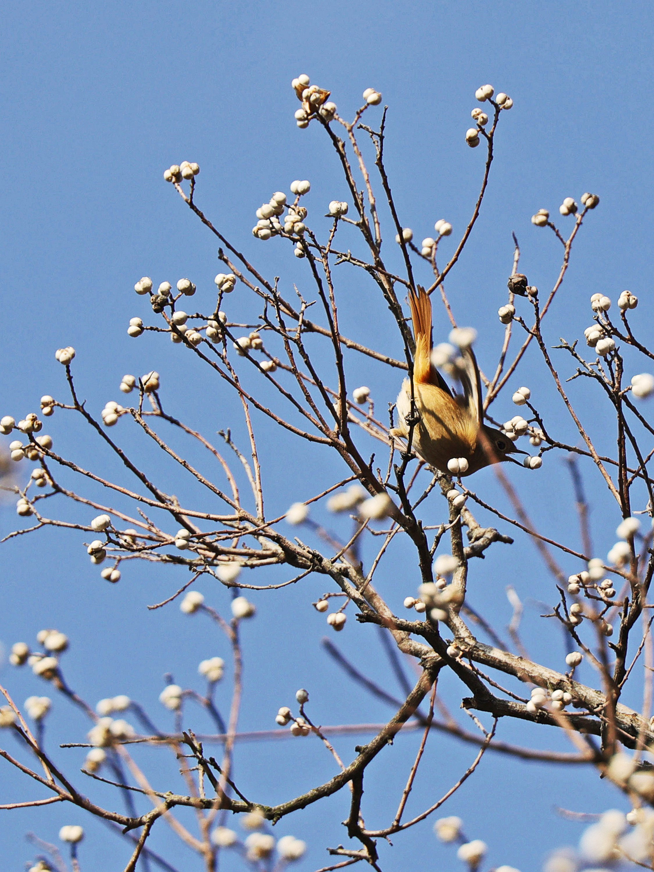 《冬日,乌桕那树洁白的诗意》冬日,乌桕之美在于果。到了冬季,乌桕的果实外壳悄然裂开,露出纯白果核,那便是“乌桕子”,三颗一簇,圆滚滚的,白得如瓷的温润,却又透着玉的莹润。远看,一树乌桕子似白梅盛开,时而有鸟雀落在枝头,啄食这白果子,如诗如画。