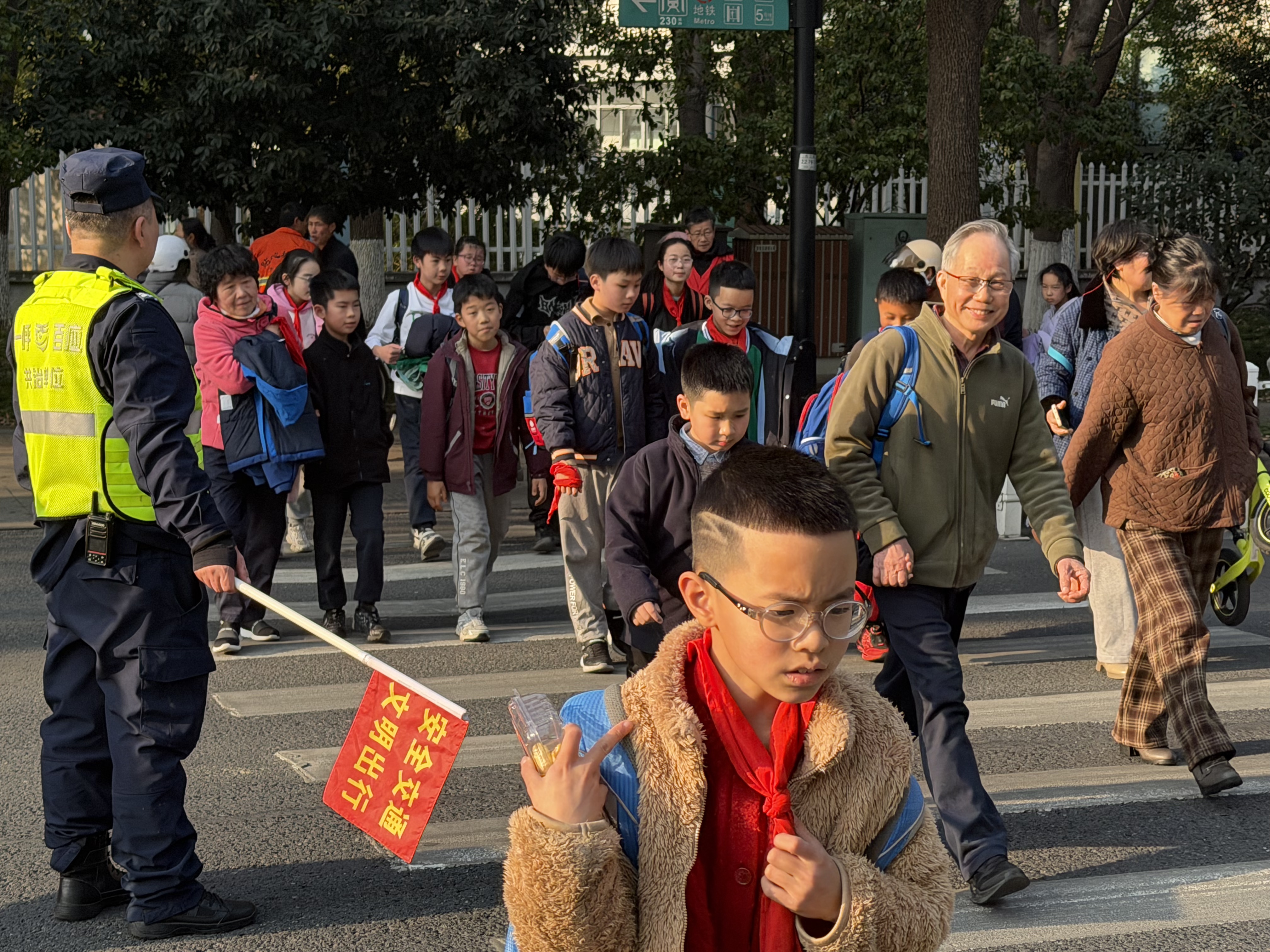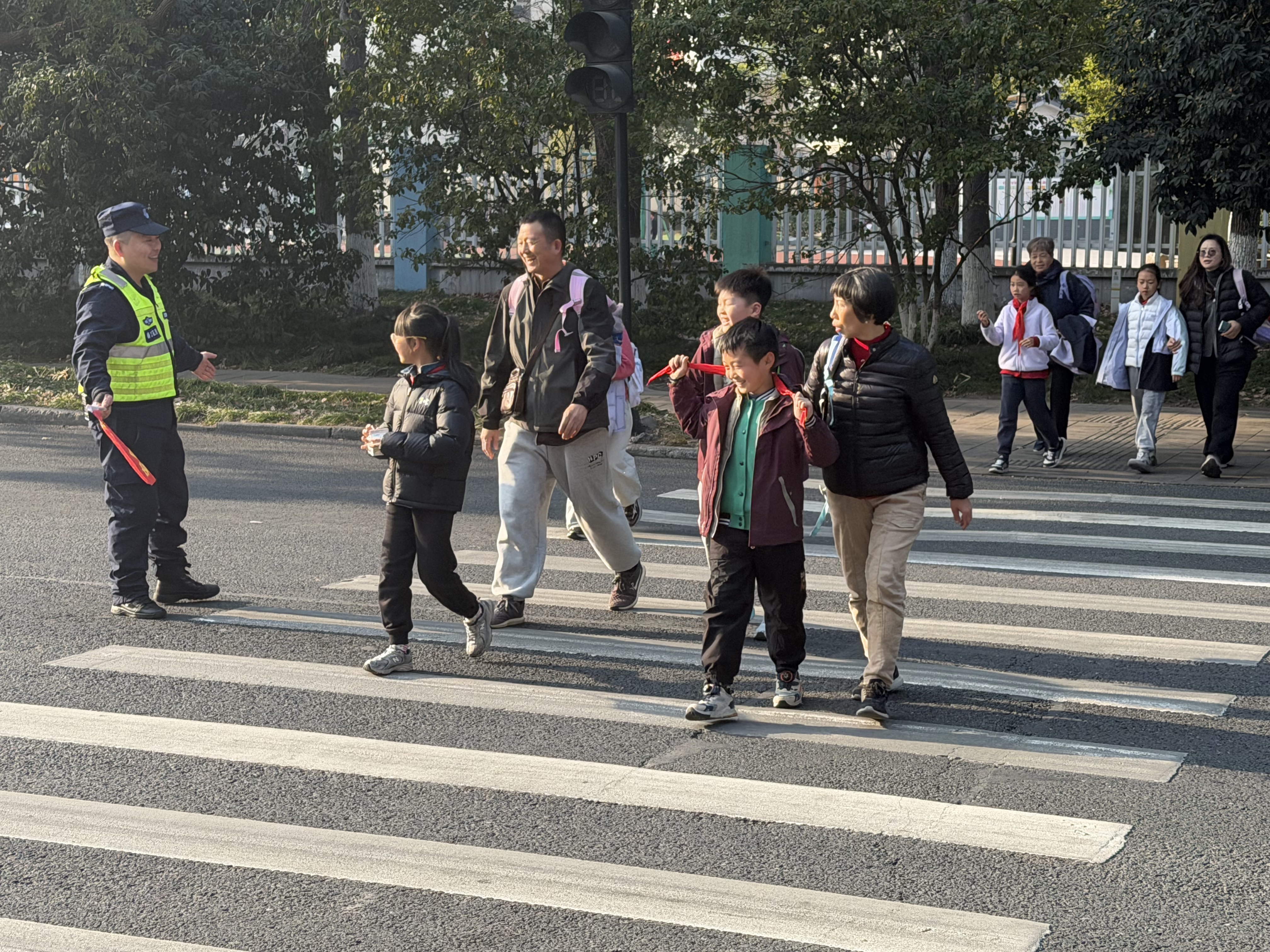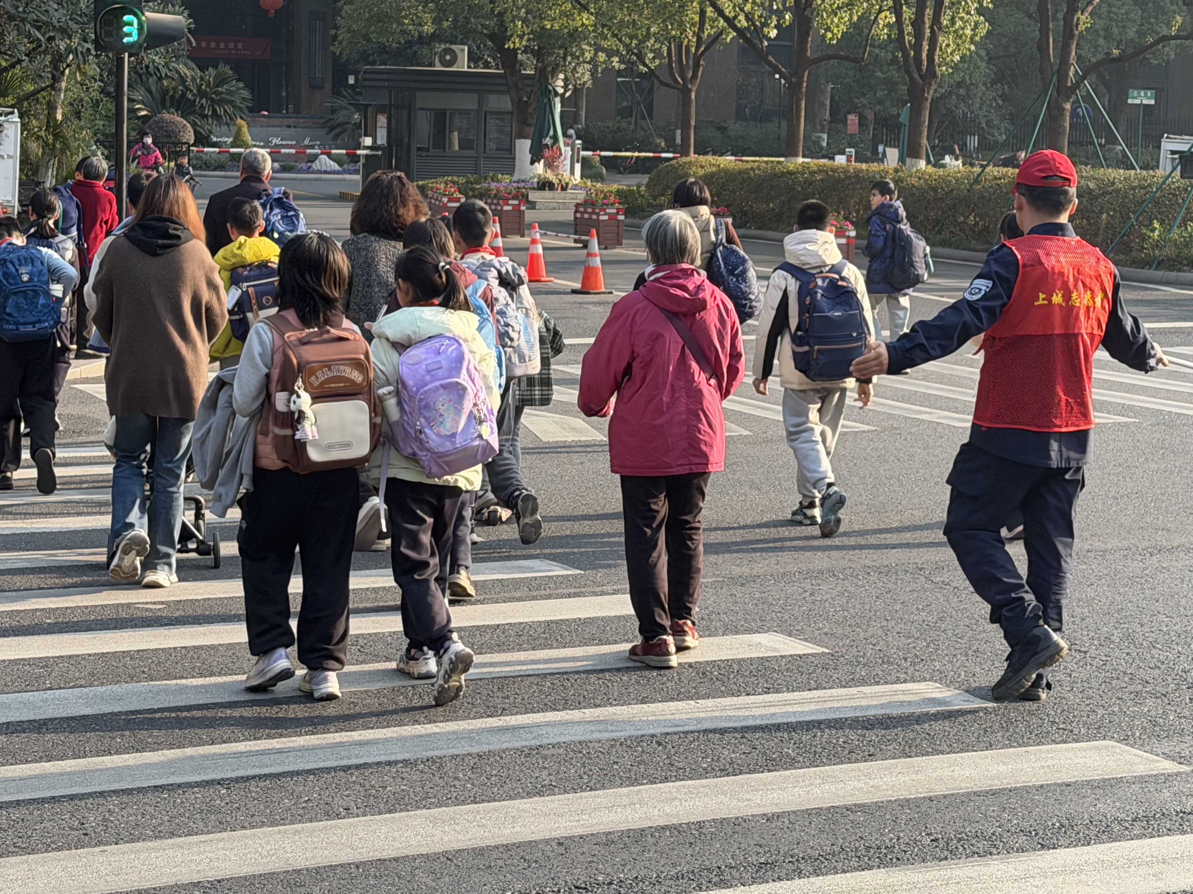 1月16号又是一个星期过去了·紫阳街道春江社区·凤凰社区每天清晨七点到八点,放学时段四点到五点,这些社区志愿者们便准时出现在交通繁忙的路口。他们中有的是退休人员,有的是社区居民,还有的是学生家长,却因同一个目标汇聚于此:用双手为孩子们撑起一片安全的通行空间。当红灯亮起,他们迅速举起指挥旗,用坚定的手势拦停车辆;绿灯亮起时,他们弯腰牵起低年级孩子的手,轻声叮嘱“慢慢走,别着急”,带着孩子们穿过斑马线。对于独自上学的高年级学生,他们会竖起大拇指鼓励:“自己过马路真勇敢,记得左右看车哦!”遇到行动不便的長者老人带着孩子,他们会主动上前搀扶行动不便长者直到安全抵达路边。曾有一位志愿者多次服务他·他笑着挥手大母指点赞·志愿者心里却涌起一股暖流——这份守护,原来早已超越了职责本身,成了孩子们心中最温暖的依靠。志愿者们的付出,不仅让孩子们的上学路更安全,更在潜移默化中传递着文明的力量。许多孩子在志愿者的引导下,学会了主动向礼让的司机鞠躬致谢;一些家长在志愿者的提醒下,开始自觉遵守交通规则,不再随意停车拥堵路口。渐渐地,解决钱江三桥大修后来高流量压力在这个路口的拥堵减少了,车辆礼让行人的现象多了,孩子们的笑脸也更灿烂了。正如一位家长所说:“看到志愿者们风雨无阻地守护,我们心里特别踏实,也更懂得了遵守规则的重要性。” “小手牵大手,安全共守护”,这不仅是志愿者们的口号,更是他们用行动践行的承诺。他们像一盏盏明灯,照亮孩子们的上学路,也温暖着整座城市的心。这份平凡中的伟大,无需惊天动地,却在日复一日的坚守中,诠释着奉献的真谛。愿这份温暖能感染更多人,让“护学岗”成为城市里永不落幕的风景,让每一个孩子的上学路,都充满阳光与希望。