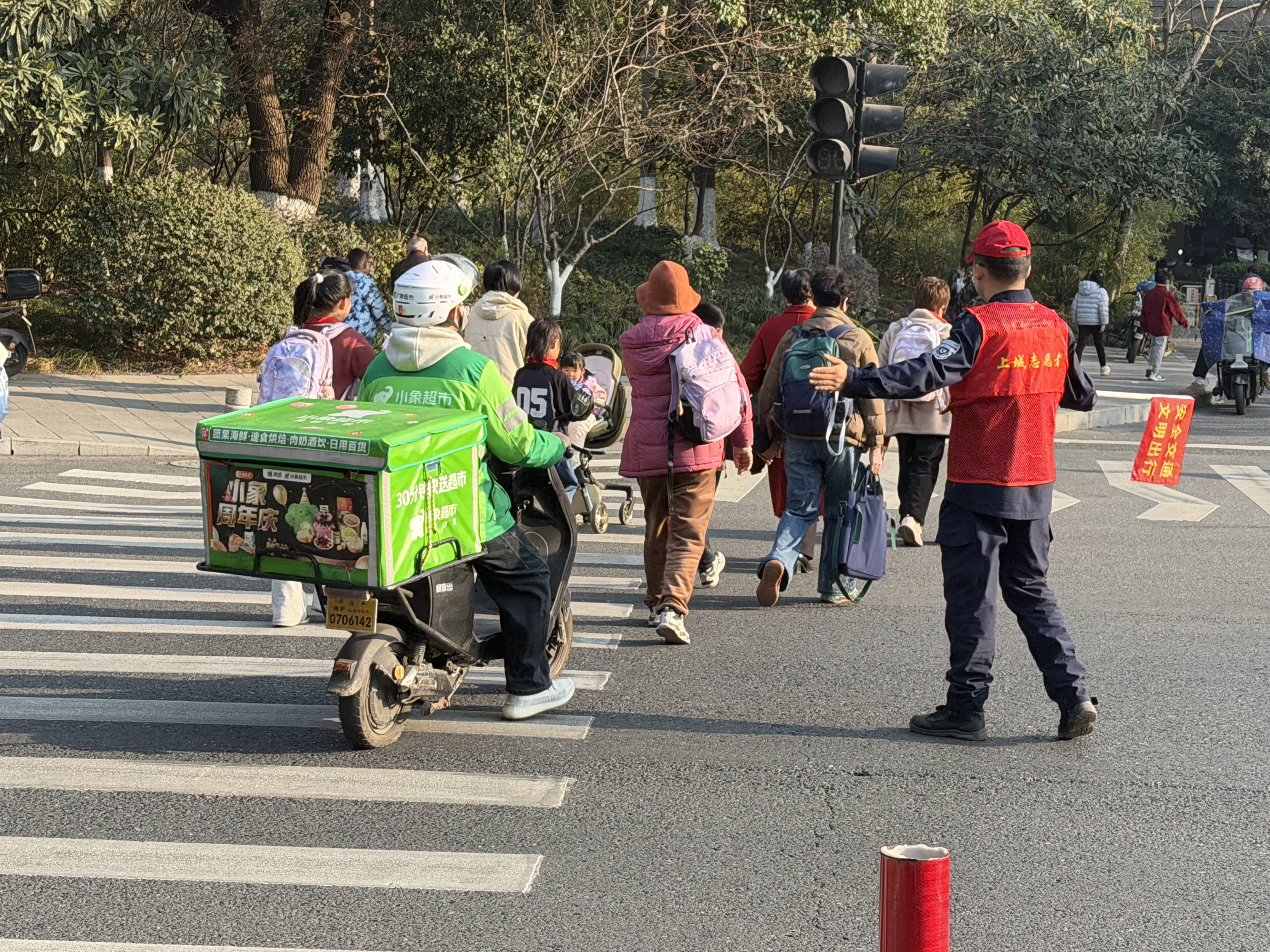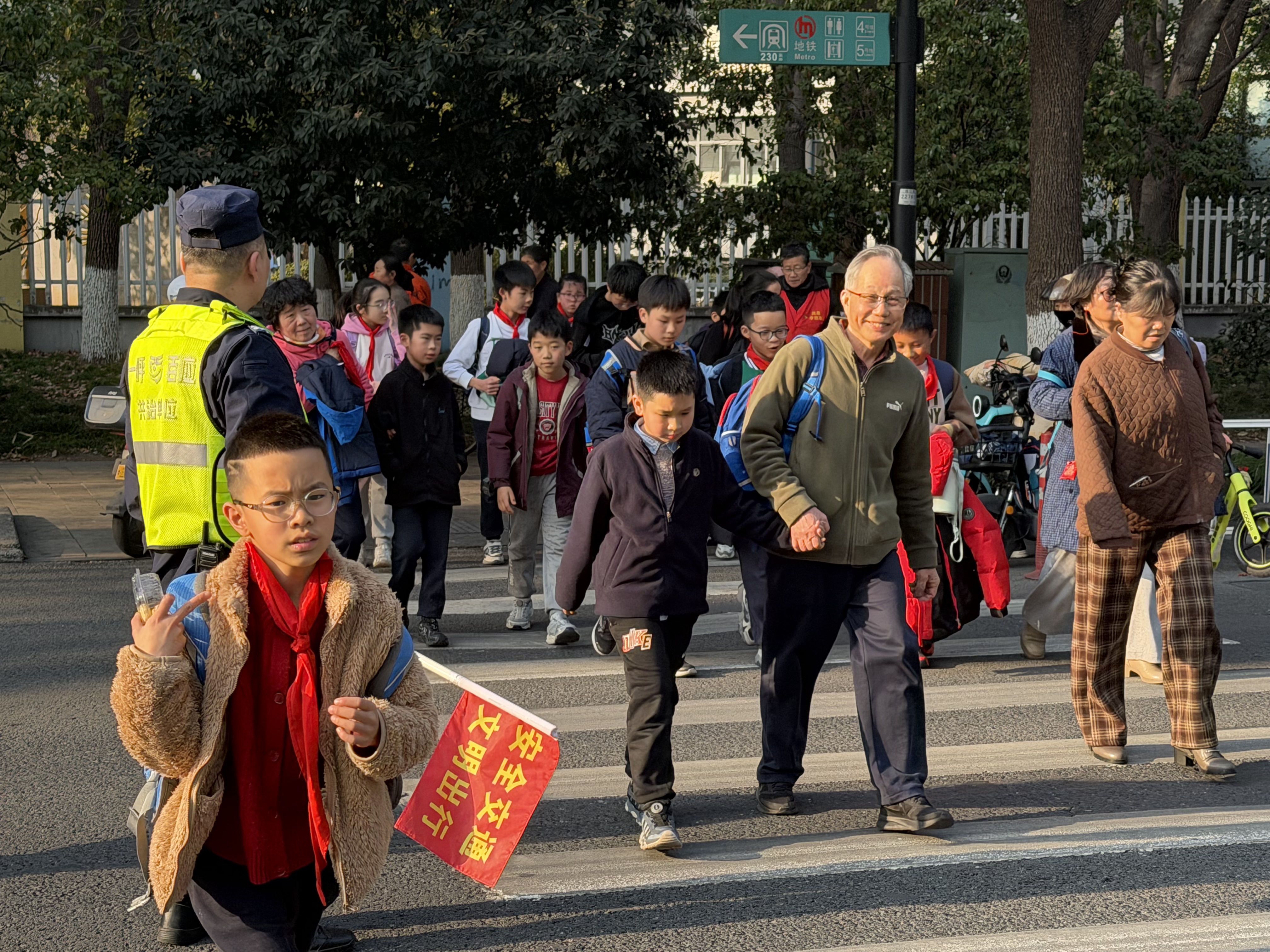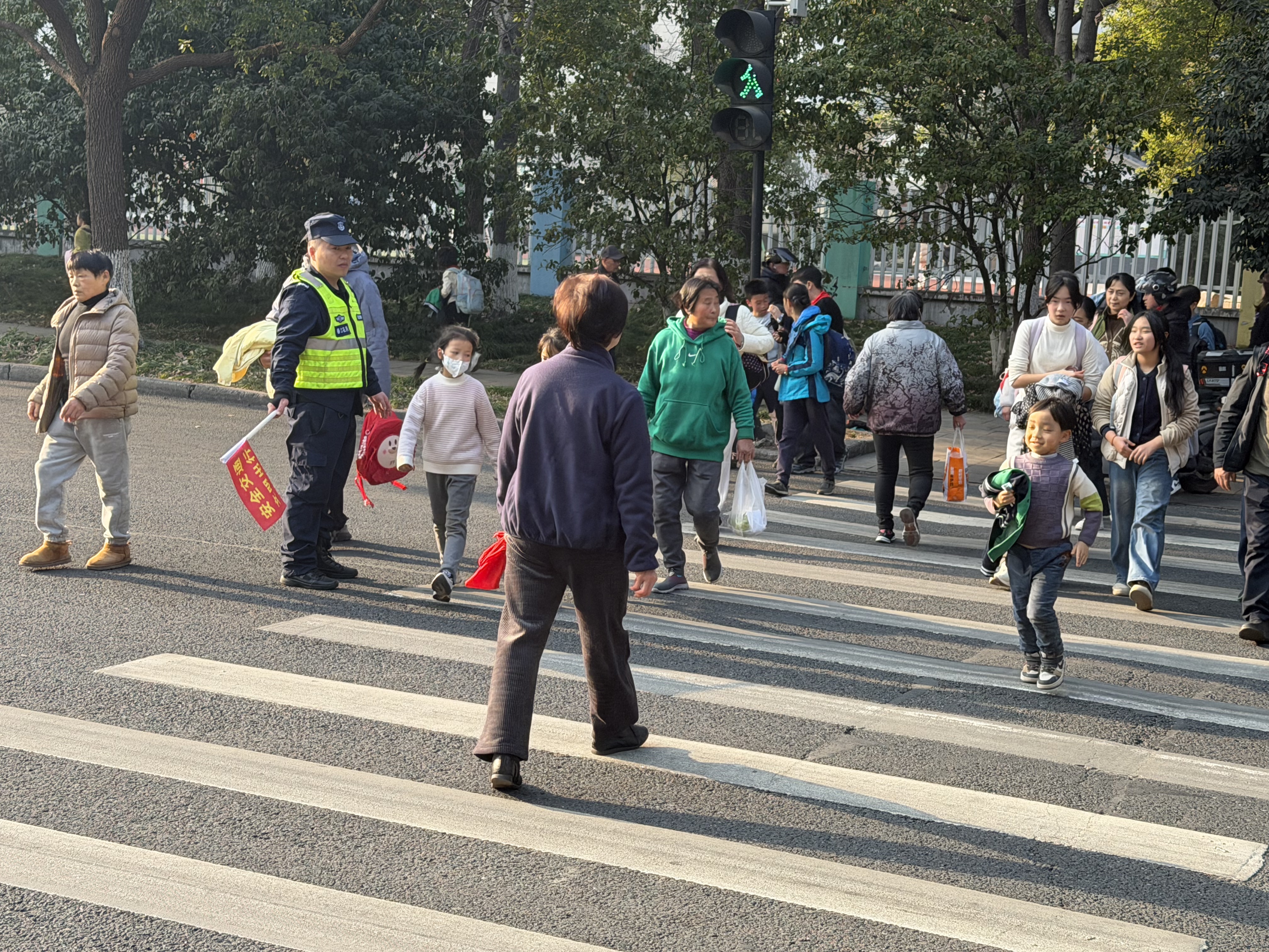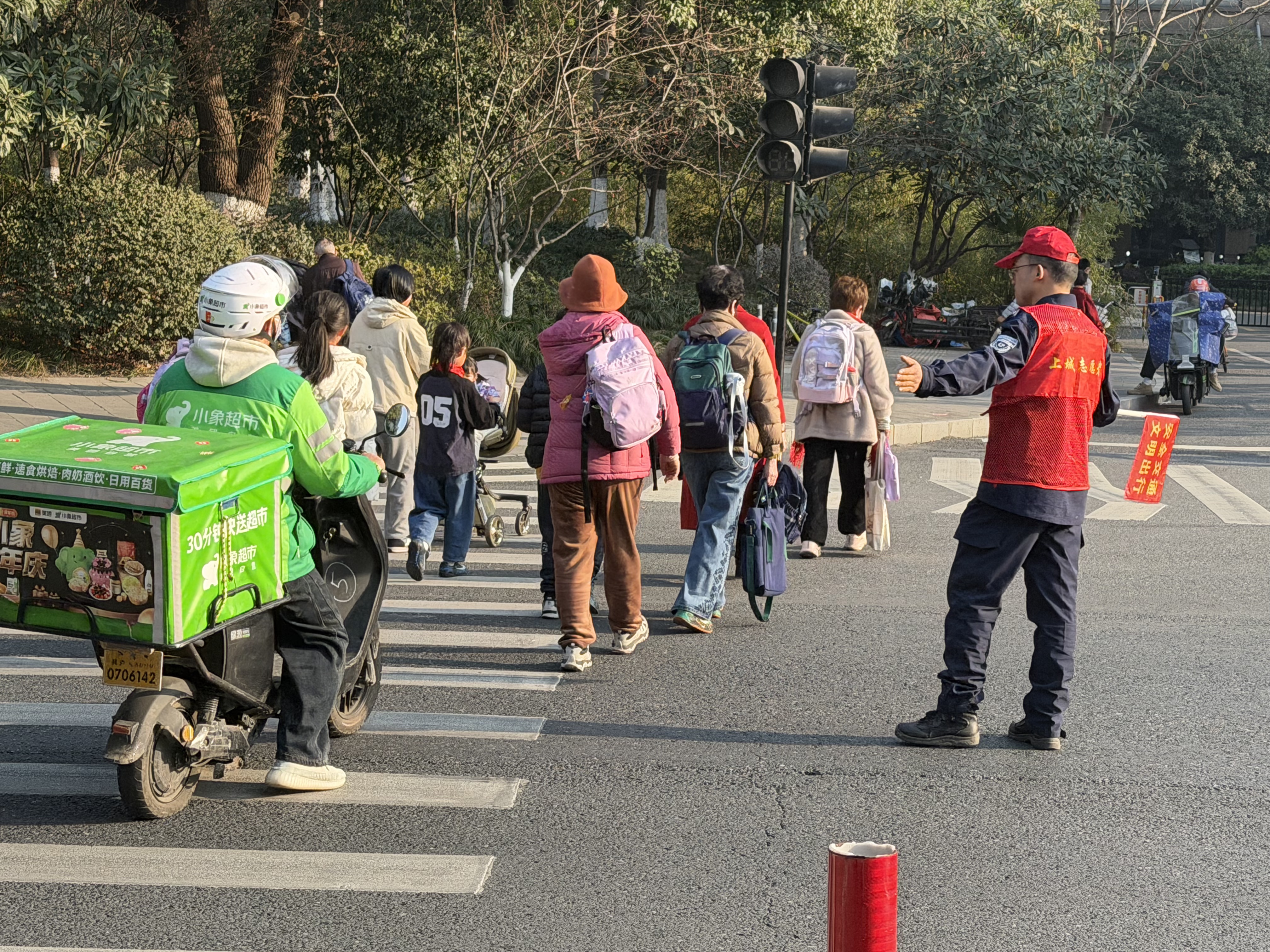 1月16号又是一个星期过去了·紫阳街道春江社区·凤凰社区每天清晨七点到八点,放学时段四点到五点,这些社区志愿者们便准时出现在交通繁忙的路口。他们中有的是退休人员,有的是社区居民,还有的是学生家长,却因同一个目标汇聚于此:用双手为孩子们撑起一片安全的通行空间。当红灯亮起,他们迅速举起指挥旗,用坚定的手势拦停车辆;绿灯亮起时,他们弯腰牵起低年级孩子的手,轻声叮嘱“慢慢走,别着急”,带着孩子们穿过斑马线。对于独自上学的高年级学生,他们会竖起大拇指鼓励:“自己过马路真勇敢,记得左右看车哦!”遇到行动不便的長者老人带着孩子,他们会主动上前搀扶行动不便长者直到安全抵达路边。曾有一位志愿者多次服务他·他笑着挥手大母指点赞·志愿者心里却涌起一股暖流——这份守护,原来早已超越了职责本身,成了孩子们心中最温暖的依靠。志愿者们的付出,不仅让孩子们的上学路更安全,更在潜移默化中传递着文明的力量。许多孩子在志愿者的引导下,学会了主动向礼让的司机鞠躬致谢;一些家长在志愿者的提醒下,开始自觉遵守交通规则,不再随意停车拥堵路口。渐渐地,解决钱江三桥大修后来高流量压力在这个路口的拥堵减少了,车辆礼让行人的现象多了,孩子们的笑脸也更灿烂了。正如一位家长所说:“看到志愿者们风雨无阻地守护,我们心里特别踏实,也更懂得了遵守规则的重要性。” “小手牵大手,安全共守护”,这不仅是志愿者们的口号,更是他们用行动践行的承诺。他们像一盏盏明灯,照亮孩子们的上学路,也温暖着整座城市的心。这份平凡中的伟大,无需惊天动地,却在日复一日的坚守中,诠释着奉献的真谛。愿这份温暖能感染更多人,让“护学岗”成为城市里永不落幕的风景,让每一个孩子的上学路,都充满阳光与希望。