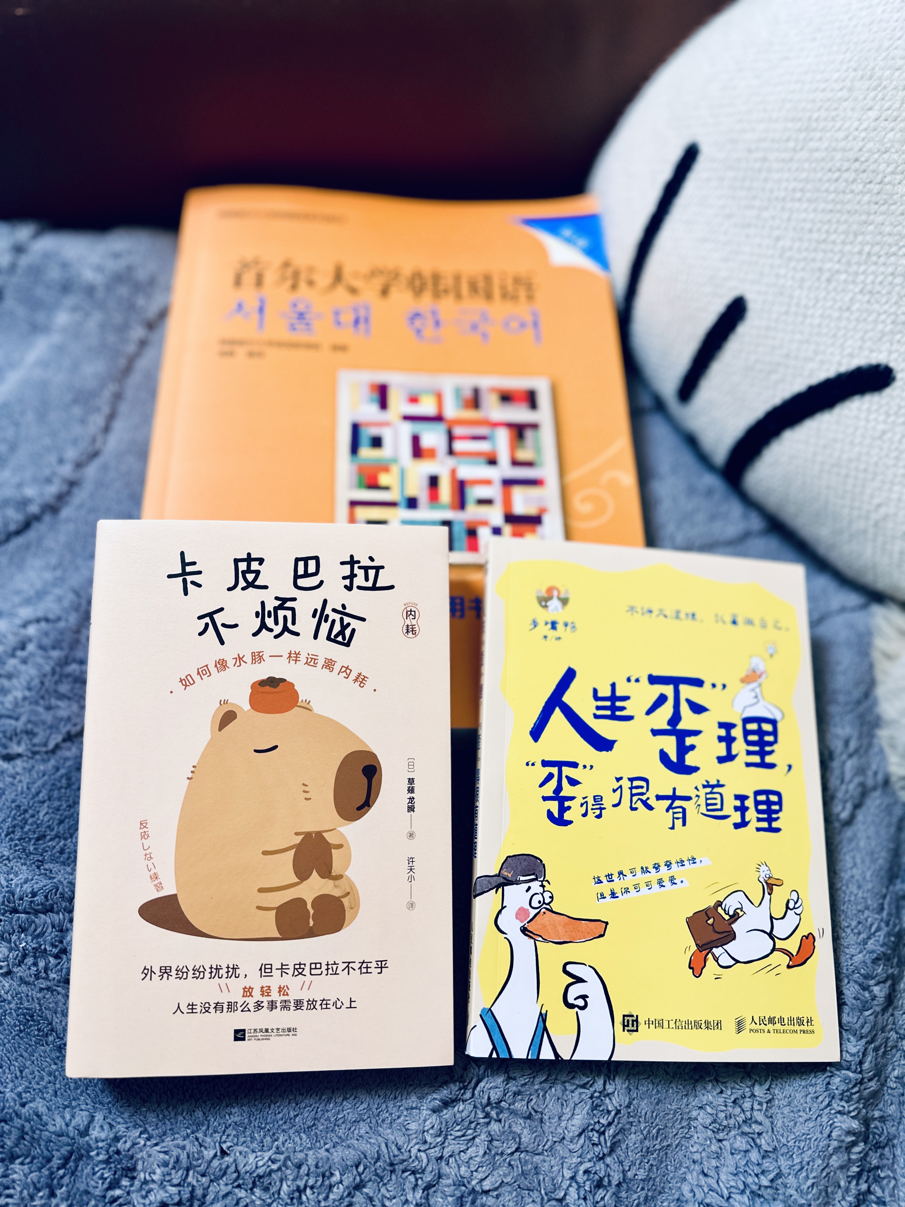 前几日陪着大宝去济州岛, 考试+观光; 过程中大宝比较脆弱、能量偏低; 无意中刷到《卡皮巴拉不烦恼》, 下单、收到, 希望我的大宝多些勇敢和从容; 翻到这些书的某些章节或画面能粲然一笑! ❤️ The end.