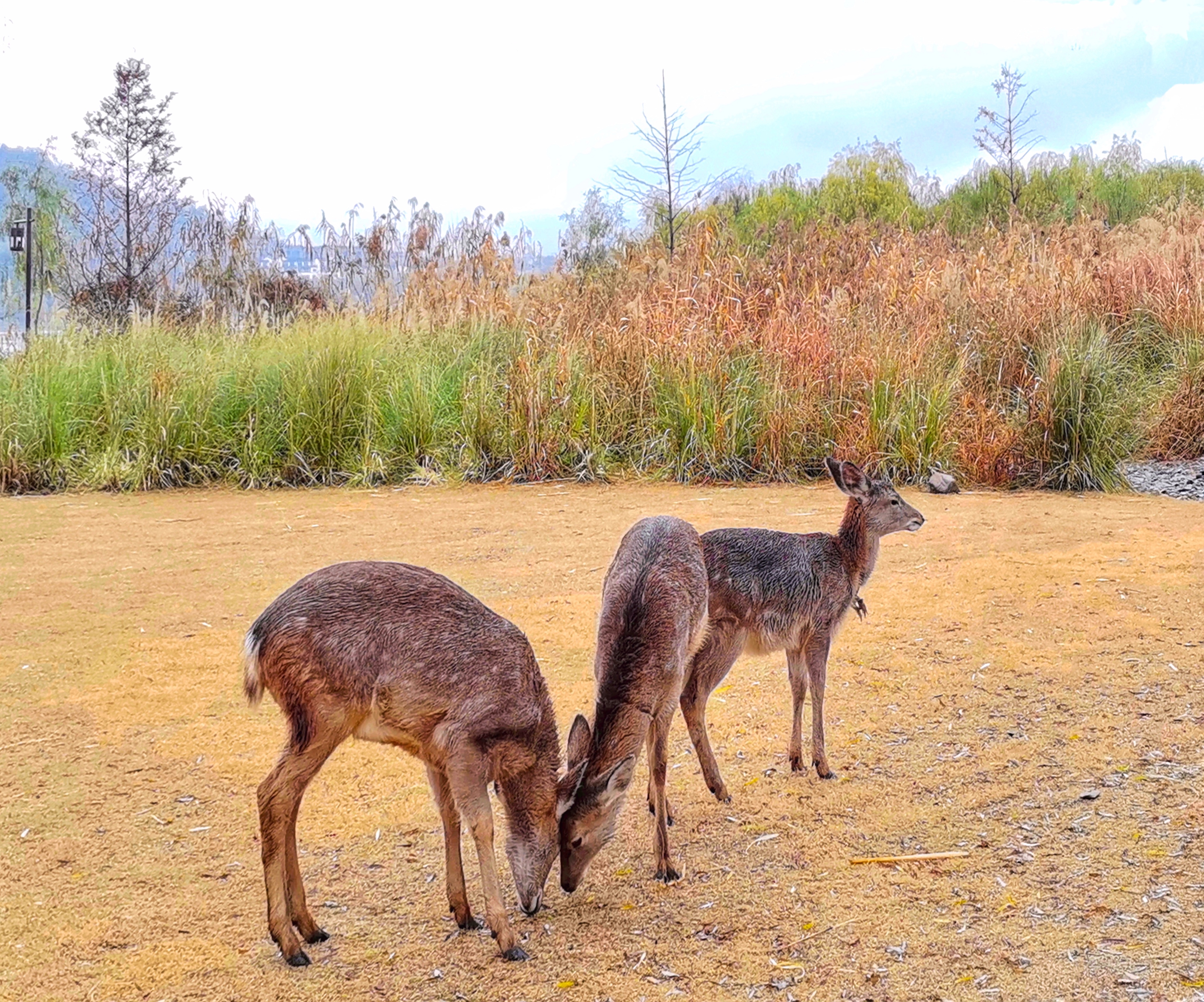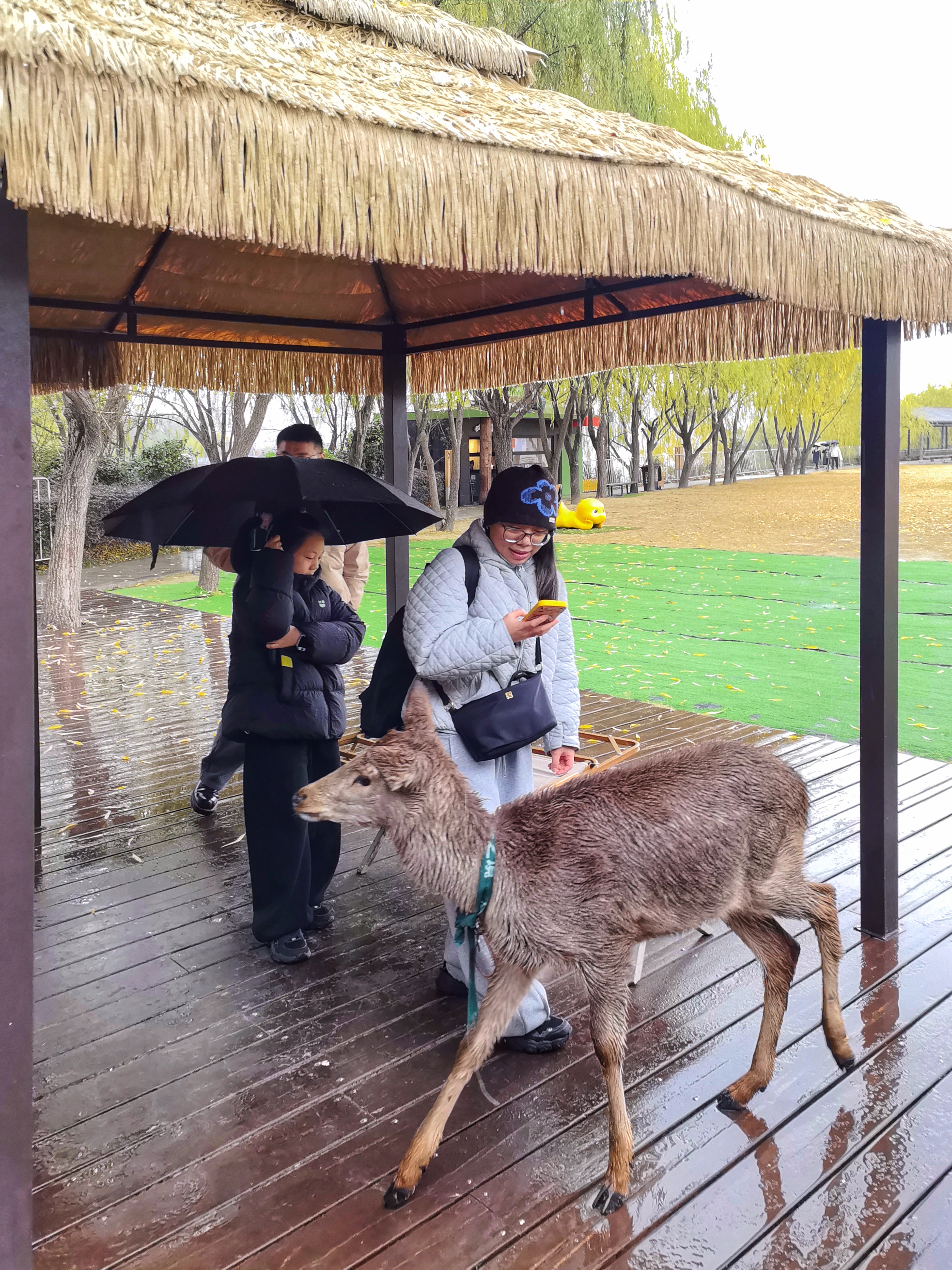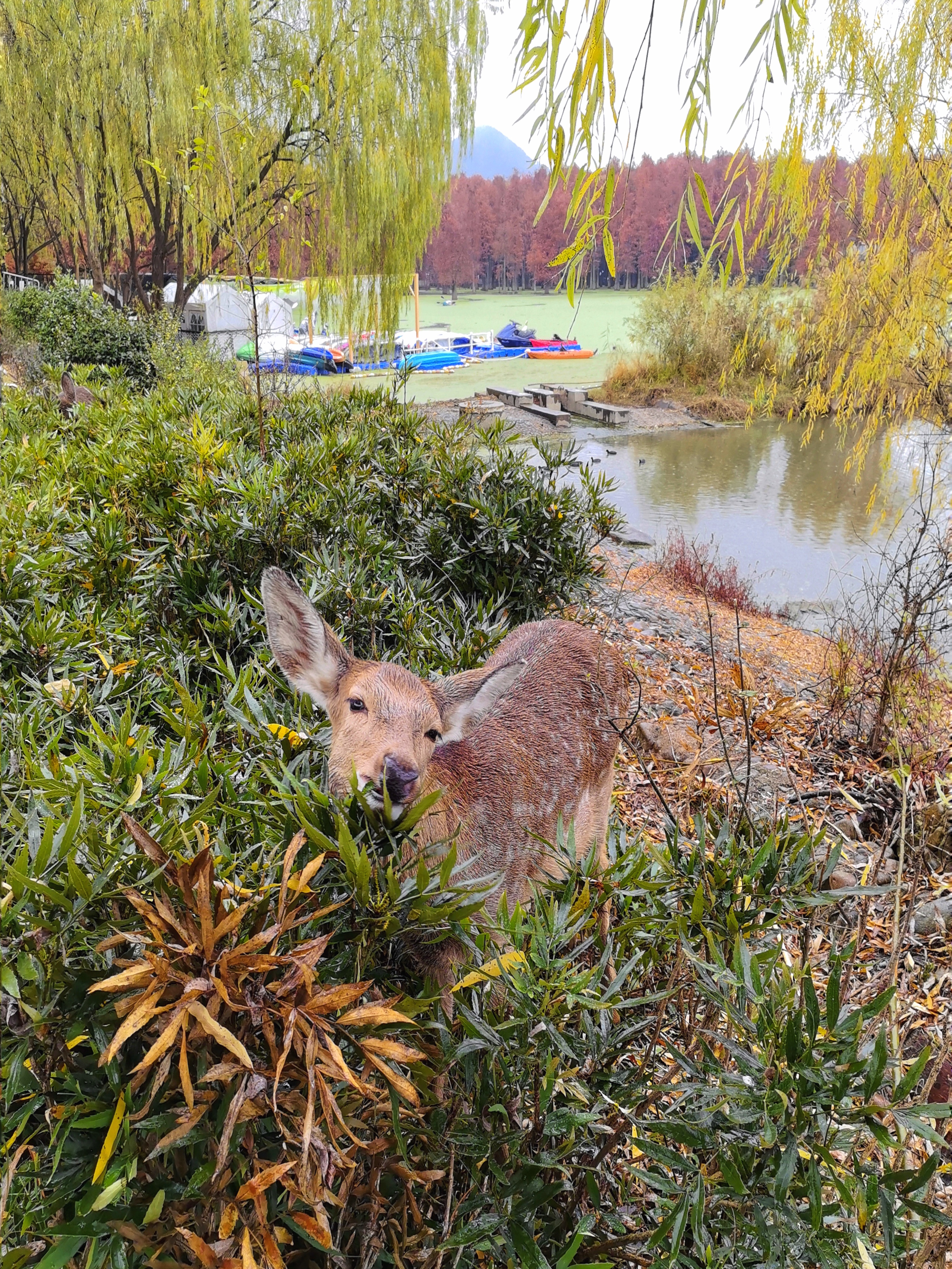 有一种美叫和谐 生活不缺美,缺的是发现美的眼睛。在青山湖畔,看见梅花鹿自由奔跑,游客还与它互动的情景,不禁心灵一震,立即抓拍,定格永恒。哦,有一种美叫和诣,这便是生动的写照。