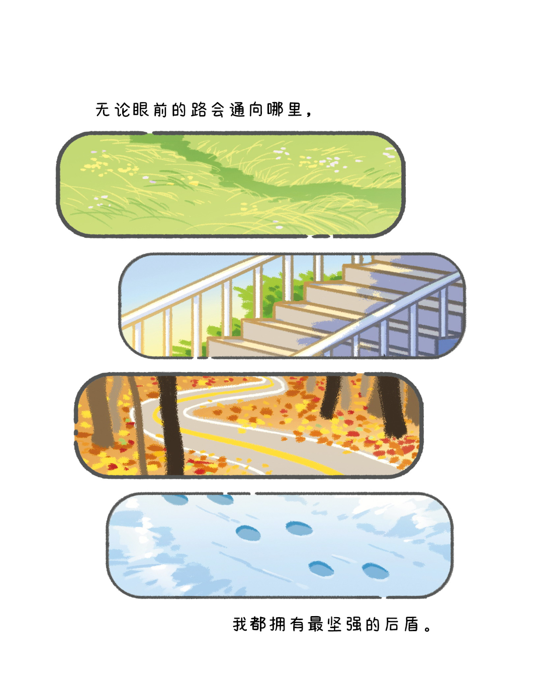 阳光明媚的周末,与超级治愈系漫画《我会一次次接住自己》最配哦! 每一页都似蓬松云朵,轻轻托住疲惫心灵。 “请允许自己枯萎一段时间,那只是生命的落叶期” “没有得到过爱仍能学会去爱,很了不起”