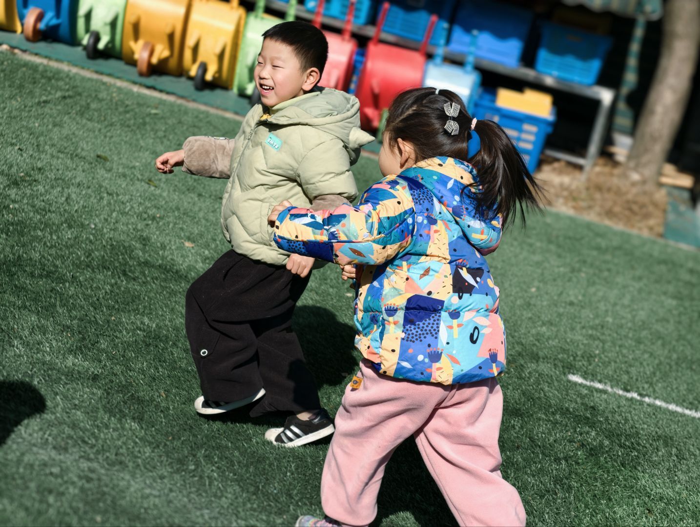 寒风不抵童趣,热情点亮操场 尽管冬日气温渐低,却丝毫挡不住孩子们对户外活动的热情。近日,兰亭中心幼儿园中(1)班幼儿在户外草坪开展了丰富有趣的集体游戏活动,孩子们的欢声笑语让寒冷的操场变得暖意融融。 活动中,孩子们或相互搭着肩膀排成小队,仰头期待着游戏开始,眼神里满是兴奋;或手持游戏道具,脸上洋溢着灿烂的笑容,尽情奔跑、嬉戏。在趣味十足的互动游戏里,孩子们不仅锻炼了肢体协调性,还学会了合作与分享,每一张小脸上都写满了快乐。 此次冬日户外活动,既让孩子们走出教室感受自然,又在运动中增强了体质,培养了积极向上的运动精神。后续,我班将继续利用晴好天气开展多样化的户外游戏,让孩子们在冬日里也能尽情享受运动的乐趣,在阳光下快乐成长。