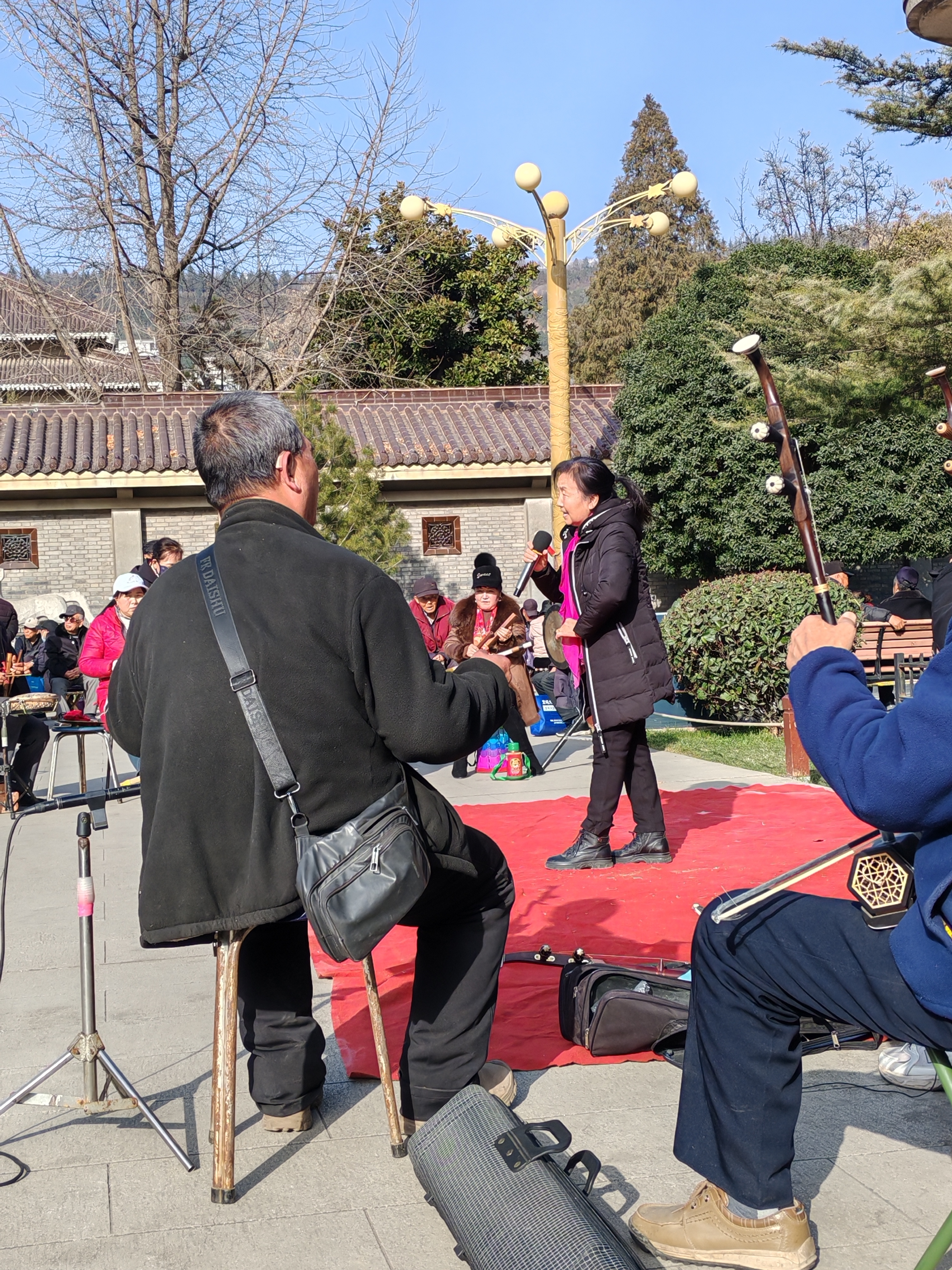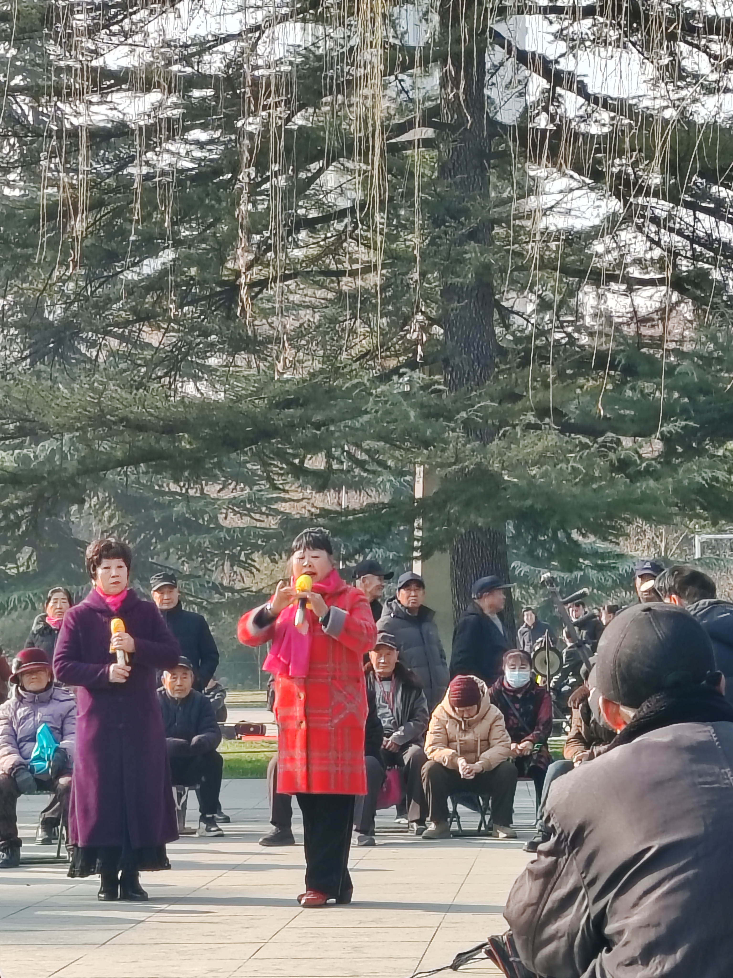 冬园听戏 日西户外轻风里, 天暖秦声顿挫间。 松劲时园苍鹭待, 柳疏池岸妪翁闲。 凶奴顾扰边国事, 飞将弯弓障阴山。 梦寐以求千载愿, 国家强盛颂和安。