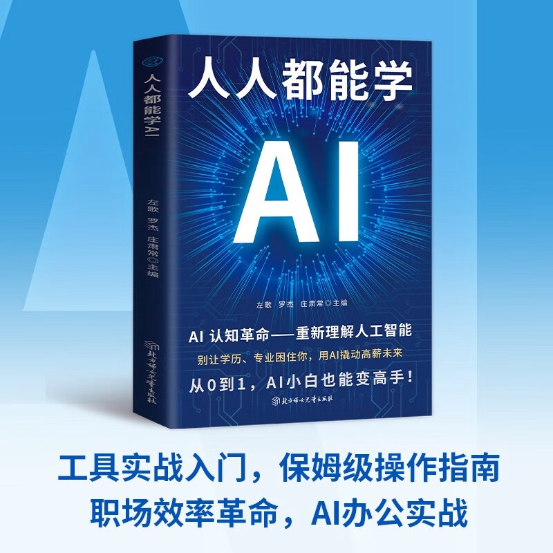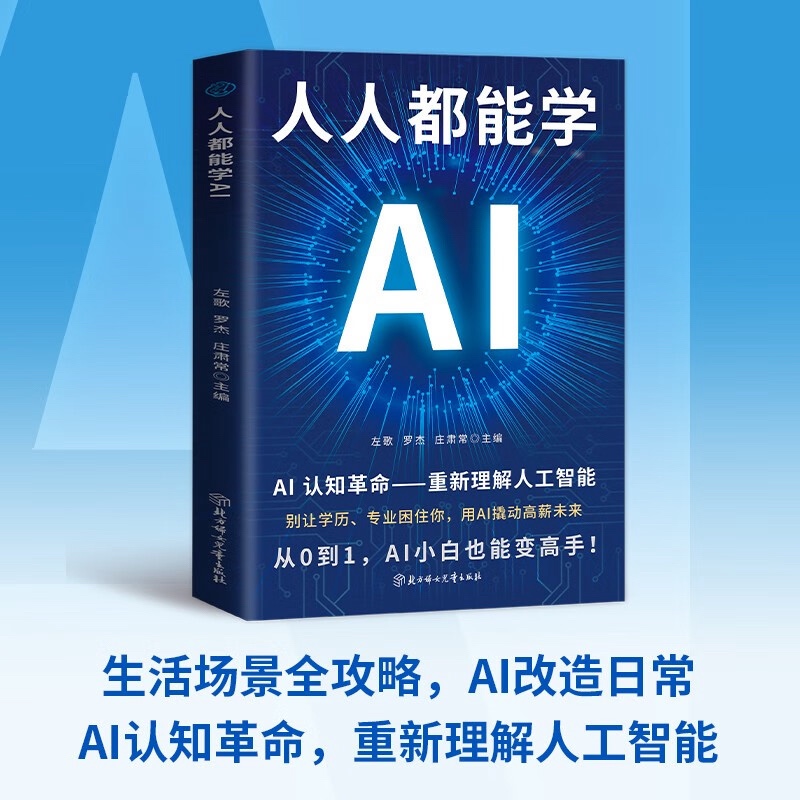 《人人都能学AI》(左歌、罗杰、庄肃常主编,北方妇女儿童出版社出版)是潮新闻第十期阅读活动可免费兑换的书籍之一,其是一本面向AI零基础读者的入门指南,核心定位为“从认知到实践的AI技能普及书”,旨在帮助非技术背景读者快速掌握AI工具的使用逻辑与应用方法。 一、核心内容与结构亮点 认知破局:降低AI学习门槛 全书以“别让学历、专业困住你”为核心理念,开篇通过拆解AI与人类思维的差异,破除“AI高深难懂”的误区。例如,用“教AI做饭”类比指令逻辑,将抽象的“神经网络”解释为“AI的‘经验库’”,让读者通过生活化案例建立对AI的基础认知。 指令学习:聚焦“如何高效指挥AI” 核心章节围绕“AI指令构建”展开,提供66个可直接复用的提问模板(如“目标拆解法”“角色代入法”),覆盖写作、设计、办公等14类场景。例如,针对“生成公众号标题”,书中给出“[目标人群]+[核心痛点]+[解决方案]”的公式化指令,配合案例演示如何通过调整关键词提升AI输出质量。 工具实操:覆盖主流AI应用场景 详解文心一言、Kimi、WPS AI等工具的操作路径,强调“工具选择与场景匹配”。例如,对比不同AI写作工具的优劣势:“Grammarly适合英文校对,而国内工具更适配中文语境下的情感表达”,并提供“AI+Excel自动化数据处理”“AI辅助制作PPT”等具体步骤。 实战导向:从“学”到“用”的闭环 通过100+真实案例(如“用AI生成短视频脚本”“智能客服指令设计”),引导读者将AI技能转化为生产力。书中特别设置“避坑指南”,提醒常见误区(如指令模糊导致AI输出偏离需求),并提供“指令优化 checklist”帮助读者逐步提升提问精准度。 二、鉴赏与评价 优势: 定位清晰,受众友好:完全避开代码与算法,专注“工具使用”与“指令逻辑”,尤其适合职场新人、学生、自媒体从业者等非技术群体。 结构实用,即学即用:每章节遵循“理论+模板+案例+练习”的结构,读者可直接套用模板解决实际问题(如用书中指令3分钟生成会议纪要)。 语言通俗,视觉辅助:采用全彩印刷,关键指令标红突出,配合工具界面截图和步骤拆解,降低阅读压力。 不足: 深度有限:侧重“应用”而非“原理”,对AI技术底层逻辑(如机器学习模型)的解释较浅,适合入门但难以满足进阶需求。 案例时效性:AI工具迭代迅速,部分工具操作步骤可能随版本更新失效,需读者结合实际工具界面调整。 三、适用人群与价值 核心读者:希望通过AI提升效率的职场人、需要辅助学习的学生、探索AI变现的自媒体创作者。 价值主张:帮助读者从“被动使用AI”转向“主动指挥AI”,通过标准化指令模板减少试错成本,快速建立AI时代的核心竞争力。 四、版本与购买信息 该书ISBN为9787558593697,定价59.00元,目前在主流电商平台有售,部分平台提供优惠价。建议大家结合自身需求选择:若侧重工具实操与效率提升,此书是性价比之选;若希望深入技术原理,可搭配《人工智能简史》等理论书籍阅读哦~