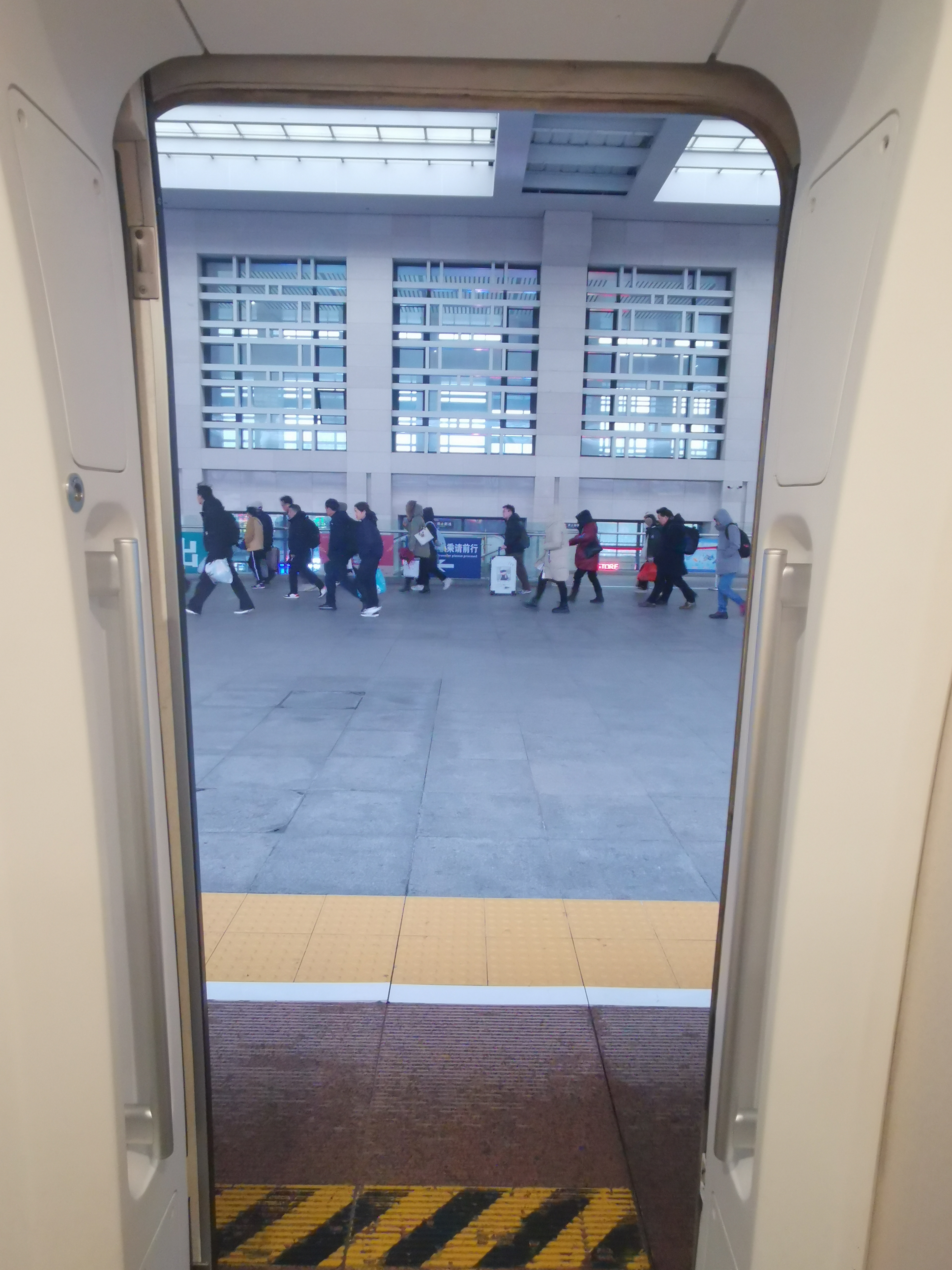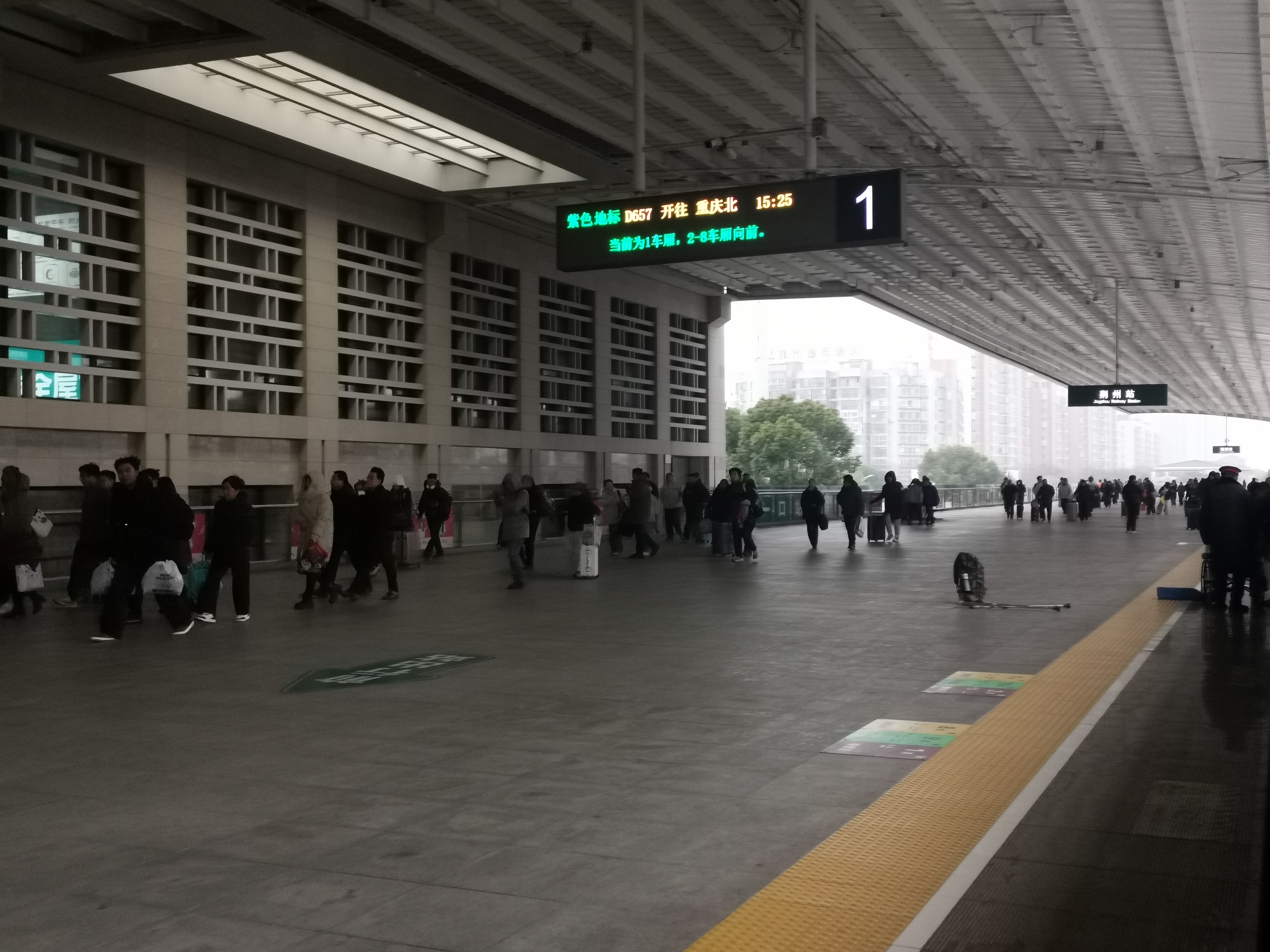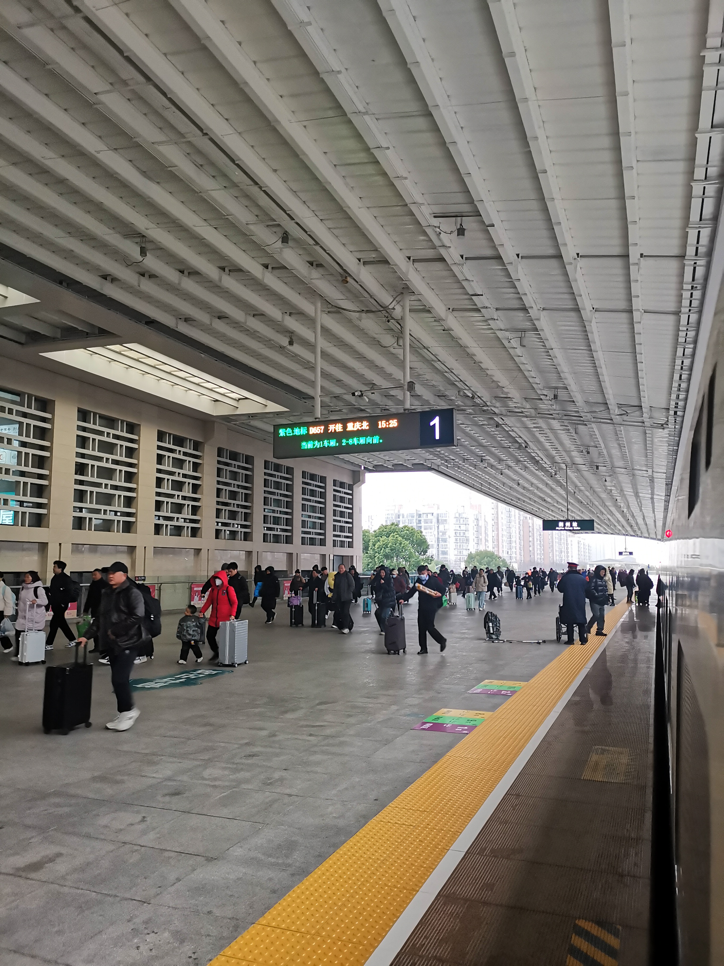 🇨🇳高铁停靠荊州站,站台流动的乘客,车厢外冷嗖嗖,车厢内暖融融!#用镜头给冬天写首诗##与潮新闻一起飞阅世界#