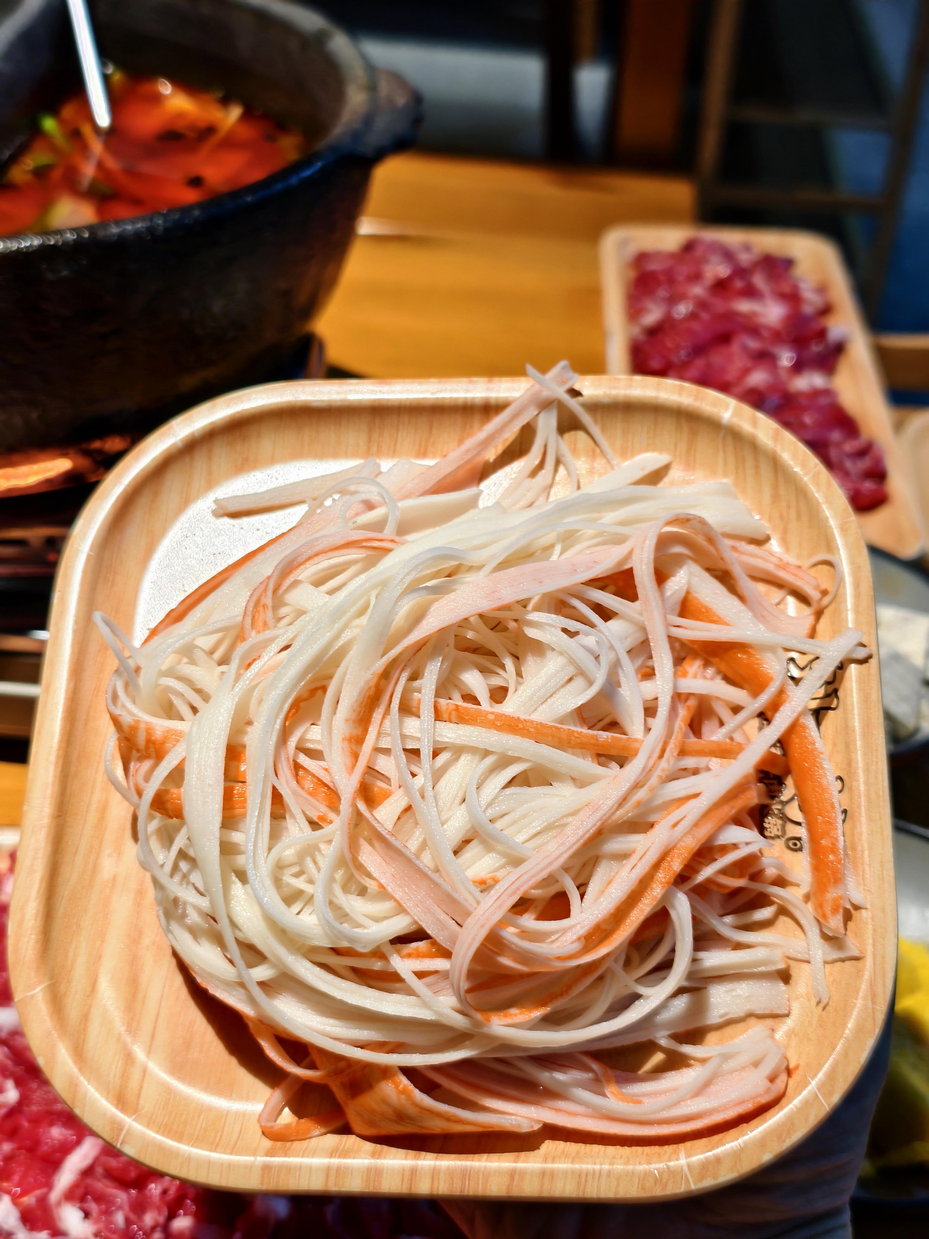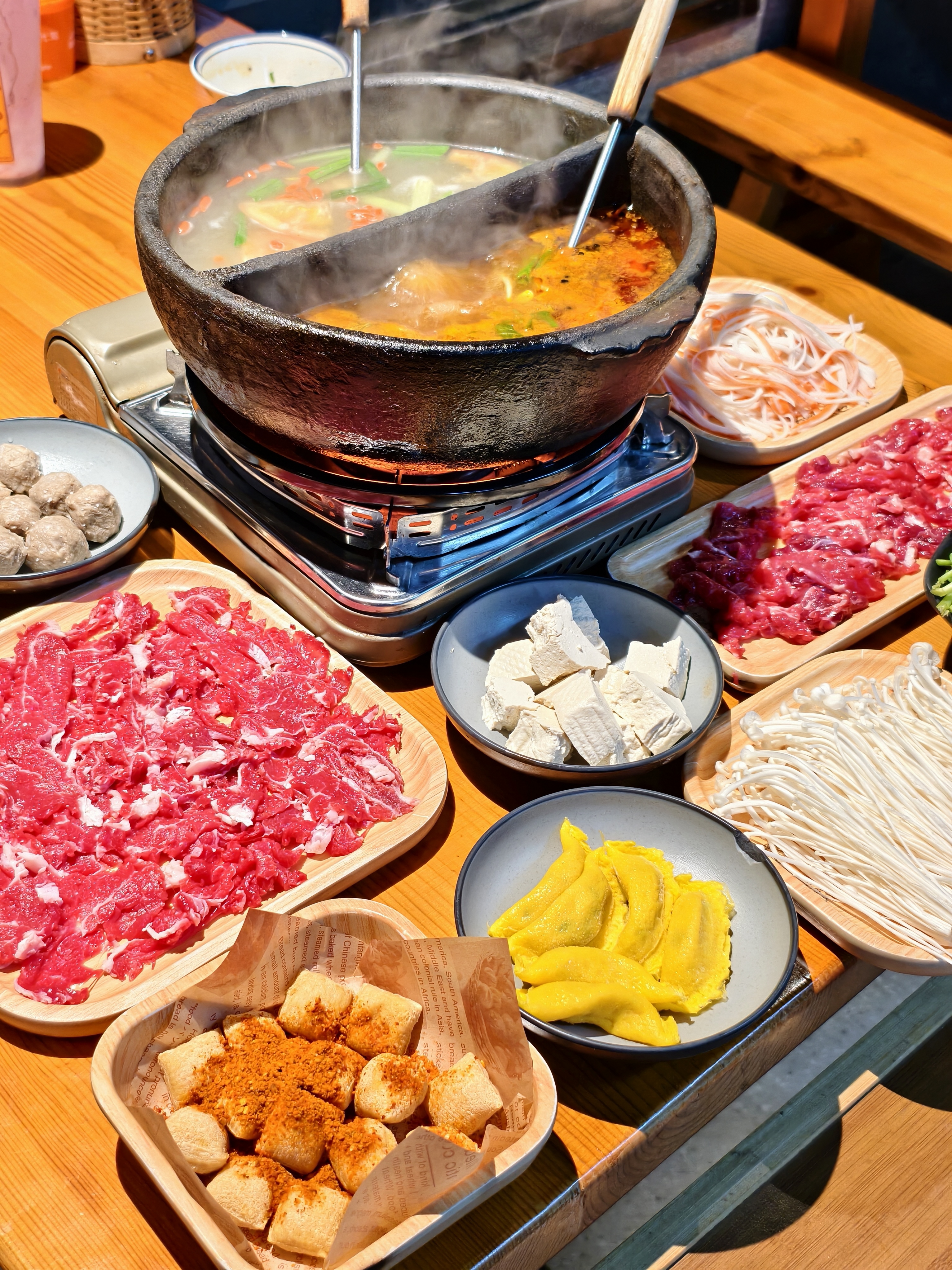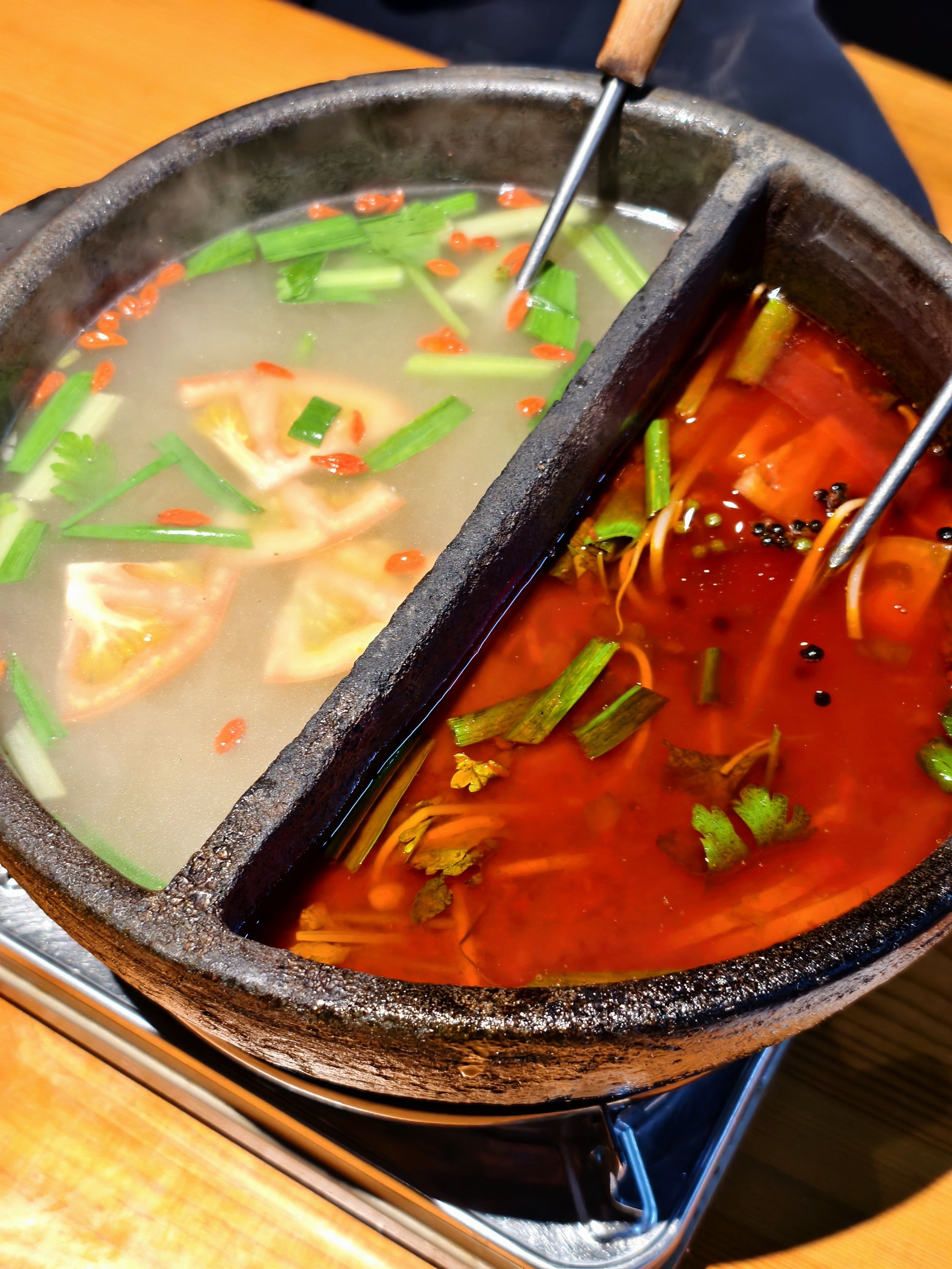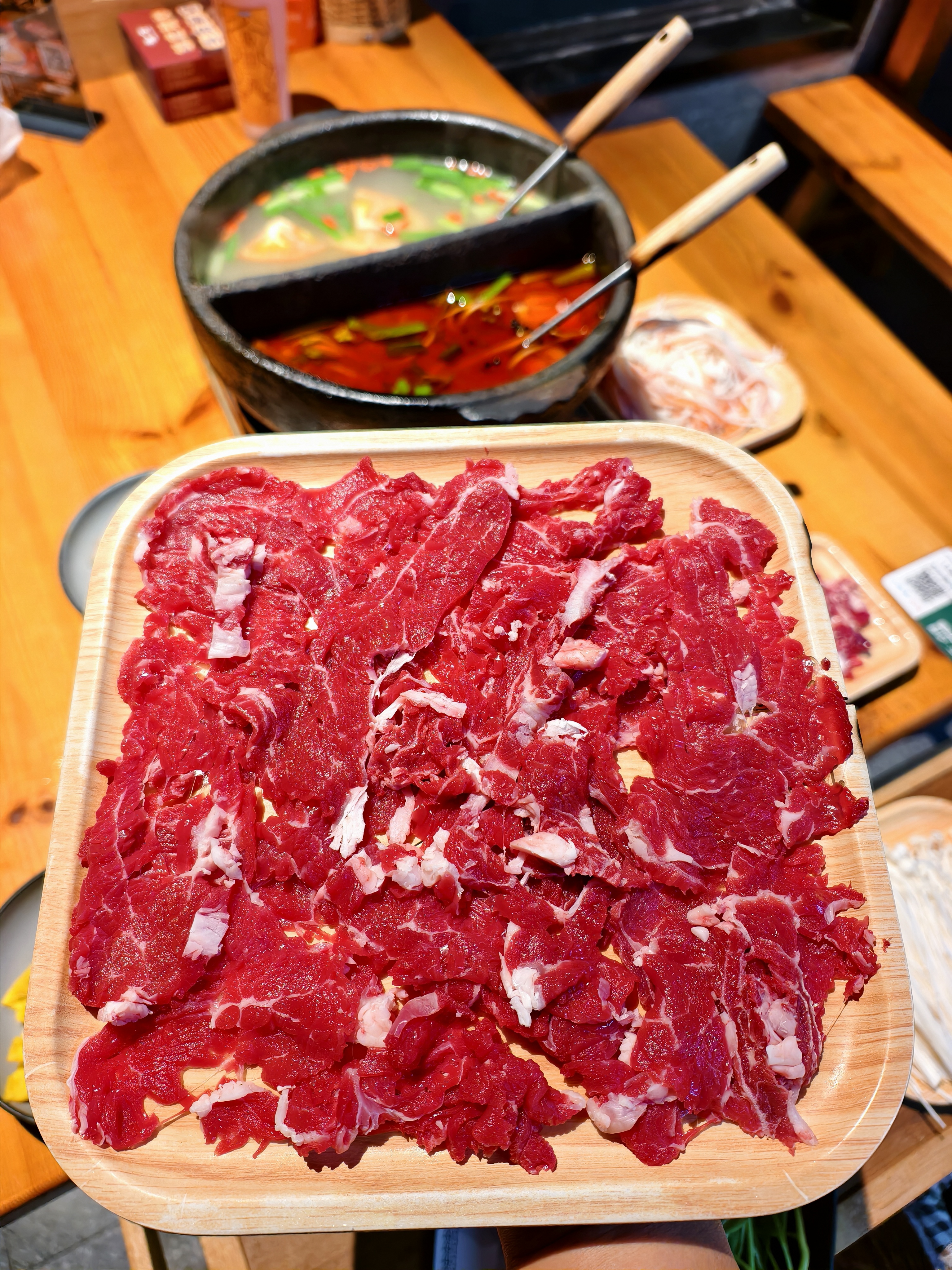 周末带哥哥妹妹出去吃饭 直接被这家刘一勺贵州火锅圈粉 店里满满的黔东南少数民族风情的装修 苗寨氛围感直接拉满~ 果断选了鸳鸯锅 酸汤锅底和清汤锅底 ✨手工牛肉丸Q弹到会爆汁 嚼起来超有劲儿,兄妹俩抢着吃 ✨重头戏必须是贵州黄牛肉,分量大到震惊 在锅里上上下下涮8-10秒,肉质嫩到不行 满口都是牛肉的鲜香味~ ✨第一次见丝丝蟹柳 下锅几秒就熟,吸饱汤汁后更鲜 ✨炸石屏豆腐也是惊喜 本以为会很辣,结果外脆里嫩,很香 ✨手工面条,清汤锅里下去 配上大片牛肉,兄妹俩③碗还不够 还是试着尝试加了折耳根的酱汁 一口下去 一股很特别的味道 贵州味 #吃一顿忘不了系列 #唯有美食不可负 #酸汤自然发酵的传承者 #谁能抵得住美食的诱惑 #舌尖上的狂欢 #抵不住美食的诱惑 #刘一勺酸汤豆米牛肉火锅 #康康谷 #刘一勺酸汤牛肉火锅 #好食材涮着吃