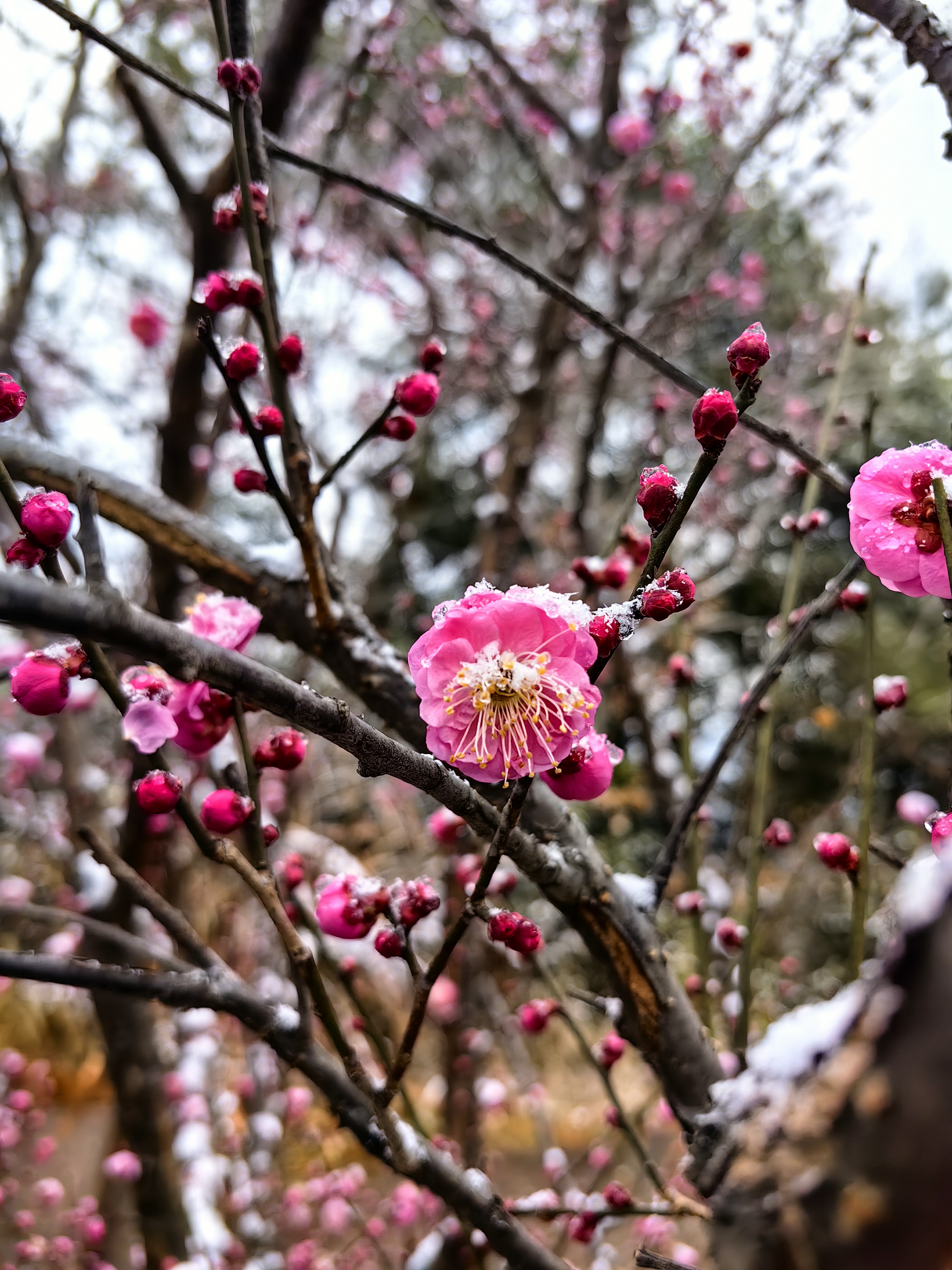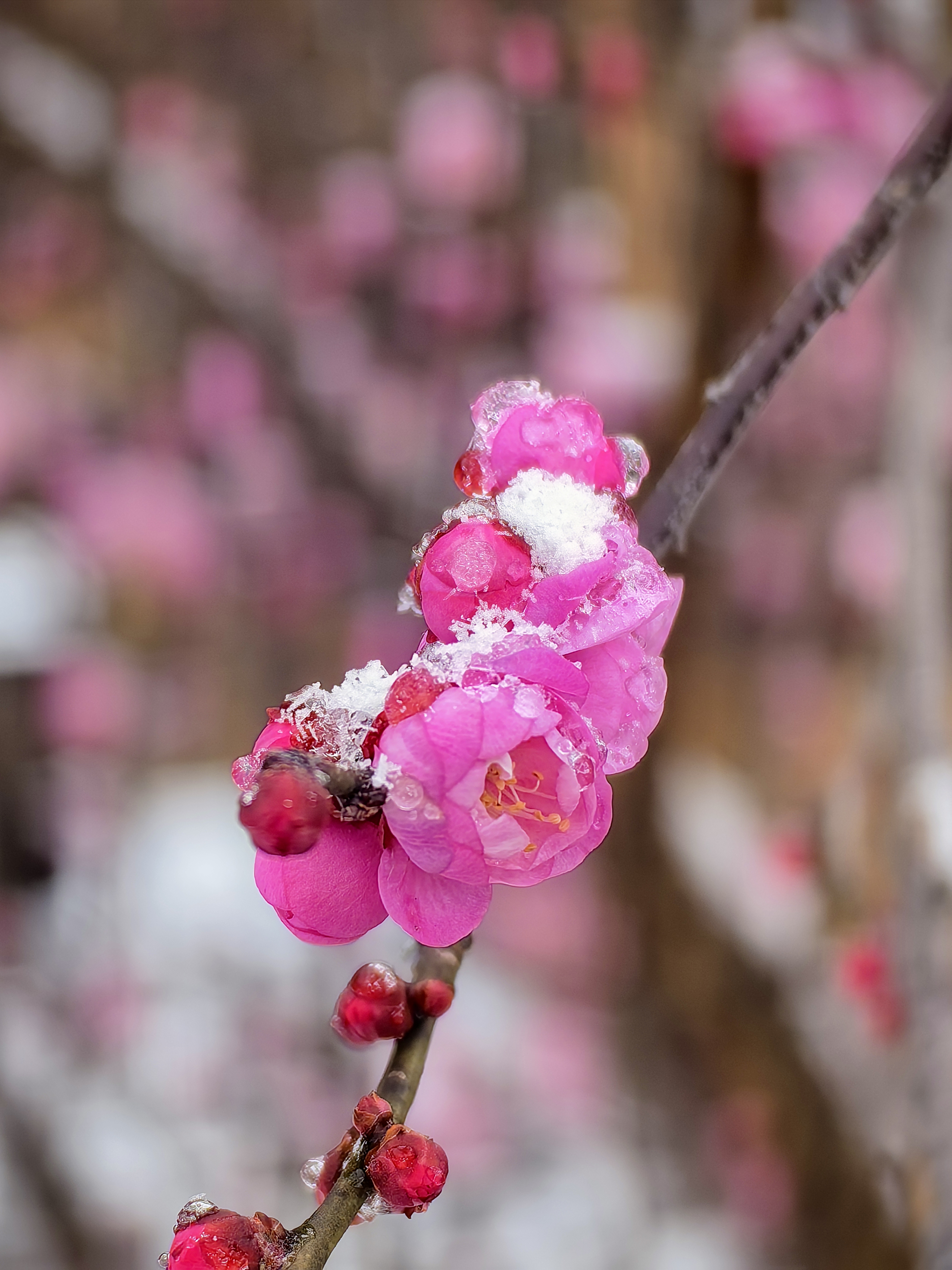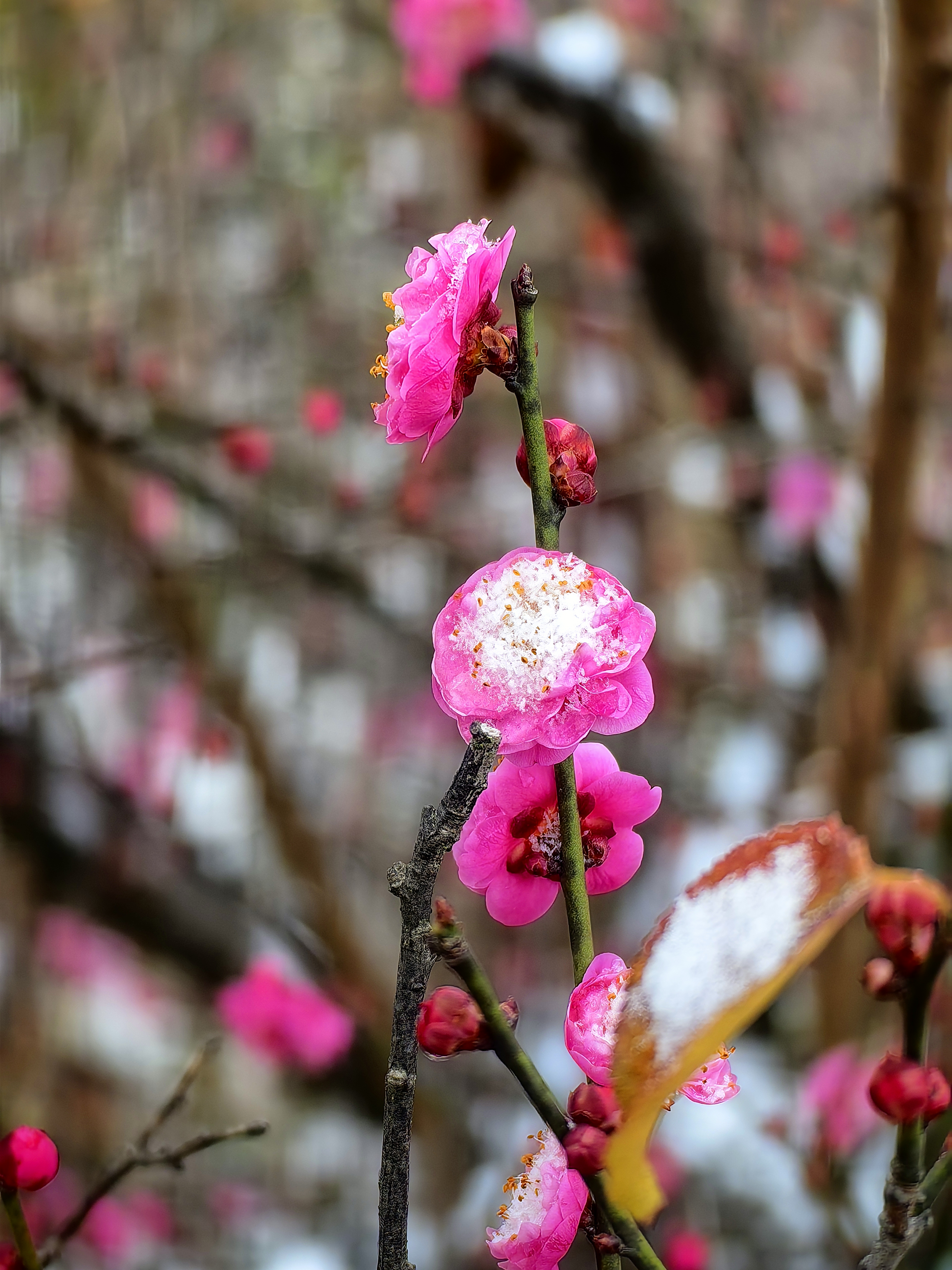 🌨️❄️雪中梅,梅叶还未落尽,梅花却已悄然绽放!❄️🌨️ 冬日里的一抹亮色,是不是让你也感受到了生命的坚韧与美丽?🌸 快来和我一起欣赏这冬日里的别样风景吧!🌟🌸❄️