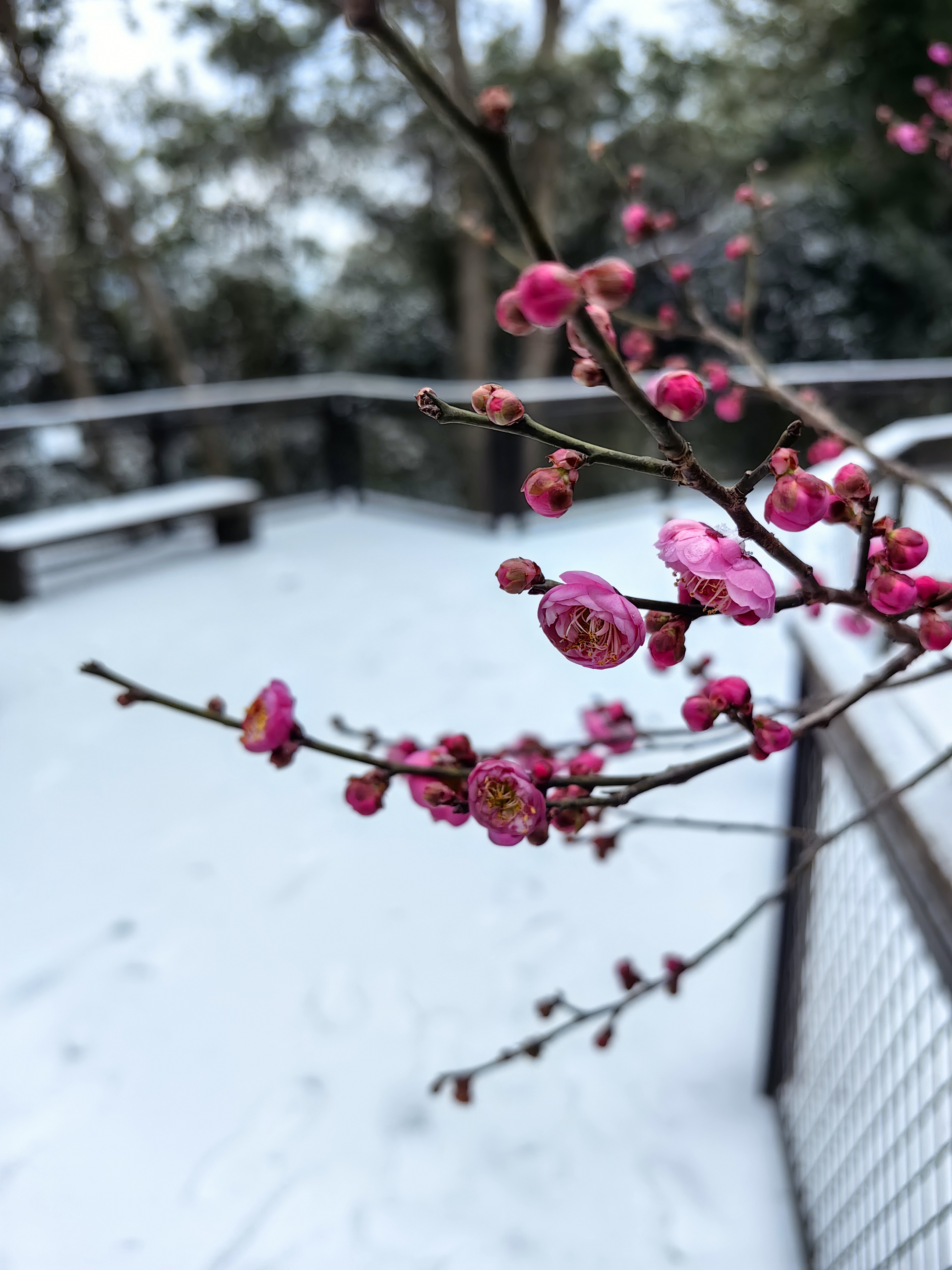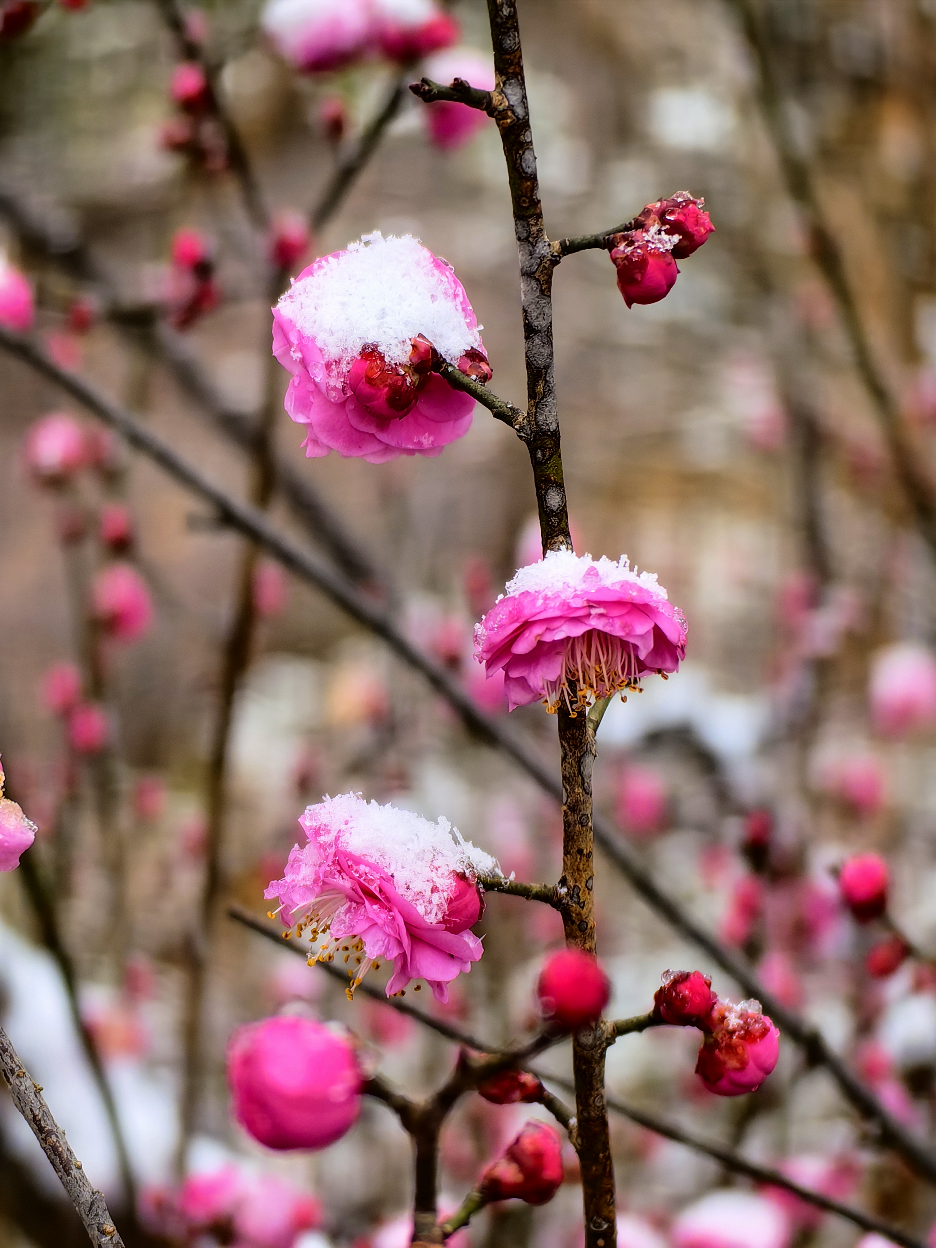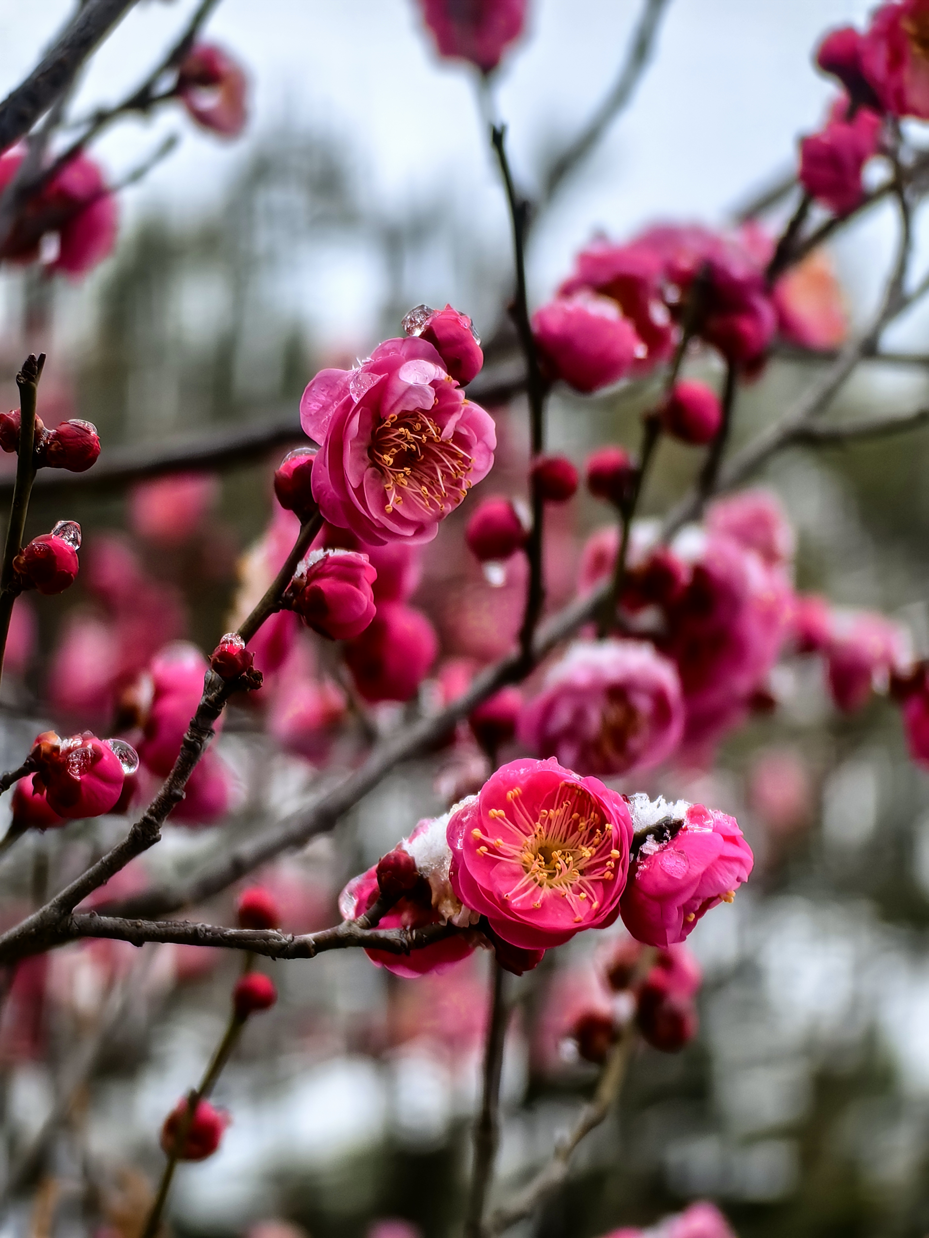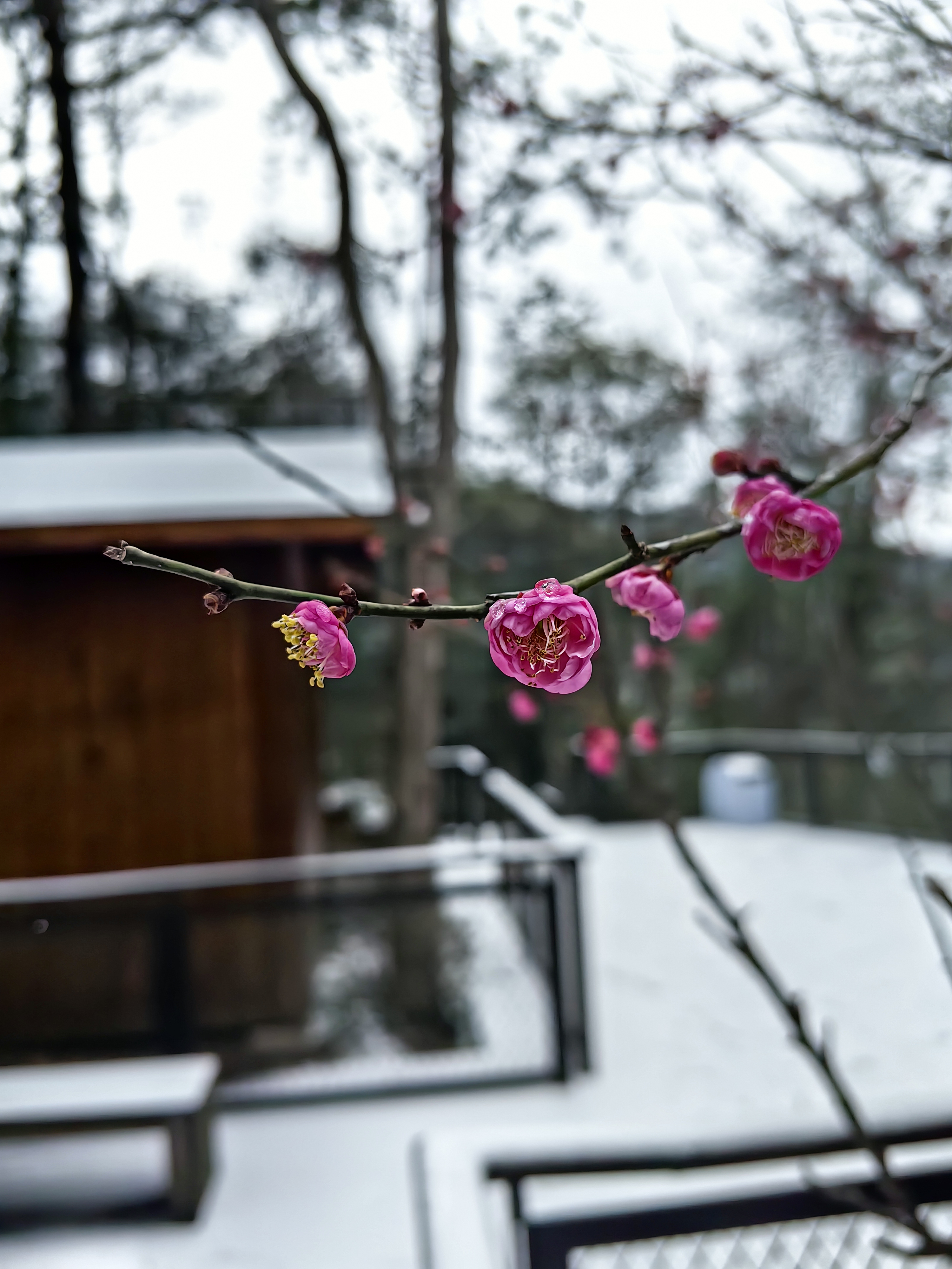 🌨️❄️雪中梅,梅叶还未落尽,梅花却已悄然绽放!❄️🌨️ 冬日里的一抹亮色,是不是让你也感受到了生命的坚韧与美丽?🌸 快来和我一起欣赏这冬日里的别样风景吧!🌟🌸❄️