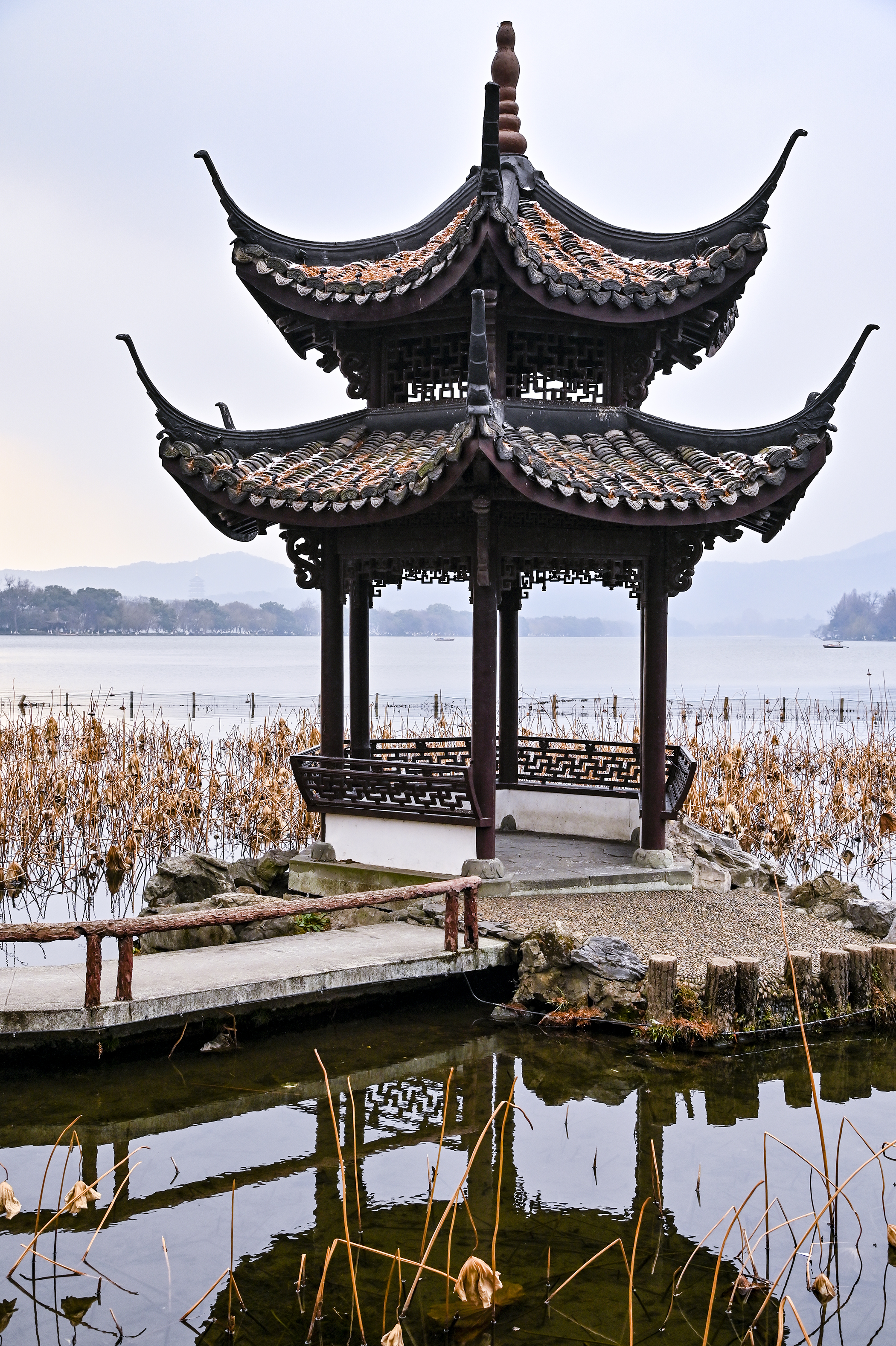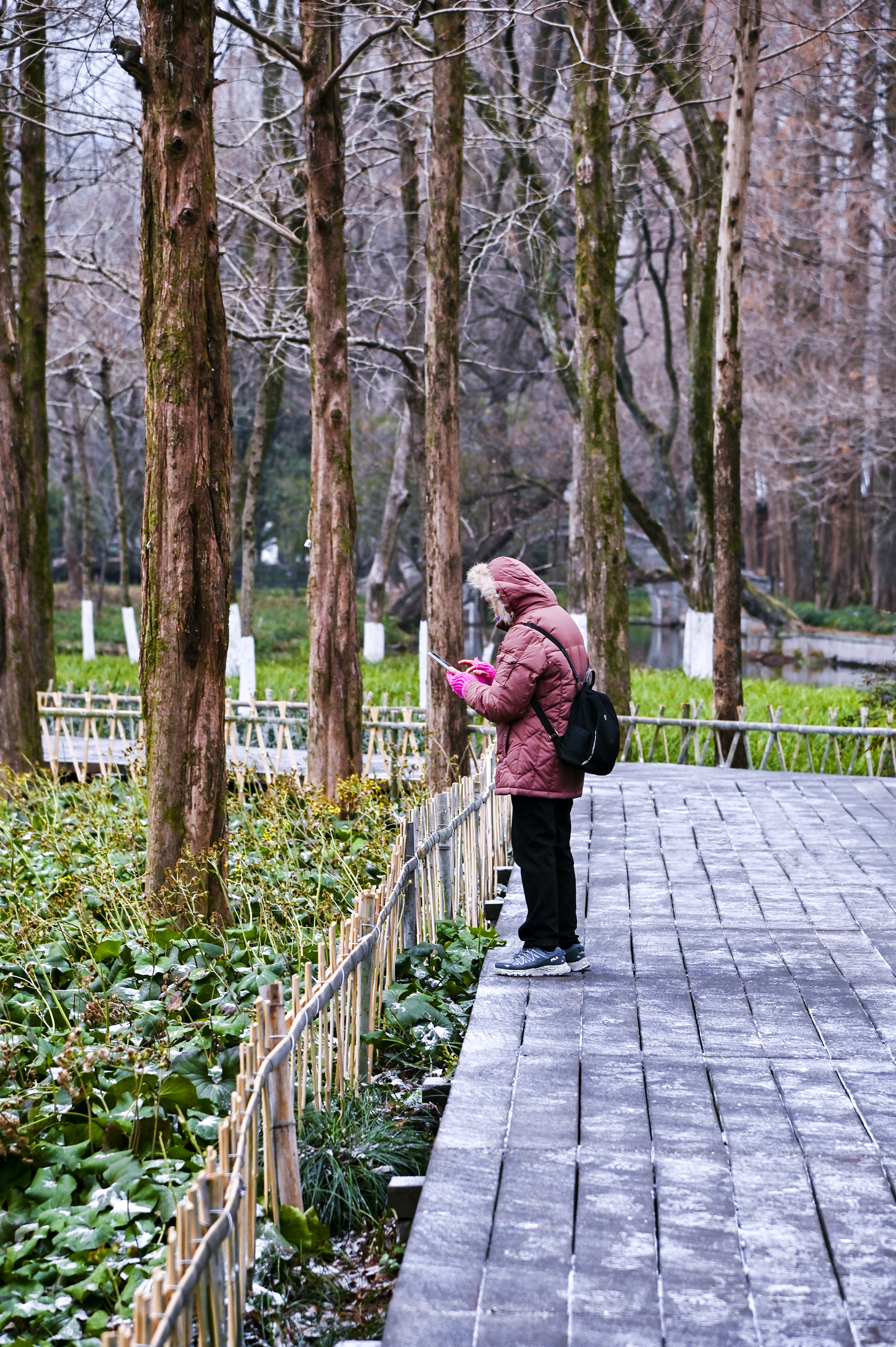 冬日的西湖,漫步苏堤茅家埠,枯荷听风,断桥残雪未消,望远山白雪残留,近端古亭雪影,随手一拍,都是江南的静谧诗行。粉色羽绒服在灰瓦间跳跃,寒风中透出一丝暖意