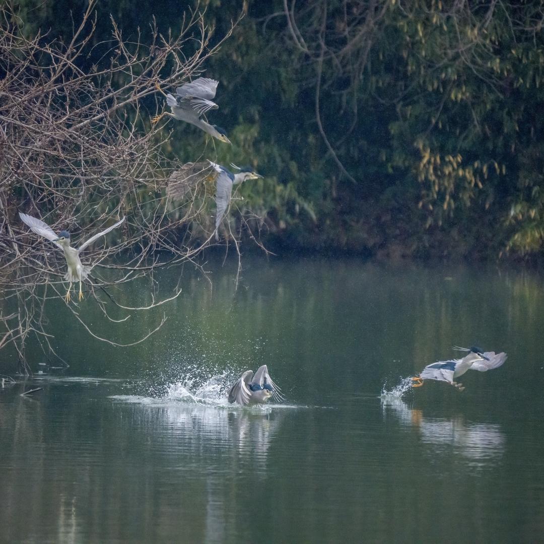 《西溪雪笺:鸟篇》 一、绿头鸭:寒波上的翡翠 终究还是遇见了它们。在莲花滩的芦苇荡边缘,三只绿头鸭正划破水面。雄鸭的头颈泛着金属般的翡翠光泽,像谁将一块被阳光吻过的绿宝石嵌在了雪天的寒波里;雌鸭的羽色是低调的麻褐,却在游动时,尾羽偶尔露出一抹白羽,像水墨画里不经意的飞白。 它们不疾不徐地游着,时而低头啄食水面的残叶,时而侧颈梳理羽毛。背景是枯黄的芦苇与暗绿的岸草,水纹在它们身后层层荡开,将倒影揉成流动的光斑。没有预想中的群飞之景,这三只鸭子的“小聚”,倒像是湿地在雪天里摆下的一局闲棋——不喧哗,却自有禅意。镜头定格时,绿头鸭的黄喙正触到水面,激起的涟漪与飘落的雪粒在画面里交织,分不清哪是水的纹,哪是雪的影。 二、白鹭:雪色中的留白 转过一道水湾,雪忽然下得紧了。就在那片浮着枯黄莲叶的浅滩上,一只白鹭静静伫立。它通体素白,像从雪地里长出的一截玉簪,细长的黑喙直指水面,连倒影都透着清冷的诗意。 近景的黄叶是天然的画框,暗黄的叶片上还挂着雪珠,与白鹭的白、水的绿构成三色的和谐。它一动不动,仿佛不是在捕鱼,而是在与这寒水、残叶、飞雪对话。雪粒落在它的羽冠上,不化,反而成了绒羽的一部分。忽然想起上篇拍过的白梅——同样的素白,同样的孤绝,只是梅花在枝头,而它在水中央。按下快门时,白鹭恰好偏过头,黑眸里映着雪,也映着这寂寥的冬日湿地。 三、雪鹭:天地间的独行者 雪势渐猛,天地间一片迷蒙。在靠近木栈道的河湾处,另一只白鹭闯入镜头。它立于浅滩的枯草堆上,背景是被雪雾模糊的绿水,雪花像无数细碎的银线,从空中斜斜坠入水面。 这只白鹭比前一只更显单薄,却也更显倔强。它缩着脖颈,单脚站立,羽翅上落了薄薄一层雪,远看竟与雪色融为一体。只有那一点黑喙与青腿,在白茫茫中划出清晰的轮廓。此刻的湿地静得能听见雪落的声音,而它,便成了这寂静里唯一的“动”——不是动作的动,是生命的存在感,像一首极简的诗,在雪雾里轻轻叩问着天地。 四、夜鹭:惊起的墨色闪电 最意外的惊喜,藏在傍晚的柳树林。正当我收起相机准备返程时,一阵扑棱棱的翅声划破寂静——五只夜鹭从枯树枝桠间腾空而起! 它们的羽色是墨灰与乳白的交织,像被水墨晕染过的剪影。有的低空掠过水面,翅尖激起细碎的水花;有的直上云霄,羽尾在暮色中划出流畅的弧线;最下方那只正掠过水面,双爪刚触到水波,溅起的水珠在镜头里凝成一串透明的珍珠。背景的枯枝如铁画银钩,绿水如墨,而夜鹭们,便是这墨色长卷里突然苏醒的灵魂,用翅膀的弧线打破了冬日的沉寂。 快门声与翅声几乎同时响起,等我回过神,它们已消失在远处的芦苇荡。只留下水面的涟漪,还在一圈圈诉说着刚才的惊艳。 五、黑水鸡:寒波里的红喙 最后一帧,给了那只在雪粒中疾跑的黑水鸡。它羽毛黑得发亮,额前一点红喙像雪地里的炭火,黄脚在水面交替踏过,激起一串细碎的水花。 它没有白鹭的优雅,也没有夜鹭的凌厉,却有一种憨直的生命力。在这大寒之日,在这风雪交加的湿地,它就那样毫无预兆地闯入镜头,用奔跑的姿态告诉世界:生命从不会因严寒而停驻。雪粒打在它的背上,它却像浑然不觉,只顾着追逐水面的食物,留下一道转瞬即逝的水痕。 暮色彻底笼罩湿地时,雪终于停了。存储卡里的鸟影——绿头鸭的闲雅、白鹭的清绝、夜鹭的灵动、黑水鸡的鲜活——与上篇的红果、梅影、竹雪渐渐重叠。原来此行的“诗眼”,从不是预设的群鸟图,而是这风雪中偶然相遇的一个个生命瞬间。它们像湿地写给冬日的短句,或沉静,或热烈,或灵动,共同组成了大寒日最动人的韵律。 收队时,指尖仍残留着按快门的微麻,心里却满是温热。或许摄影的意义,本就不在于“捕捉”,而在于“见证”——见证自然在某个瞬间的呼吸,见证生命在严寒中的绽放,也见证自己在期待与遇见之间,那份不期而遇的感动。 技术败给了天光,镜头输给了风雪。但那些鸟影自带微光触动心灵。