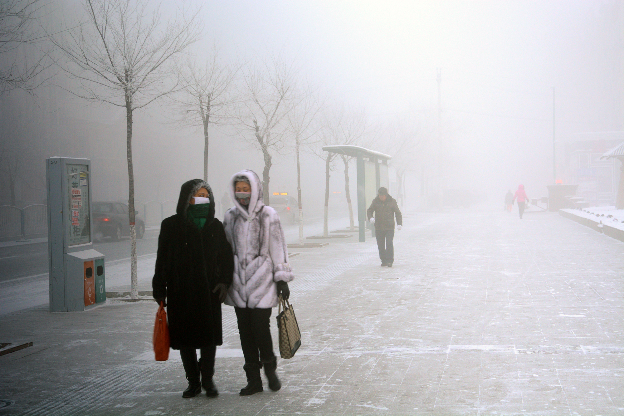 雾霾天,裹成球也要出门。雪地咯吱响,红包格袋背影杀,公交站台的冬日限定剧开演了。