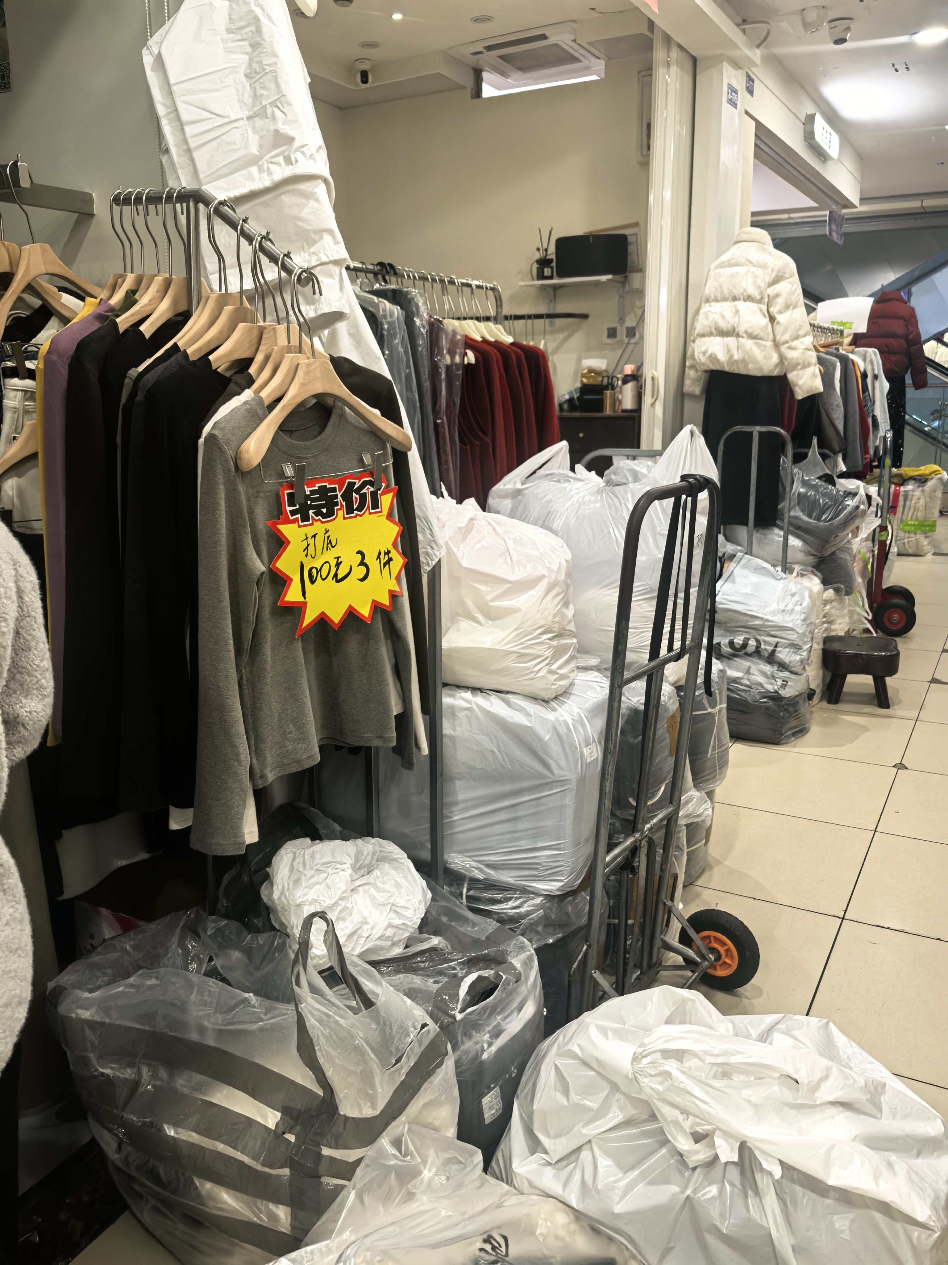 新年临近,服装市场已开始打折。现在去虽然还没到最便宜的时候,但服装的尺码比较齐全,挑选的余地大,而且好多都是明码标价。双休人气太旺,有时间还是工作日去逛逛比较好。坐标杭州环北丝绸服装城。