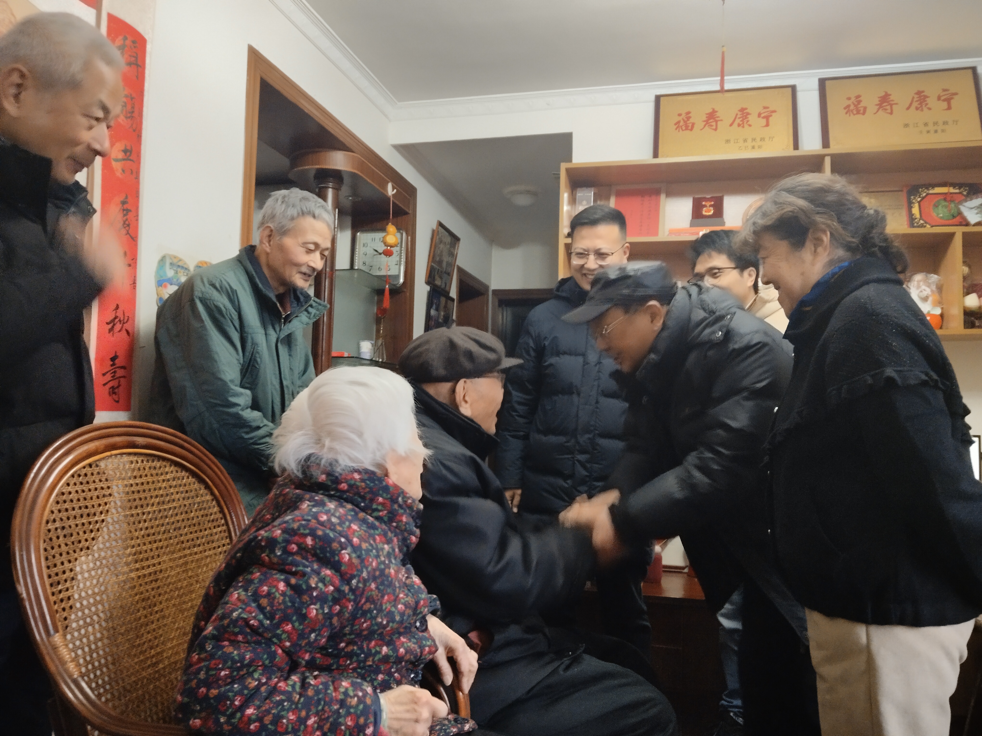 2026年1月20日,大寒。105岁老父亲原来工作单位的领导一行四人,一大早顶风冒雪登门慰问百岁老人。送来新年美好祝福,寿比南山,福如东海! 谢谢领导的关心和祝福。