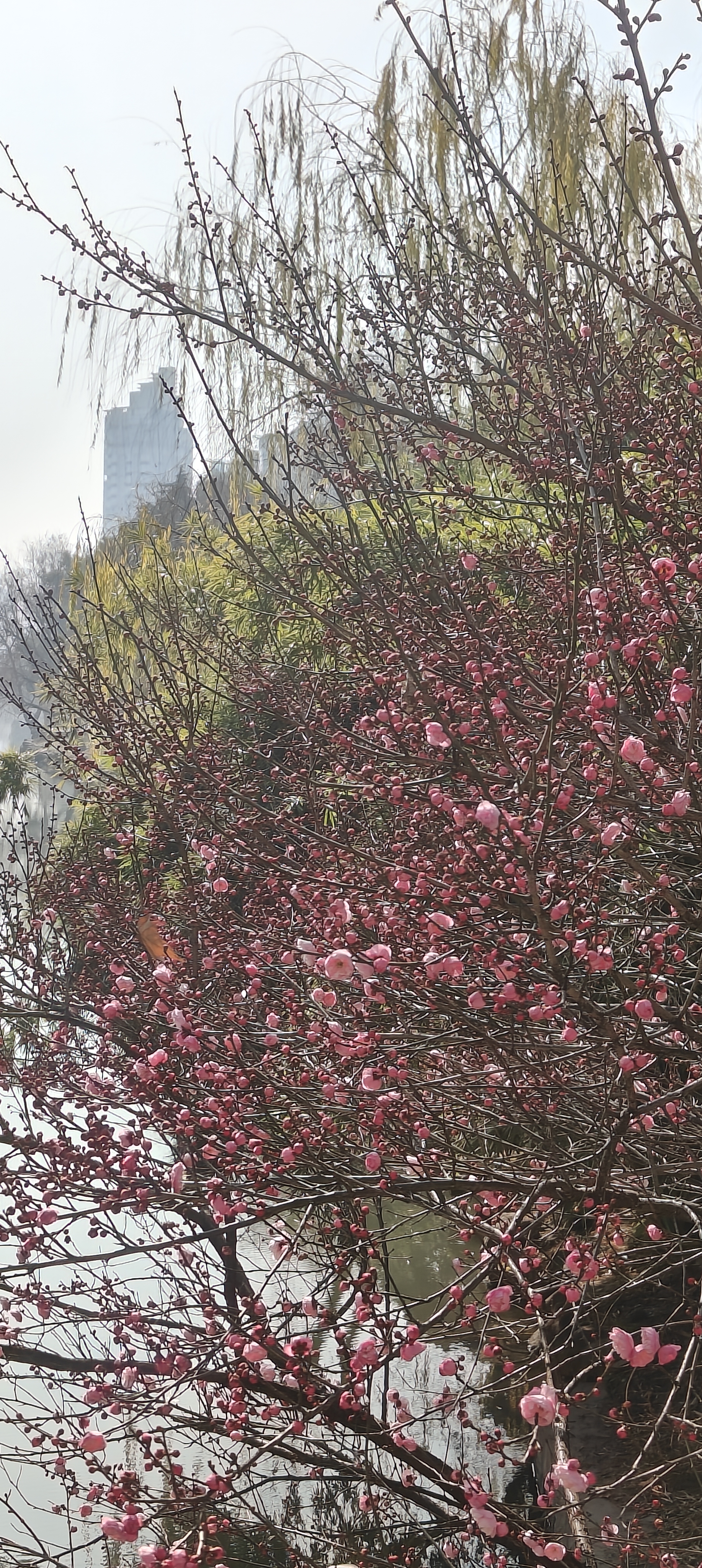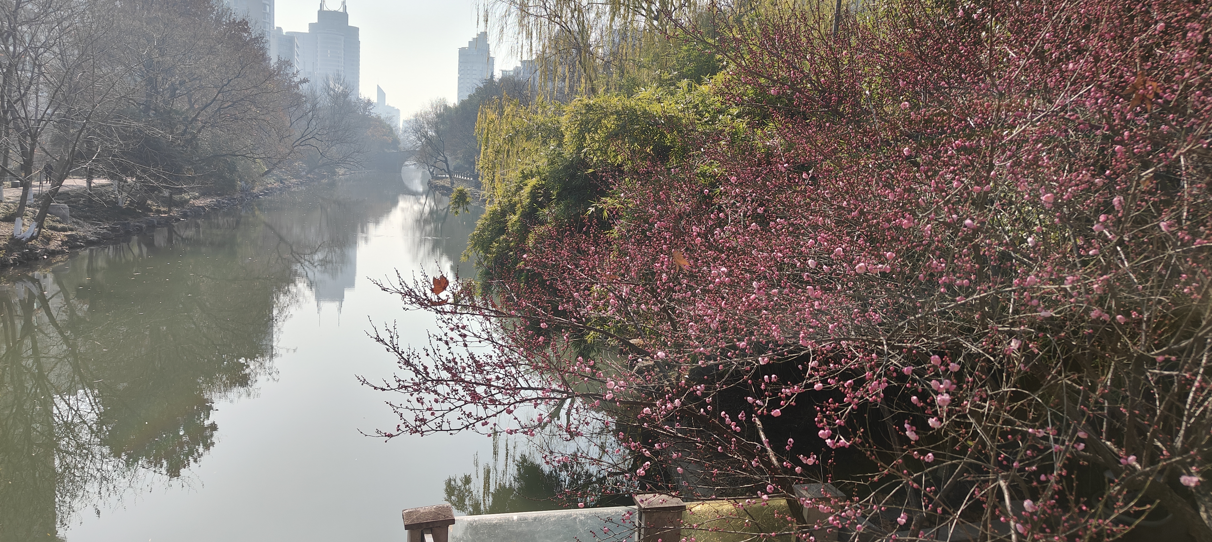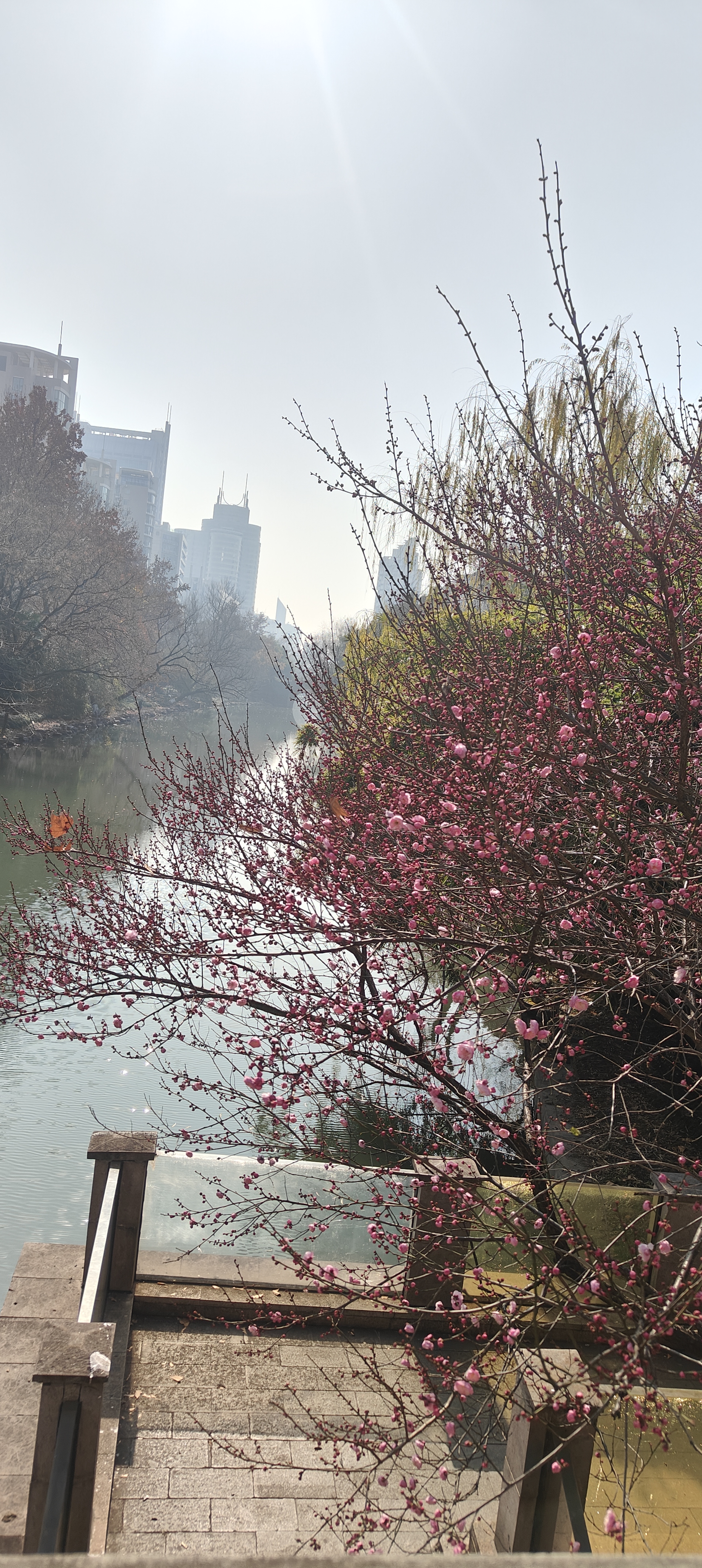 暖阳穿过薄雾,宝善桥河畔的红梅攒着满枝花苞,粉粉嫩嫩地探着春的消息。柳树垂着嫩黄的丝绦,与清浅的河水相映成趣。远处的高楼在朦胧里成了温柔的背景,走在石桥上,风里都带着点甜丝丝的暖意,这大概就是杭州初春最治愈的模样。