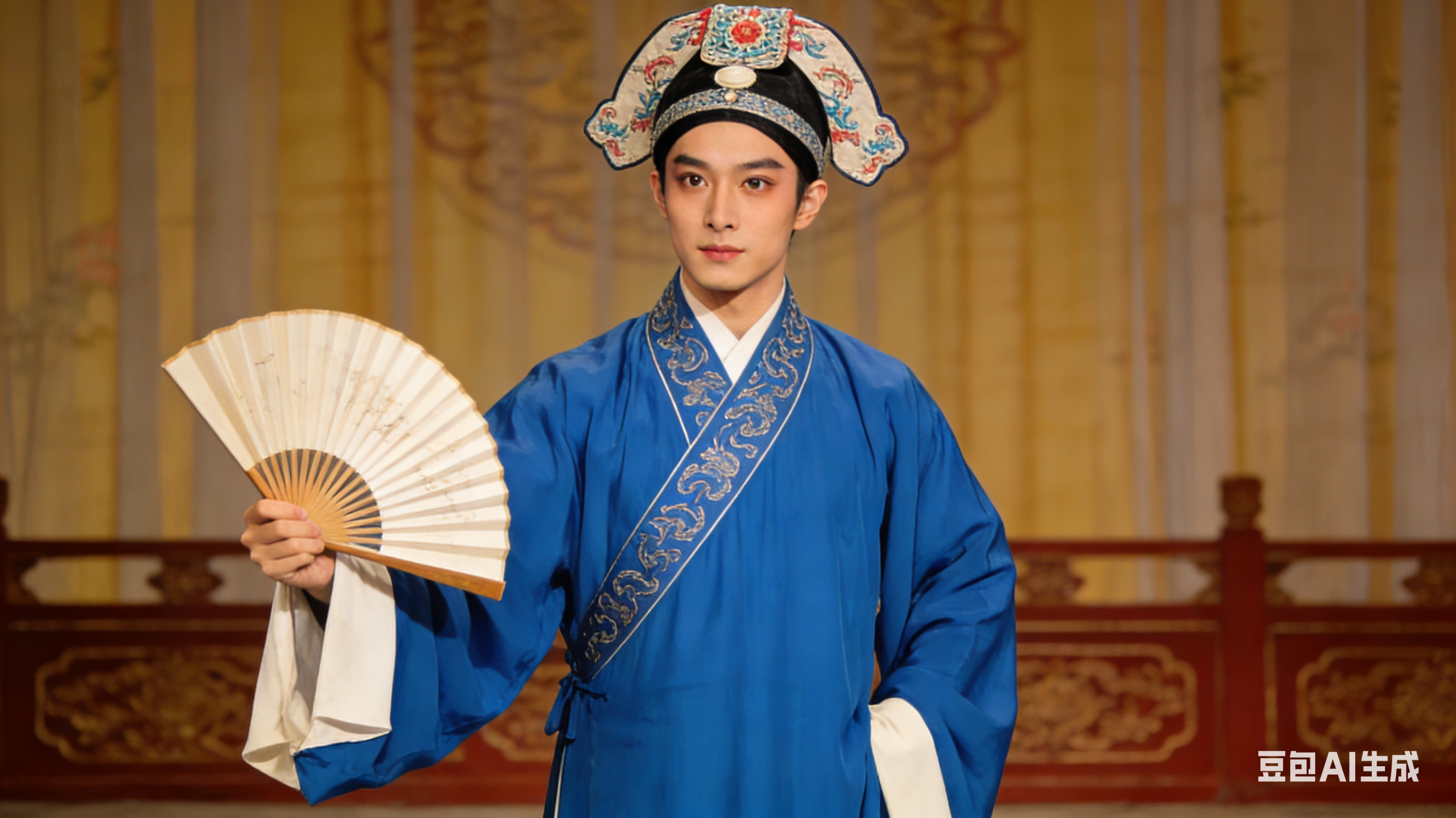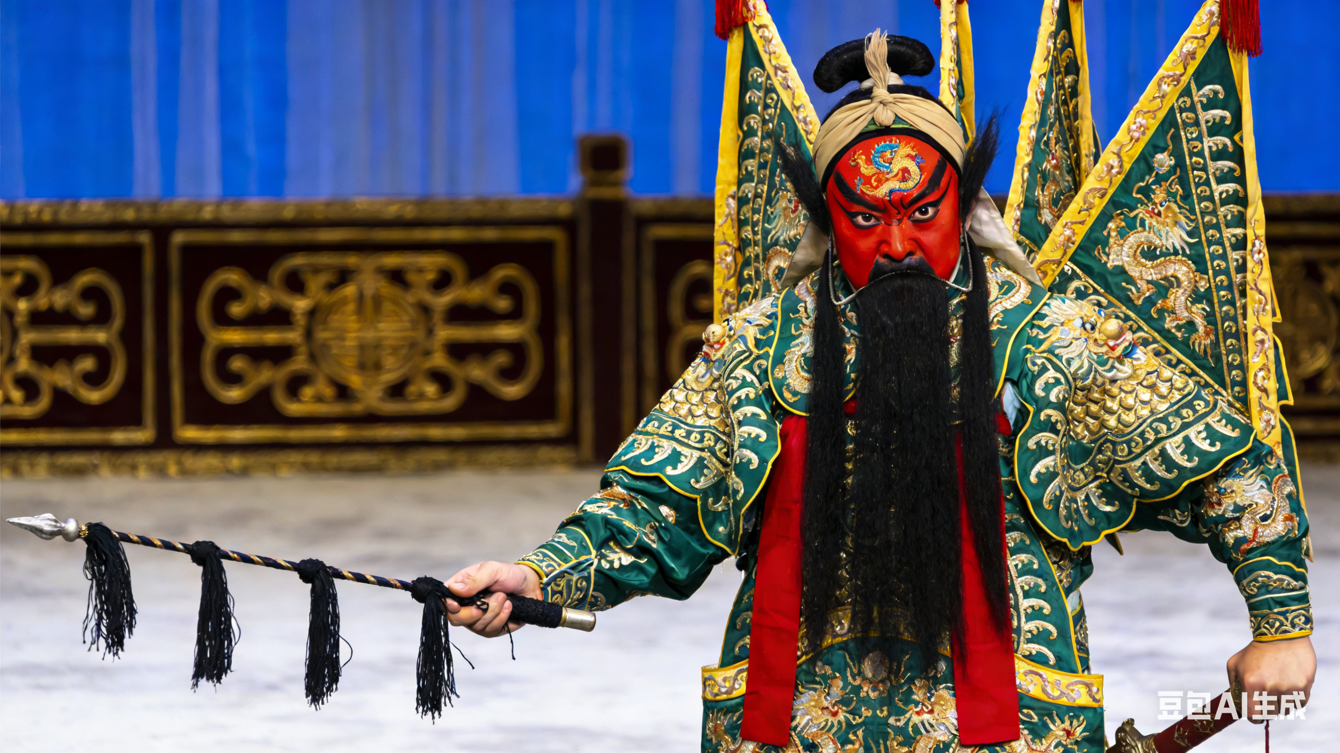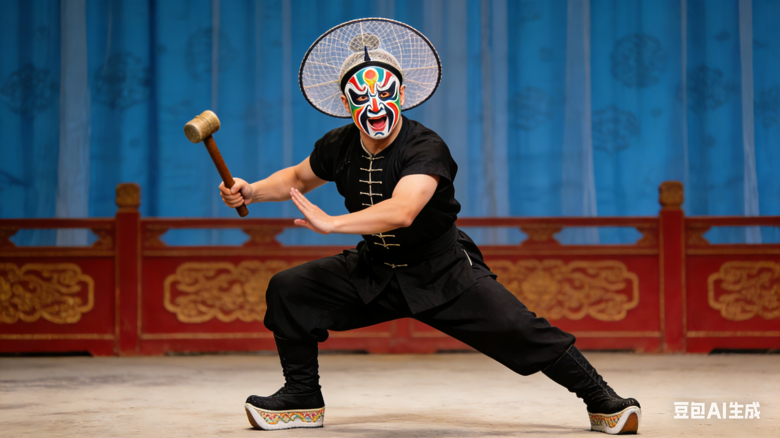 京剧:生旦净末丑 生旦净末丑五个京剧角色,每个角色具有鲜明的脸谱、服饰和姿态特征。 图1:生角,一位年轻男性角色,面容俊朗,头戴小生巾,身着蓝色褶子,手持折扇,身段挺拔,眼神明亮有神,展现文雅潇洒的气质。 图2:旦角,年轻女性角色,面容清秀,头戴凤冠,身着粉色帔,水袖轻扬,姿态柔美,眼神含情脉脉,体现温婉端庄的特质。 图3:净角,男性角色,脸谱为红色,额有画龙,头戴扎巾,身着绿色靠甲,手持马鞭,气势威严,眼神锐利,展现刚正勇猛的性格。 图4:末角,老年男性角色,面容苍老,头戴员外巾,身着褐色褶子,手持拐杖,弯腰驼背,眼神慈祥,表现朴实憨厚的形象。 图5:丑角,男性角色,脸谱为小花脸,头戴圆翅纱帽,身着黑色短打,脚穿薄底快靴,做着滑稽的表情和动作,手持棒槌,神态诙谐,凸显幽默风趣的特点。