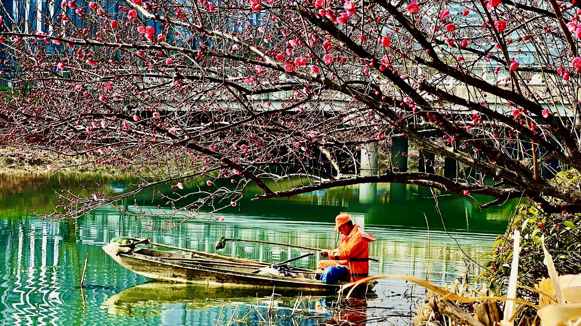 暖了,梅树下晒晒太阳看会儿书……