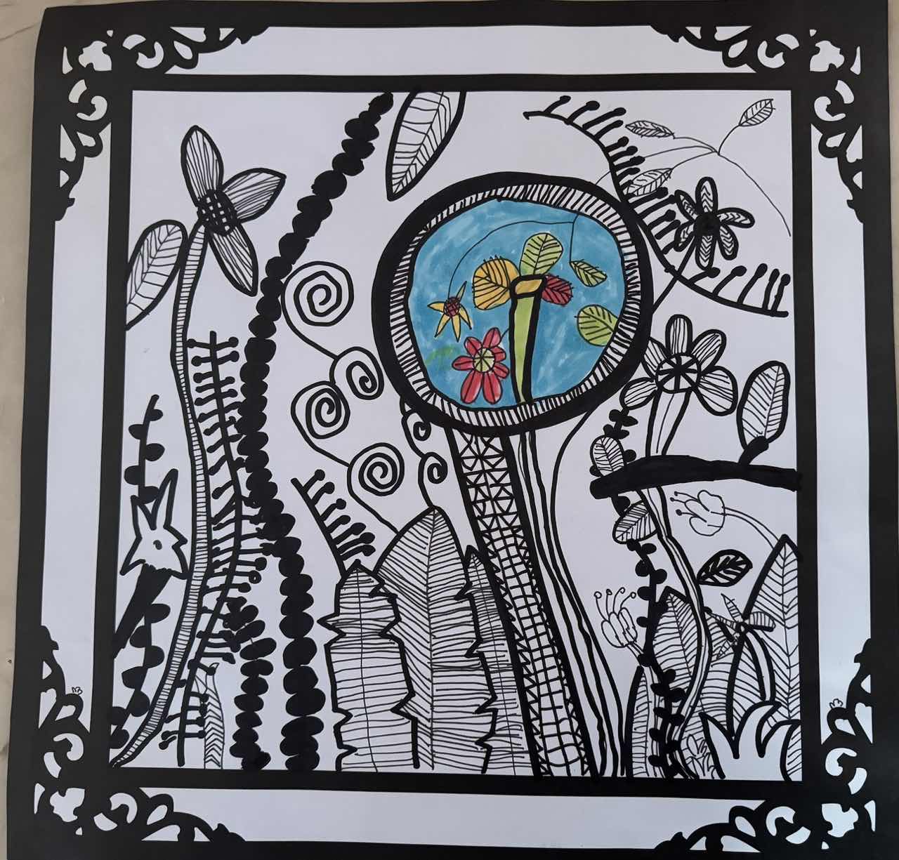 作品《黑色森林的彩色秘密》 柯桥区实验小学坂湖校区一6班 陈泽颖 指导老师 张建女