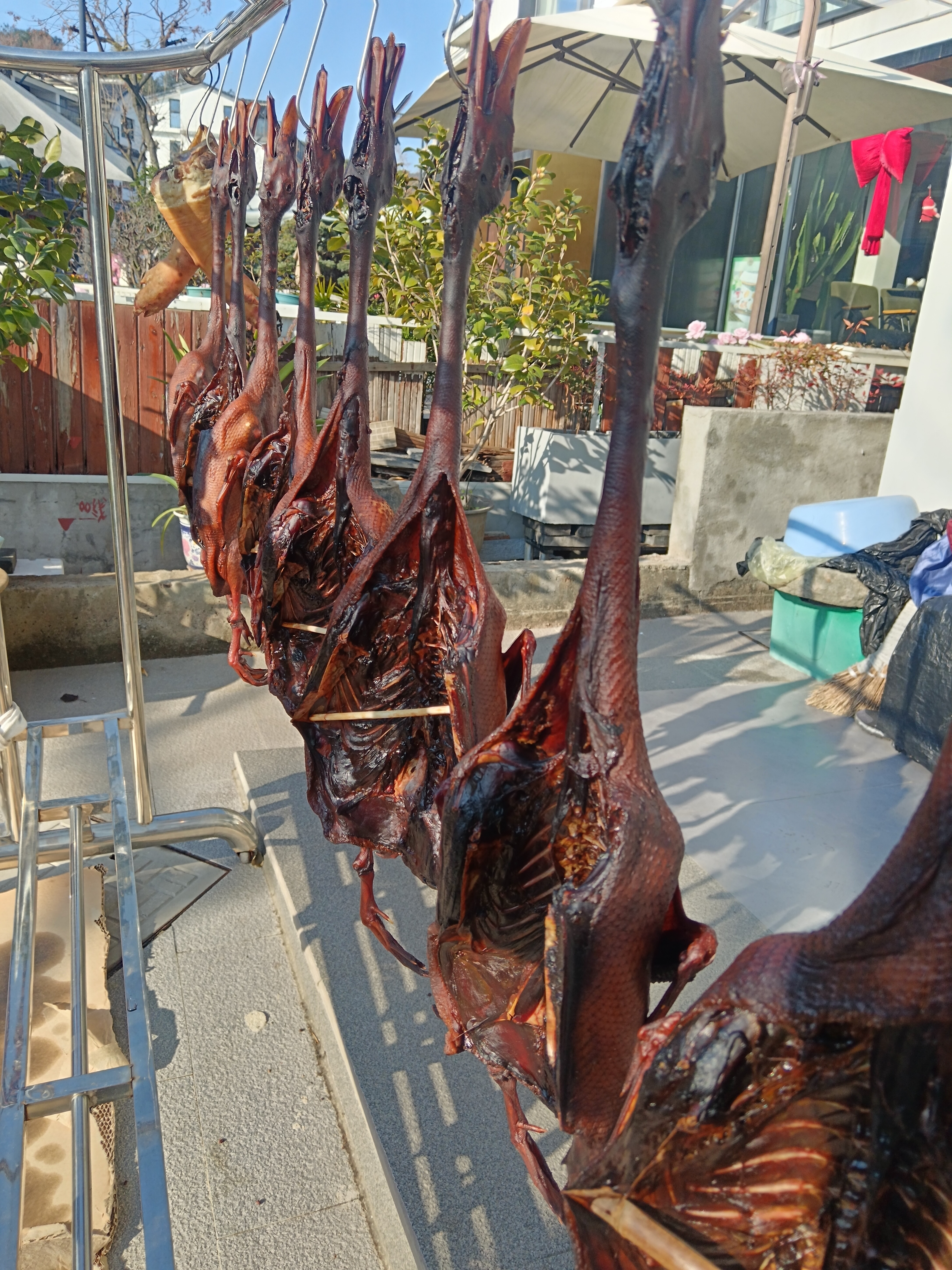 阳光正好,腊鸭排队晒暖。红布条一系,年味就上了阳台。老舍在《北京的春节》一文中这样写道:“按照北京的老规矩,过农历的新年,差不多在腊月的初旬就开头了。‘腊七腊八,冻死寒鸦’,这是一年里最冷的时候。可是,到了严冬,不久便是春天,所以人们并不因为寒冷而减少过年与迎春的热情。在腊八那天,人家里,寺观里,都熬腊八粥。这种特制的粥是祭祖祭神的,可是细一想,它倒是农业社会的一种自傲的表现。这种粥是用所有的各种的米,各种的豆,与各种的干果——杏仁、核桃仁、瓜子、荔枝肉、莲子、花生米、葡萄干、菱角米等熬成的。这不是粥,而是小型的农业展览会。”是限定的烟火气哦~