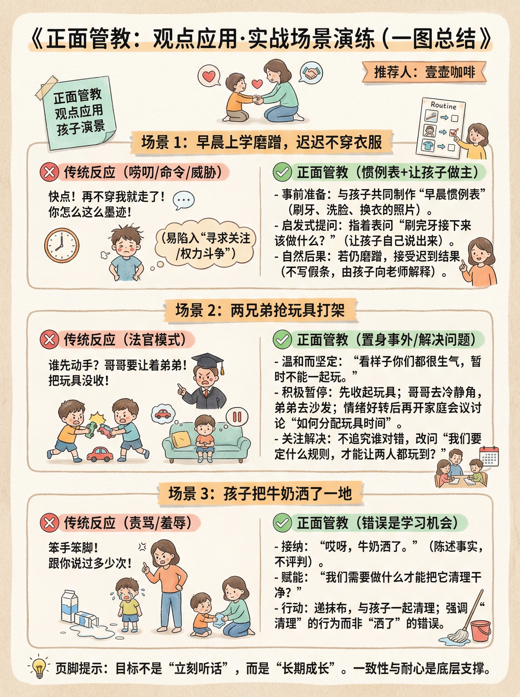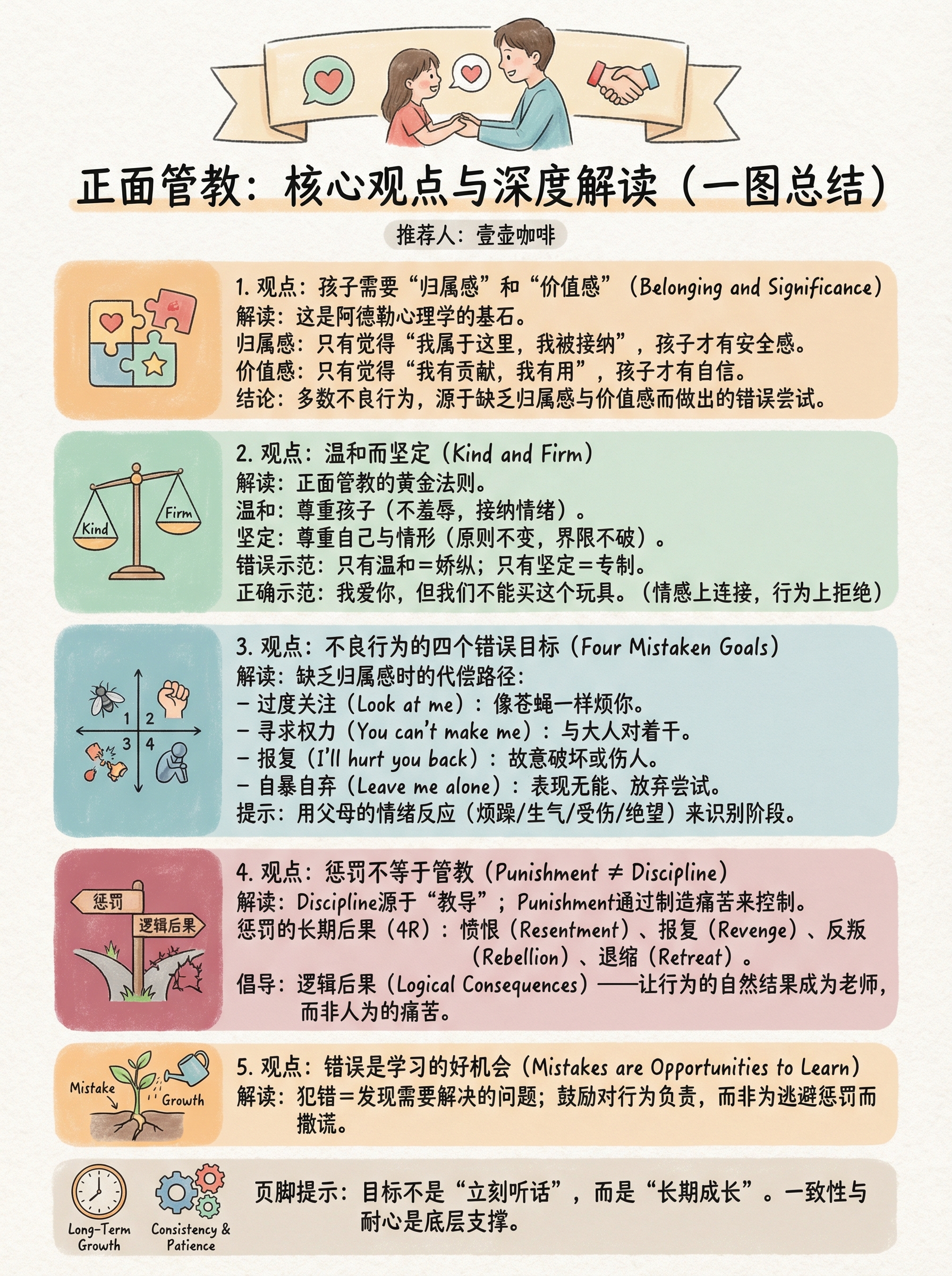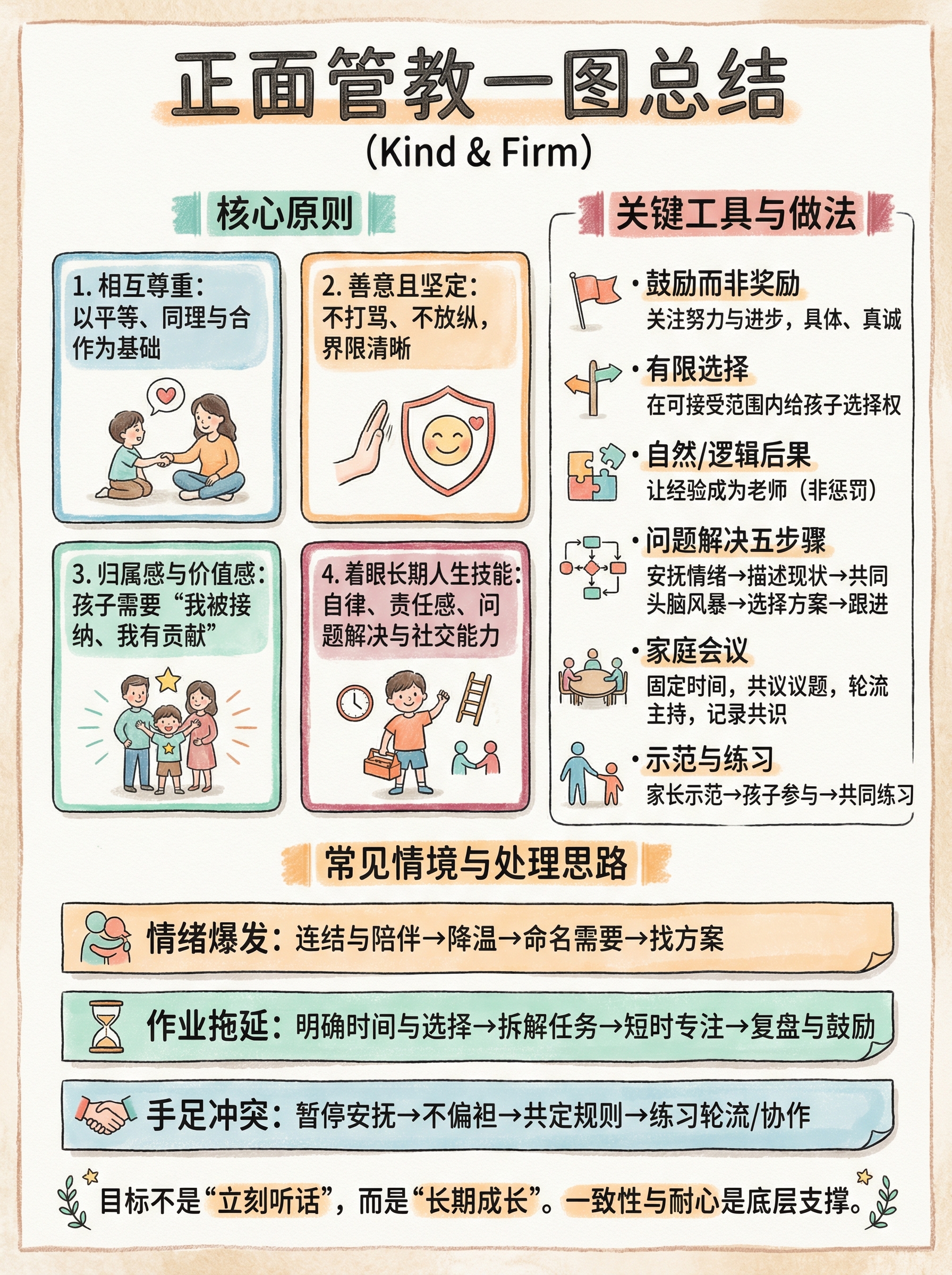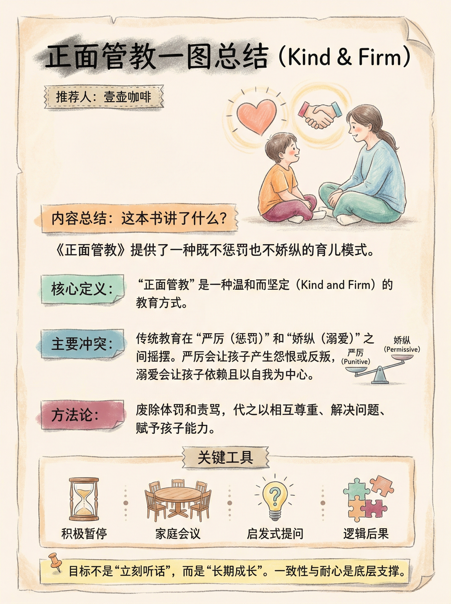 读完《正面管教》才知道,所谓的“棍棒之下出孝子”并不是最好的办法! 管教孩子,不需要发火,也不需要妥协。你需要的是——和善而坚定。 因为养育孩子,其实是一场修罗场,修的是我们自己的心。《正面管教》不仅仅是一套管教孩子的方法,更是一套改善亲密关系的哲学。 它提醒我们:错误不是失败,而是学习的机会。 今天没控制住发火了?没关系,正如书中所说,向孩子道歉,从错误中修复关系,这本身就是一次极好的“正面管教”示范。 愿我们都能成为那个“温柔而有边界”的父母。