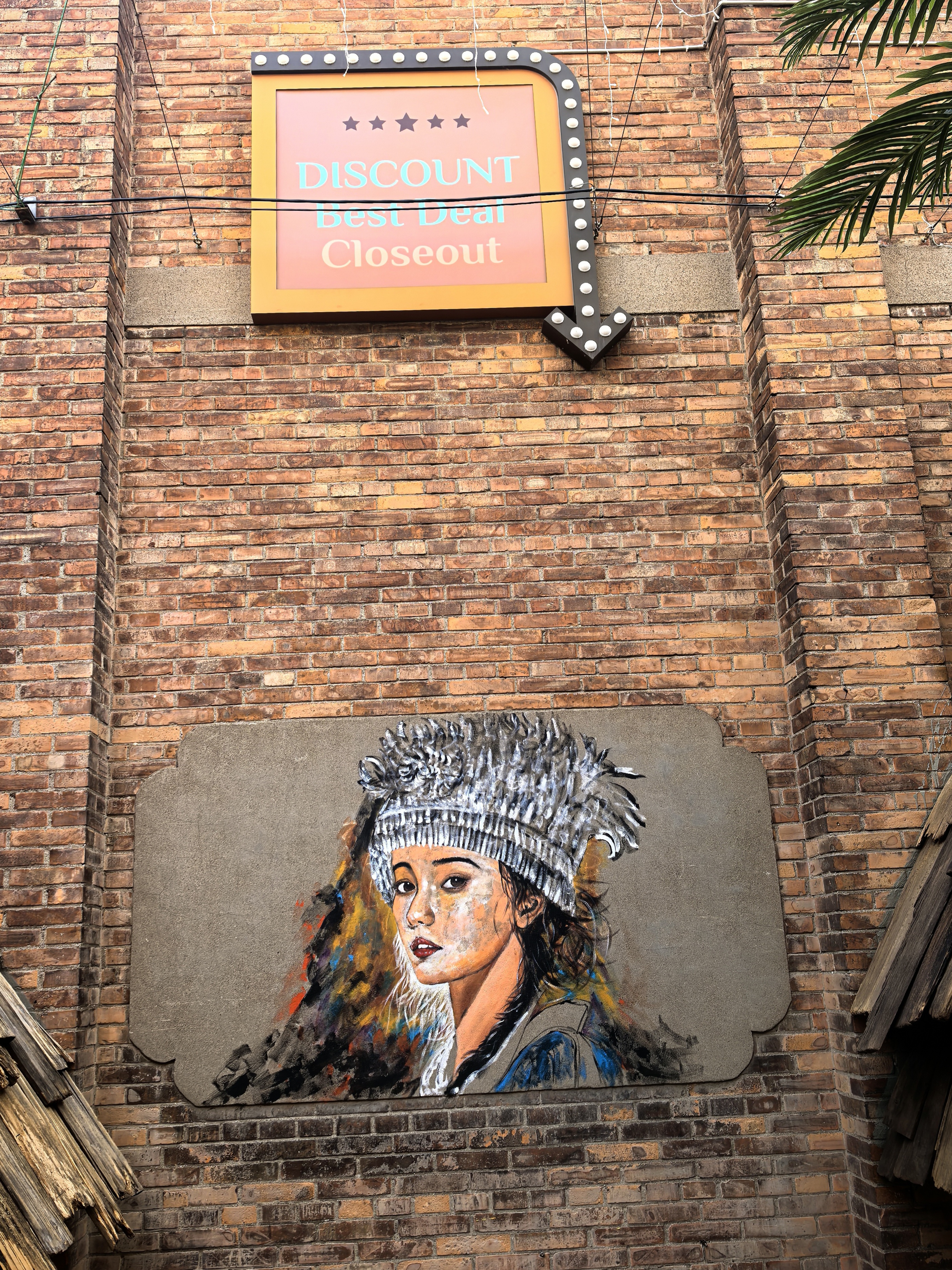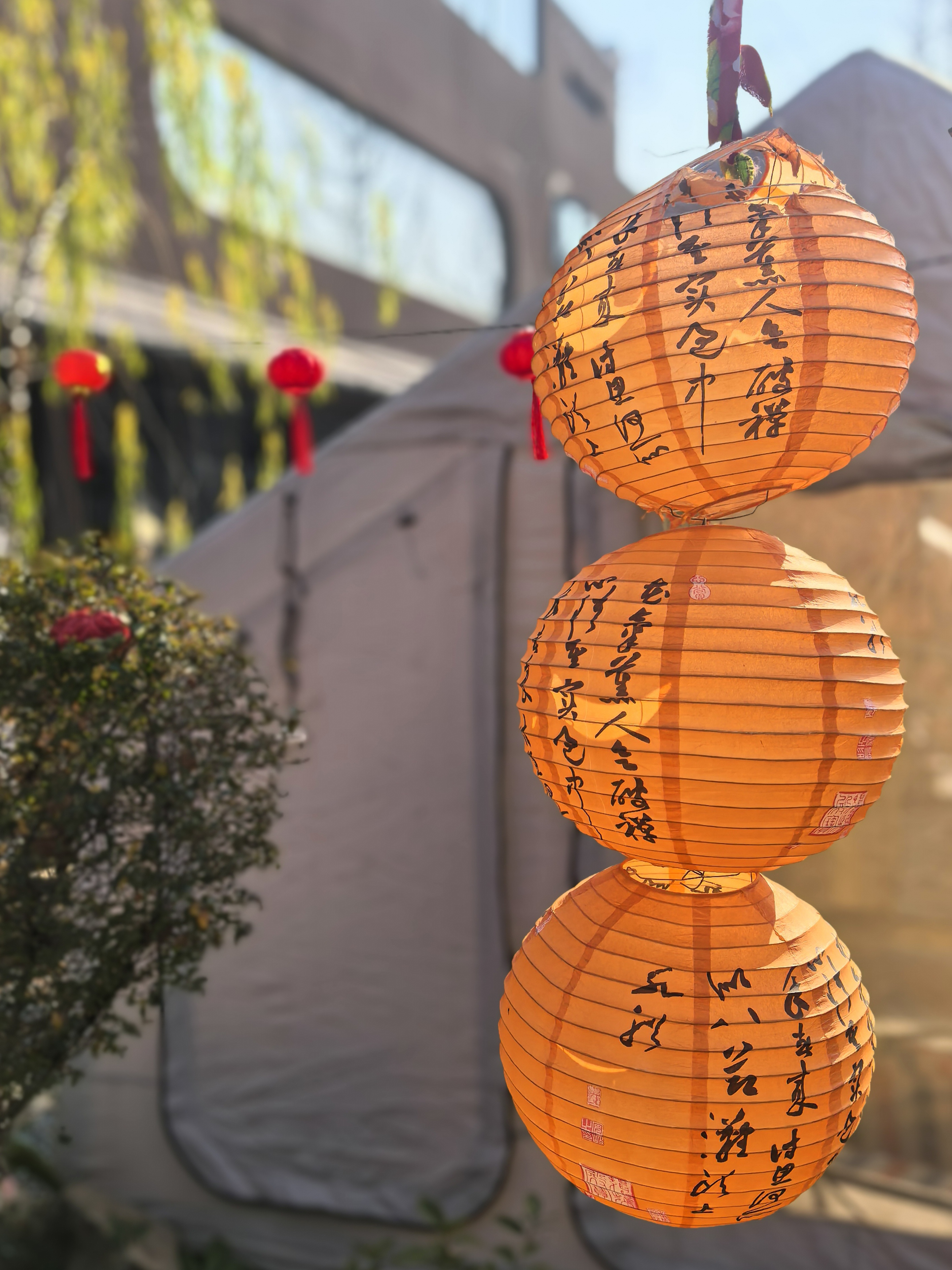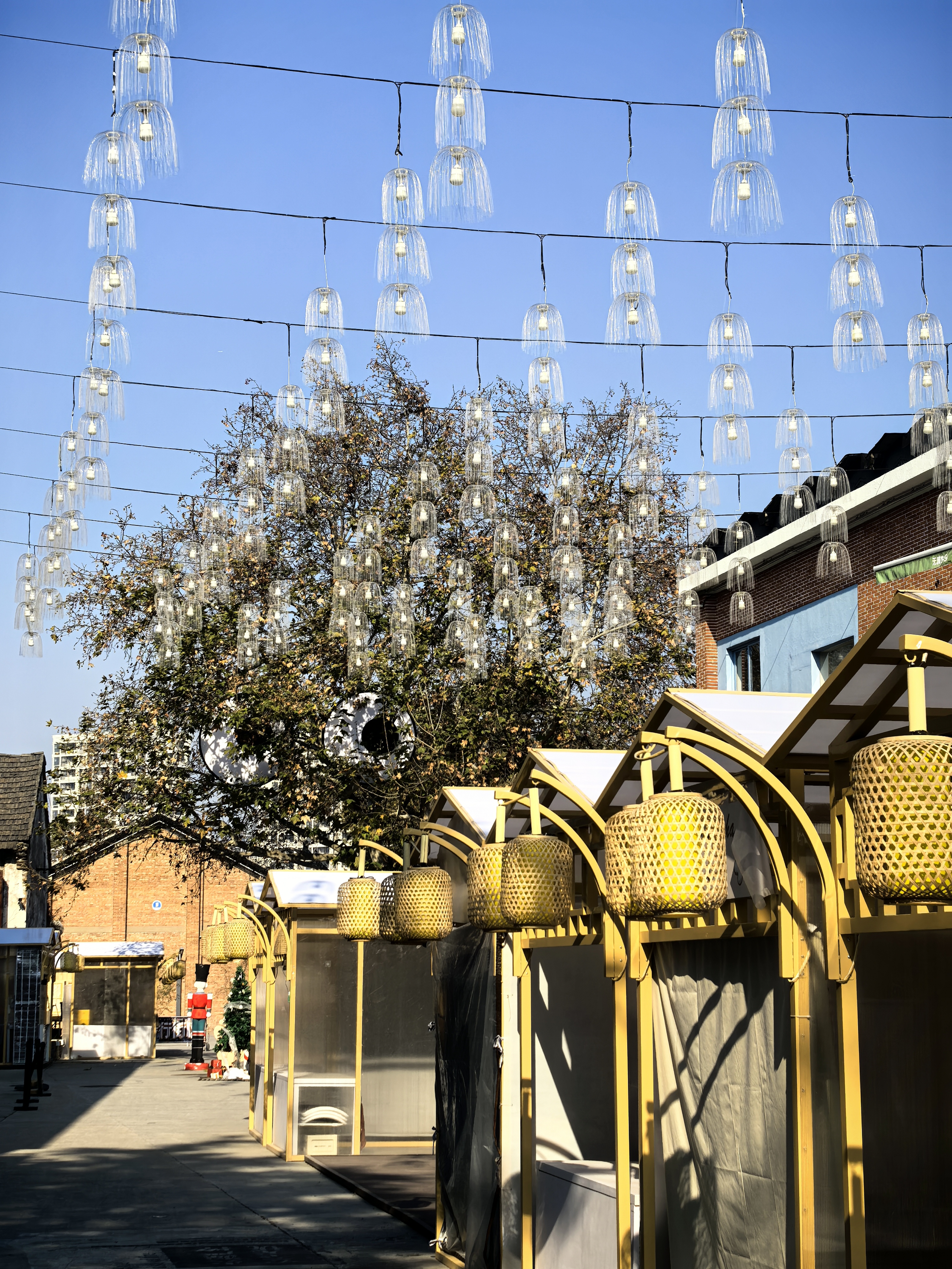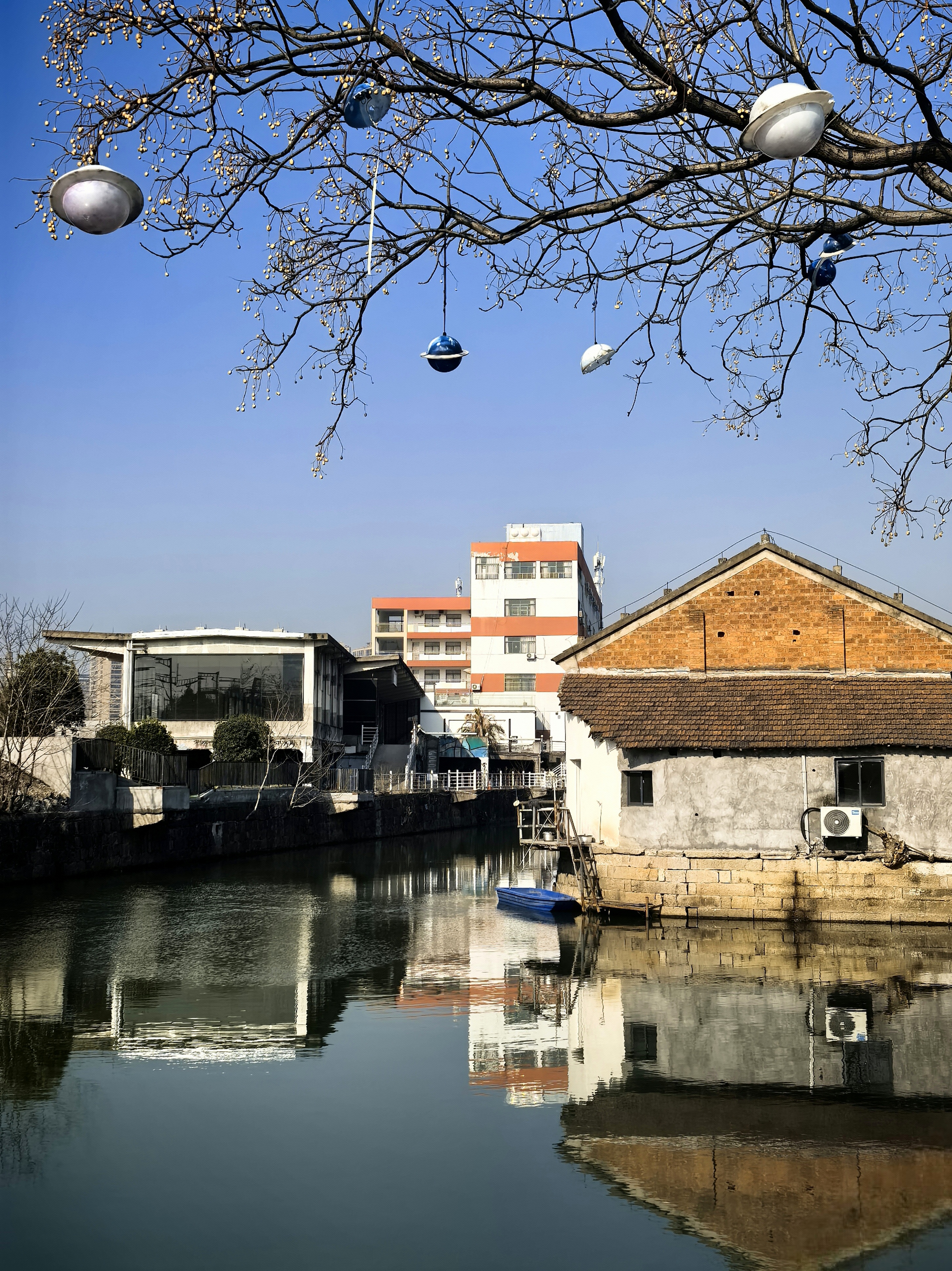 穿行在五七公社的红砖巷陌间,时光的碎片触手可及。这里是昔日供销社的仓库。斑驳的墙体上,墨迹如藤蔓般攀爬着众多杂乱的姓氏,像是被岁月无意间拓印下来的民间族谱。 几条橙红的布艺金鱼却悠然游弋在蓝天里,与巷角的市井招牌相映成趣。废弃的厂房窗棂下,一树灯笼状的果实悬垂在斑驳砖墙前,恍若旧日工厂尚未熄灭的灯盏。 停泊在静水边的蓝船,倒映着对岸彩色的现代公寓;枝头新挂的暖黄灯笼上,墨书恰好应和着墙头那些褪色的姓氏笔划。 粉色的草莓熊和旁边的熊涂鸦自然不能忘记了打卡,这也是五七的标志性景点,还有工业风的创意雕塑,留着时代印记的老厂房,透着萌萌的复古风,都可能是出片的地方。 每当夜幕降临的时候,这里就是夜生活天堂。能想见乐队声起时,老煤球厂如何在光影中重新呼吸。 也许尘封已久的历史,像那株从砖缝探出的绿藤,在工业风的骨架里,持续生长出鲜活而带着烟火气的新芽。