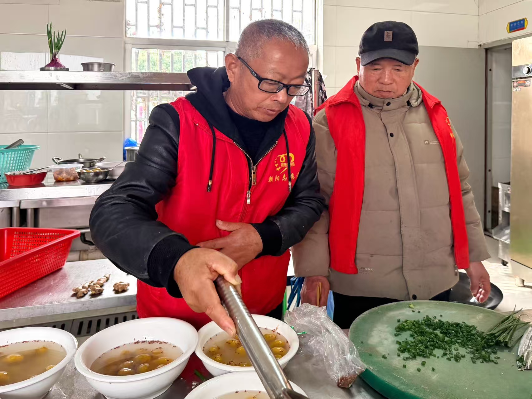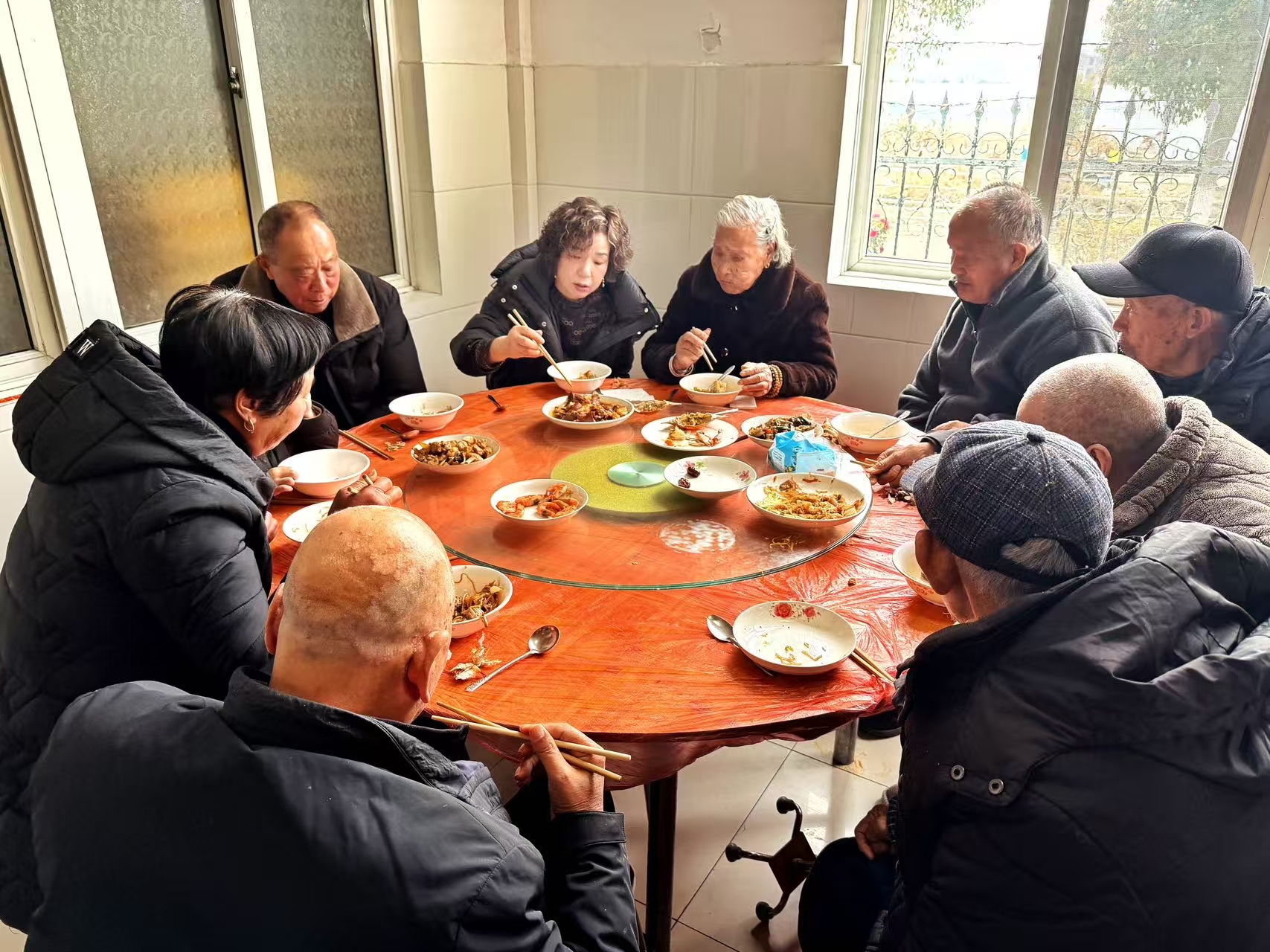 岁月悠悠情愈深/尊老爱老暖人心 一顿年夜饭,是中国人独特的情感纽带,在新年的钟声越来越近时,温岭市朝阳志愿者服务中心携手爱心人士走进新河下张养老院,一场以“岁月悠悠情愈深、尊老爱老暖人心〞烧年夜饭活动在这里进行。 理发的、演出的、烧年夜饭的,各司其责。理发师按照老人们的意愿,尽量满足他们的要求,对卧床不起的老人,志愿者床前服务。老人们非常喜欢志愿者为她(他)们修剪指甲,排队等候。演出队为老人们准备丰富多彩的精神食粮:非遗《洞房经》、越剧《送凤冠》、《祝寿歌》和舞蹈《今天是你的生日、我的祖国》《红歌六联唱》等娱乐节目,丰富了他们的精神文化生活,也给他们增加了乐趣。 厨房里的志愿者与毛大厨一起,精心为老人们配备本地特色的年夜饭,菜品注重原汁原味与口感软糯。如清炖鸡汤、淀粉勾海参、红烧猪肉、清蒸黄鱼、清蒸膏蟹、肉皮哈唎等。当一份份爱心年夜饭端上桌时,老人们曲得是满心欢喜,感到无比的幸福和温暖,102岁的阿婆称赞菜肴美味,感谢志愿者为他们准备这么多的菜肴表示感谢,让她感受到家的温馨和节日的喜庆!