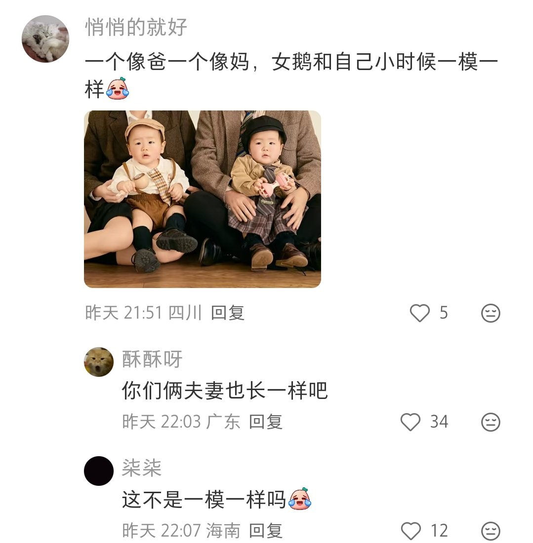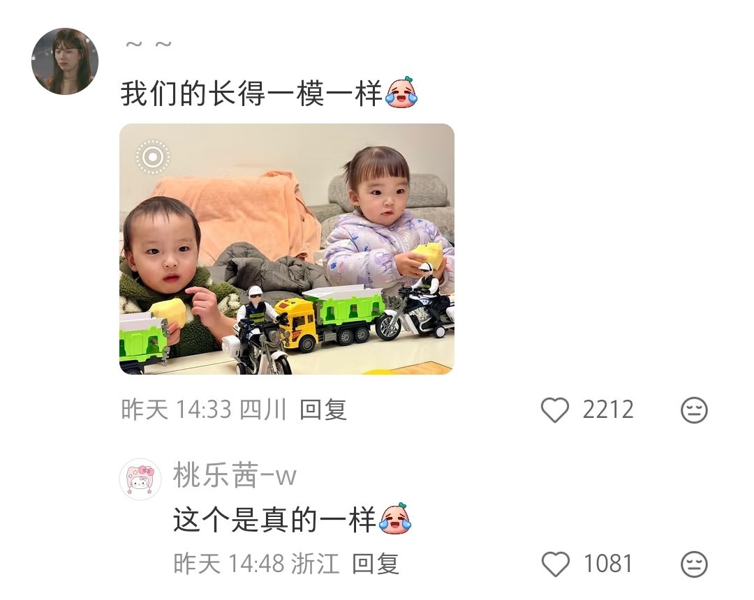 龙凤胎也能长得一模一样啊[笑cry]