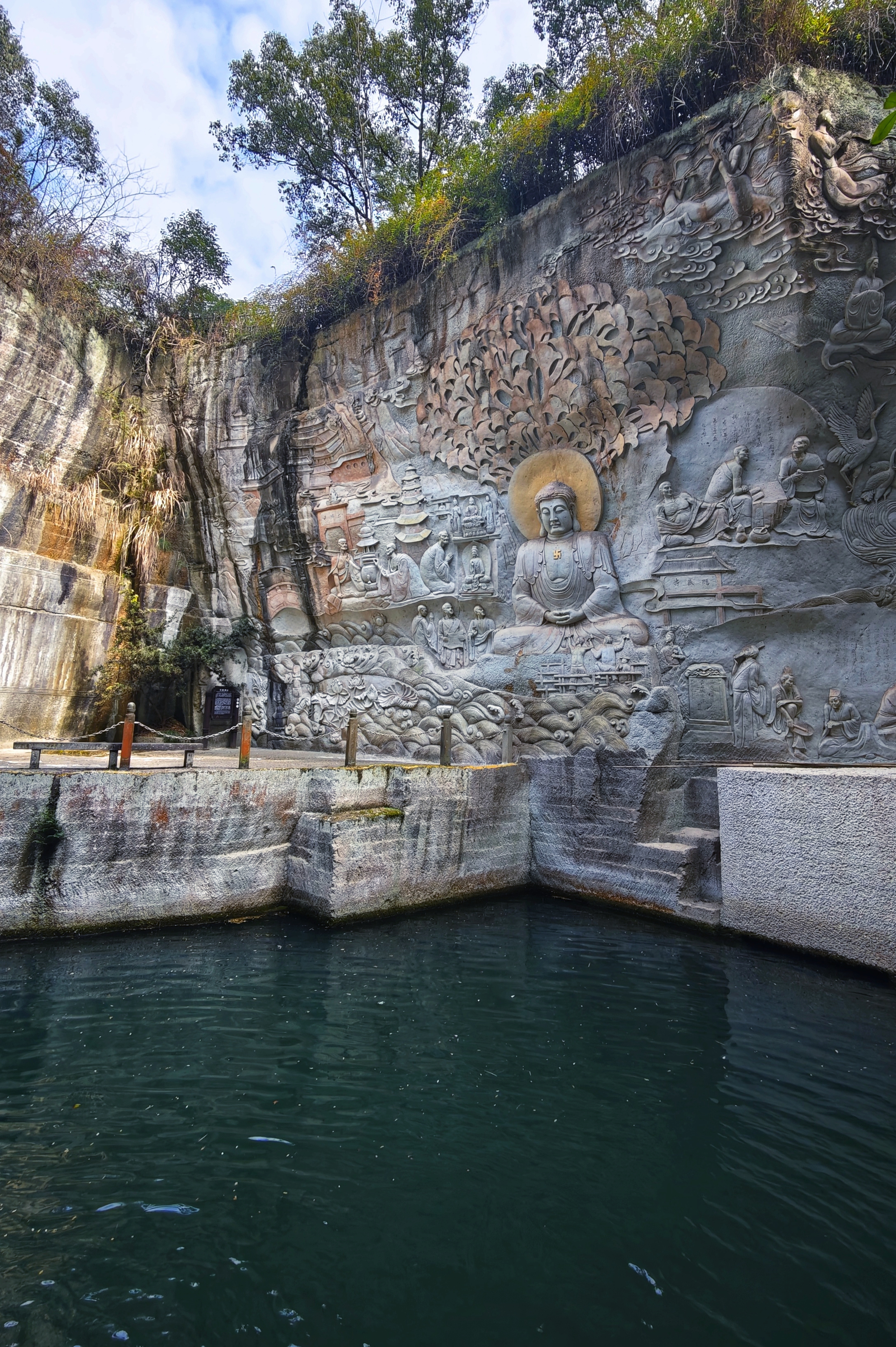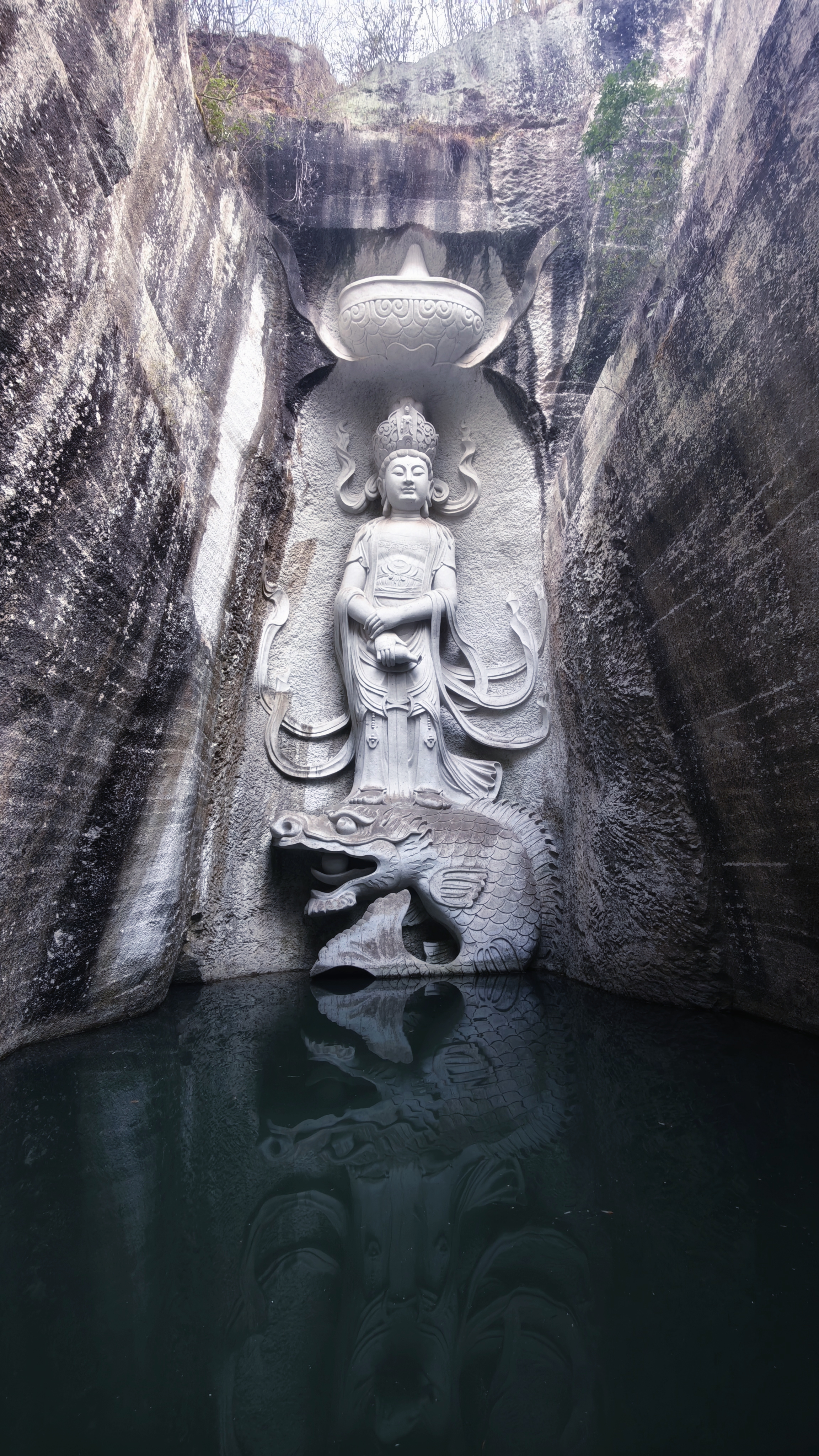 明代采石场变身为禅意秘境,岩壁的纹理里藏着岁月的慈悲。站在鳌鱼观音像下,才懂什么是“幽谷藏佛,心归自然”。