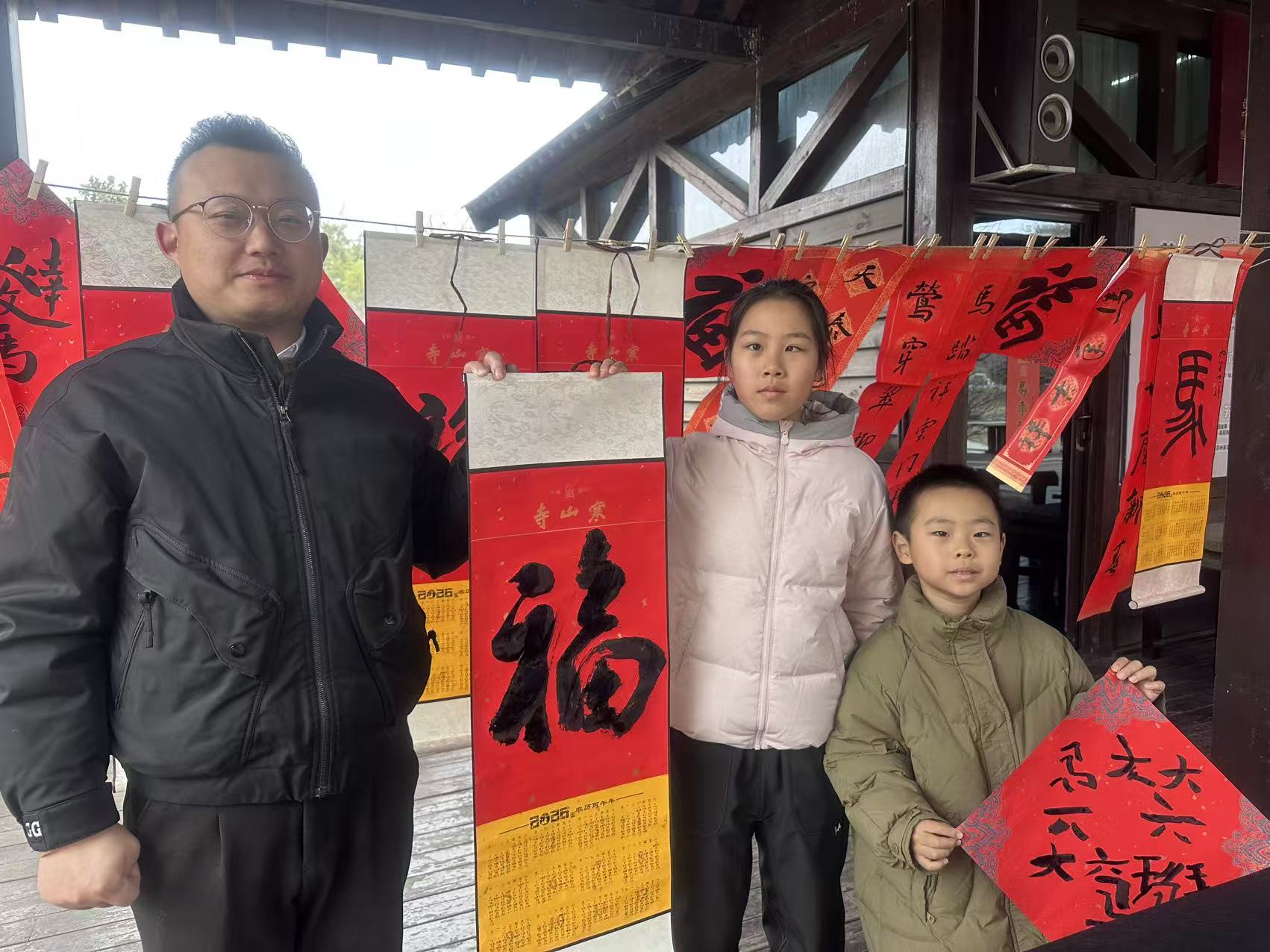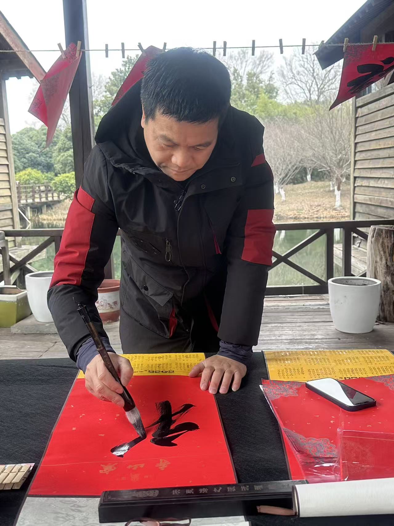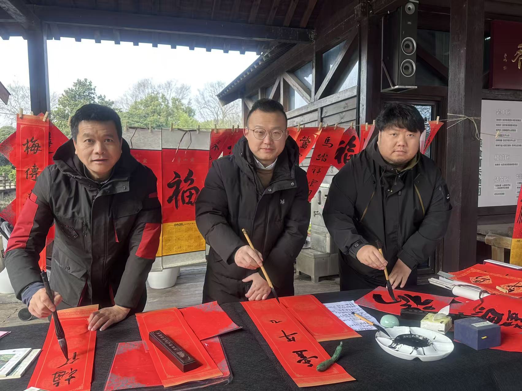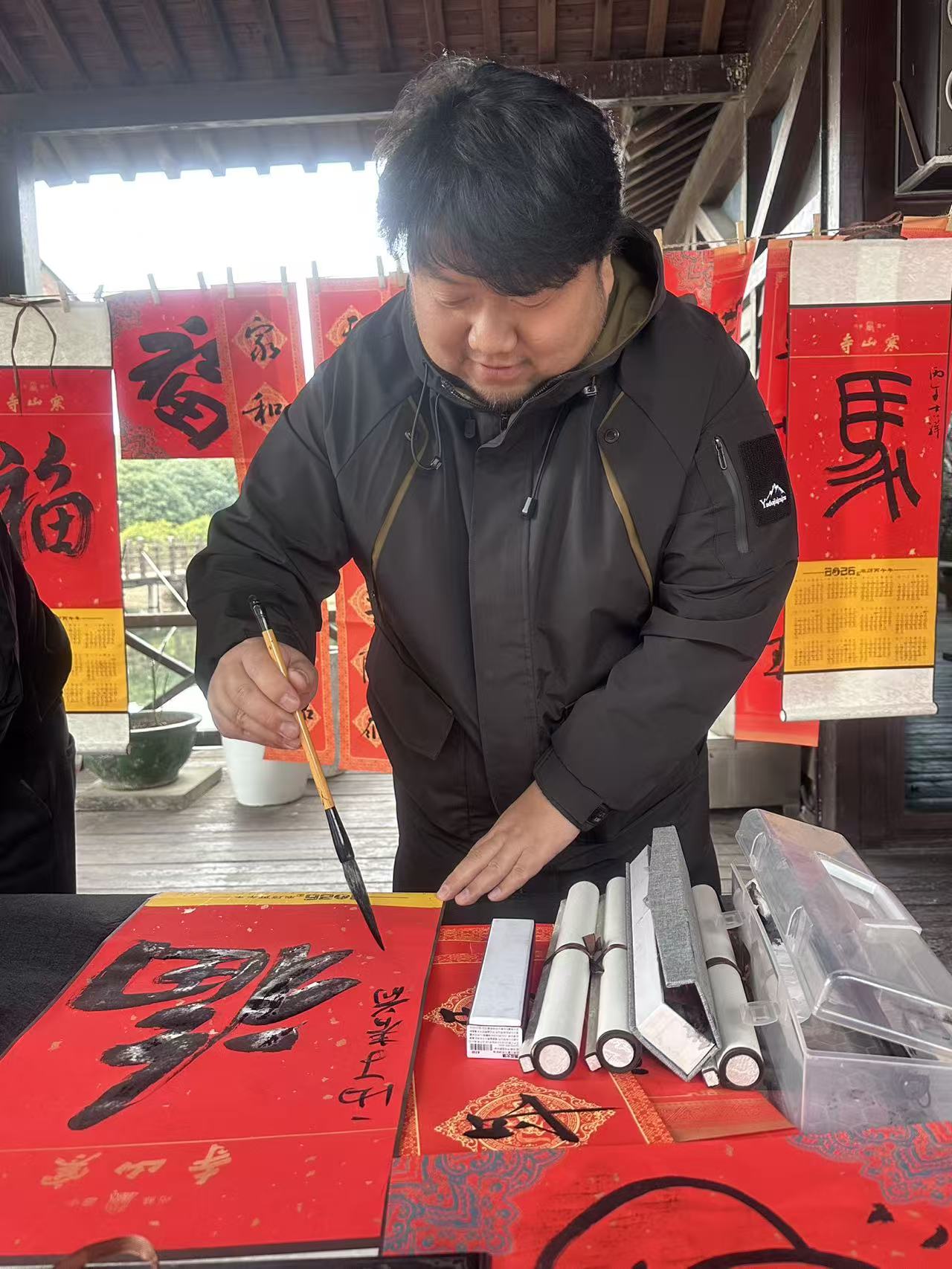 金马奔腾迎新春——著名青年书法家黄瀚先生携同道挥毫写春联 今天(1月25日)是腊八前夕,再过一天便是腊八。俗话说“过了腊八就是年”,农历春节的脚步日益临近。你或许已经发现,不少商场、超市里,春联与红灯笼早已悄然上架,热闹喜庆的年味正弥漫开来。 春联,又称“春贴”“门对”“对联”,是过年时张贴的红色喜庆元素“年红”中的重要品类。它以对仗工整、简洁精巧的文字描绘美好图景,抒发新春祈愿,是中国独有的文学形式,更是华人过年不可或缺的传统习俗。当家家户户在门口贴上春联、福字与窗花,春节的序幕便正式拉开。 今日,著名青年书法家黄瀚先生携同道好友拓振宇、吴晓明两位先生,一同走进苏州中国花卉植物园,为苏州市民挥毫送福、书写春联。 黄瀚先生予人敦厚内敛、谦和大度之感。他身兼苏州市书法家协会理事、苏州市相城区书法家协会副秘书长、江苏省书法家协会会员、苏州轨道交通文联书画协会会长等职,2023年入选“姑苏宣传文化新秀培育计划”。其作品屡登《书法报》《书法导报》《苏州日报》《姑苏晚报》《城市早八点》等报刊,更被苏州美术馆、寒山寺、相城区委宣传部、相城区档案馆等机构收藏。他的书法艺术根植传统而不泥古,师法晋唐又具新意,楷书端稳厚重、骨力内含,行书灵动飘逸、气韵贯通,草书则纵笔挥洒、气势酣畅,笔墨间既有千钧刚劲之力,亦含婉转柔美之姿,将诗意浪漫与醇厚韵味熔于一炉。写春联时,他落笔沉稳、行笔流畅,墨色浓淡相宜,字里行间既有对传统春联的敬畏传承,又融入个人笔墨意趣,笔下春联既合对仗之规,又具书法之美,宛若悠扬乐章,奏响新春的动人旋律。 拓振宇任职于苏州市轨道交通集团有限公司,身为苏州市相城区书法家协会会员、中国职工摄影家协会会员、苏州市摄影家协会会员、姑苏区摄影家协会理事、苏州轨道交通文联摄影家协会会长,他的艺术履历同样亮眼——2019年获评苏州市文联系统优秀会员,2024年入展第24届平遥国际摄影大展,同年10月于寒山寺和合美术馆举办书画展,作品见诸《壹周刊》《中国摄影家》《华夏文明导报》《姑苏晚报》等刊物。他不仅精于摄影,更在篆刻、中国画与书法领域深耕多年,书法上兼习篆隶楷行,篆书古朴典雅、线条圆劲,隶书蚕头燕尾、端庄大气,楷书规整严谨、法度森严,行书则洒脱自然、意趣盎然;篆刻上刀法刚劲利落,朱文秀逸、白文雄浑,方寸之间尽显金石韵味;中国画以山水、花鸟见长,山水笔墨苍润、意境悠远,花鸟生动传神、意态鲜活。一支毛笔在手,蘸墨挥毫间,线条或粗或细、或曲或直、或轻或重、或虚或实,万千气象跃然纸上,写春联时更是将书法功底与新春意境相融,笔画刚柔相济,结体疏密有致,尽抒胸中丘壑与满腔情怀。 吴晓明先生自幼便醉心书法与绘画,数十载笔耕不辍,从未懈怠。他于书法一道,遍临魏晋唐宋名家碑帖,楷书取法欧柳,骨力洞达、结构端严;行书师法二王,笔法灵动、气韵贯通,落笔之际,墨色浓淡干湿的变化浑然天成,尽显书写的韵律之美。在绘画领域,他常年游历祖国名山大川,于奇峰峻岭、清溪幽林之间汲取自然灵气,追求恬静悠远、天人合一的艺术意境。尤为擅长将写意精神融入山水笔墨,笔下山石多用披麻皴与斧劈皴相济,线条苍劲老辣;云水则以淡墨晕染,虚实相生,寥寥数笔便勾勒出烟波浩渺之态。他的画作既得山川之形,更传山水之魂,笔墨间透着一份超然物外的闲适与雅致。同时,他还善于将书法的笔墨意趣融入绘画创作,做到“书画同源”的浑然交融,其作品因意境悠远、笔墨精妙,深受书画爱好者与藏家的广泛好评。 贴春联、贴福字,是刻在中国人骨子里的春节传统。每逢新春佳节,家家户户都会在屋门、墙壁、门楣上贴上大大小小的“福”字,祈愿新岁平安顺遂、福气满盈。活动现场,三位书法家泼墨挥毫,写下各种字体、各式造型的春联与“福”字,引得市民游客争相领取,欢声笑语此起彼伏。大家纷纷感慨:“游苏州中国花卉植物园,还能把满载新春祝福的春联带回家,实在太有意义了!” 每至春节来临,苏州各单位及社会团体总会争相邀请黄瀚、拓振宇、吴晓明三位先生前往书写春联。他们也总是欣然应允,积极投身这类公益活动,以笔墨为媒,将中国劳动人民辟邪除灾、迎祥纳福的美好愿望,送到千家万户。 张维忠