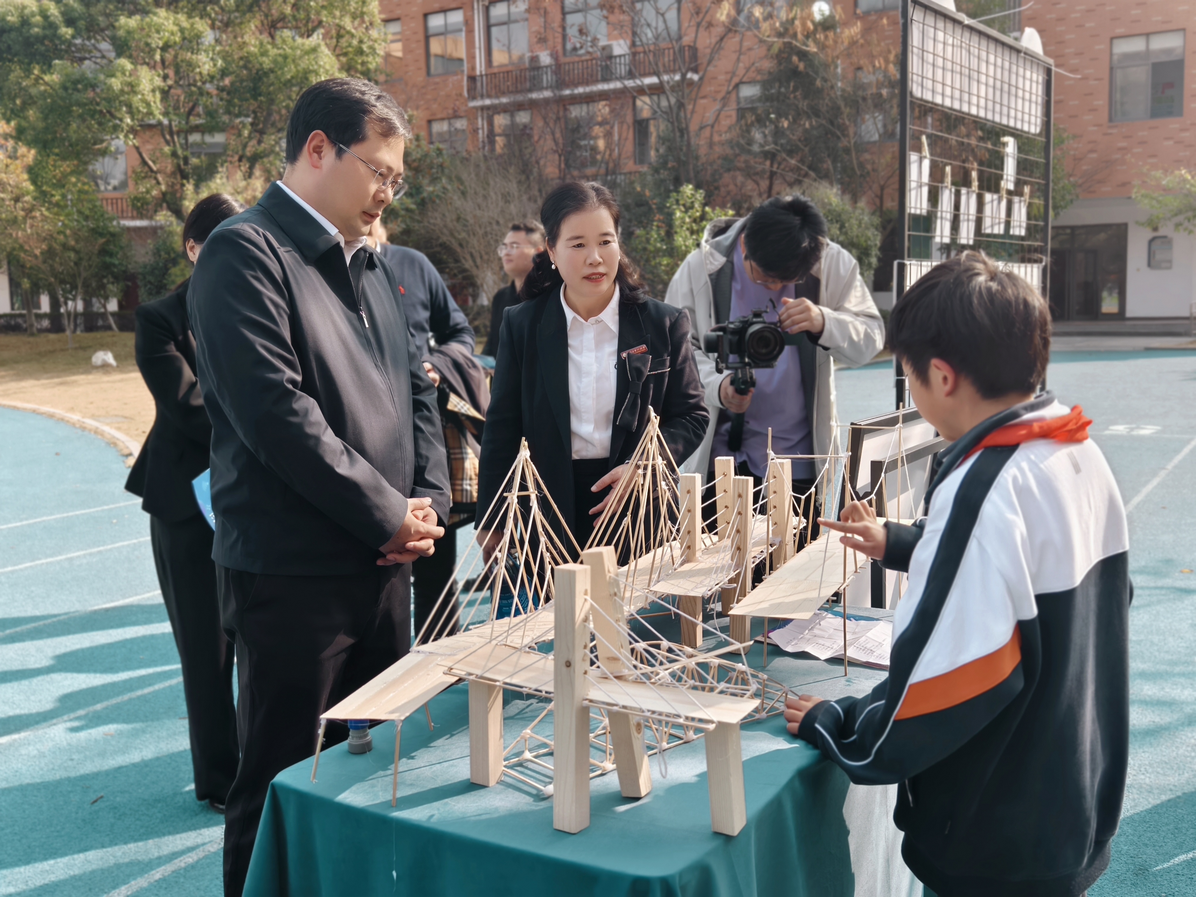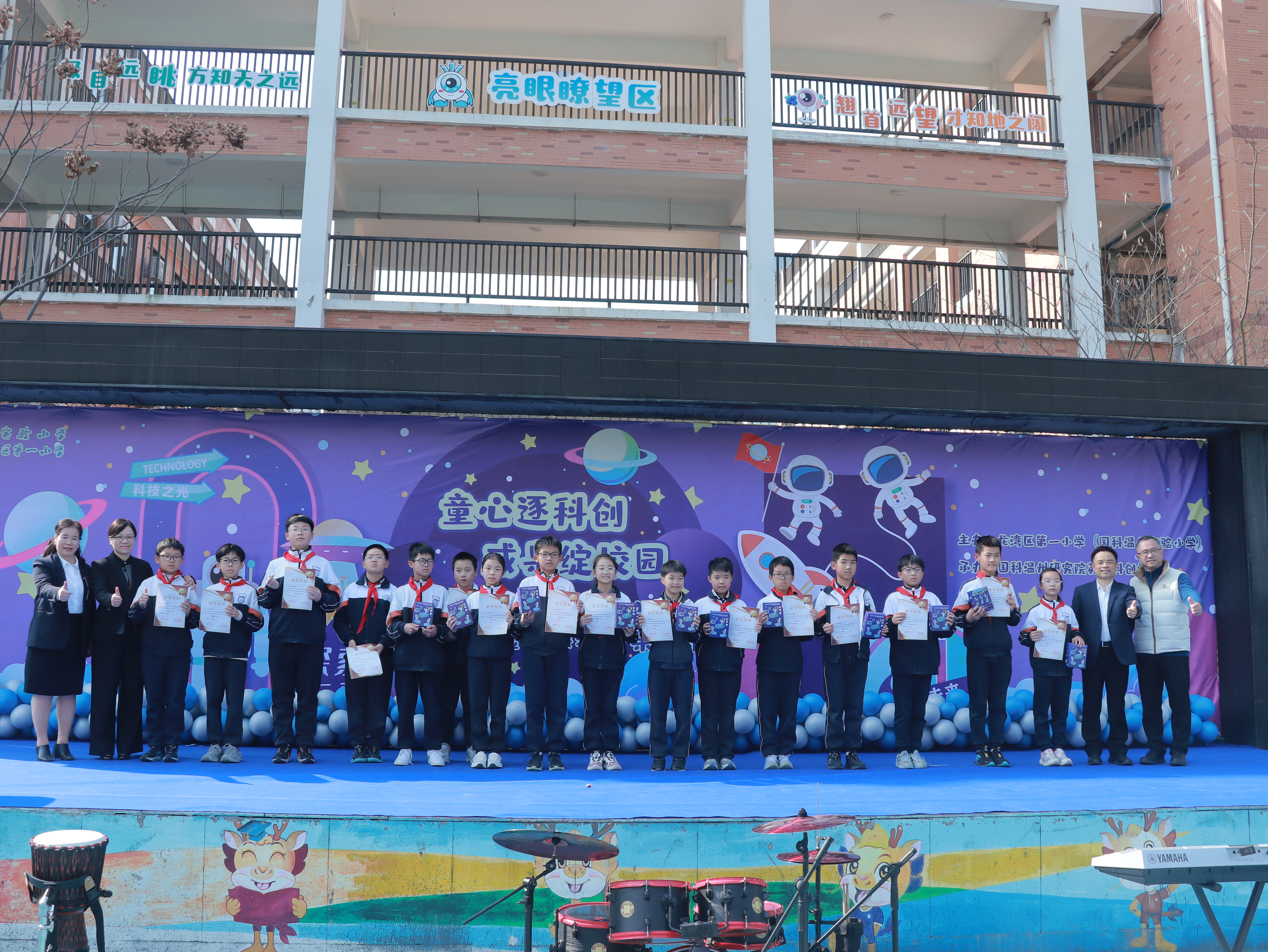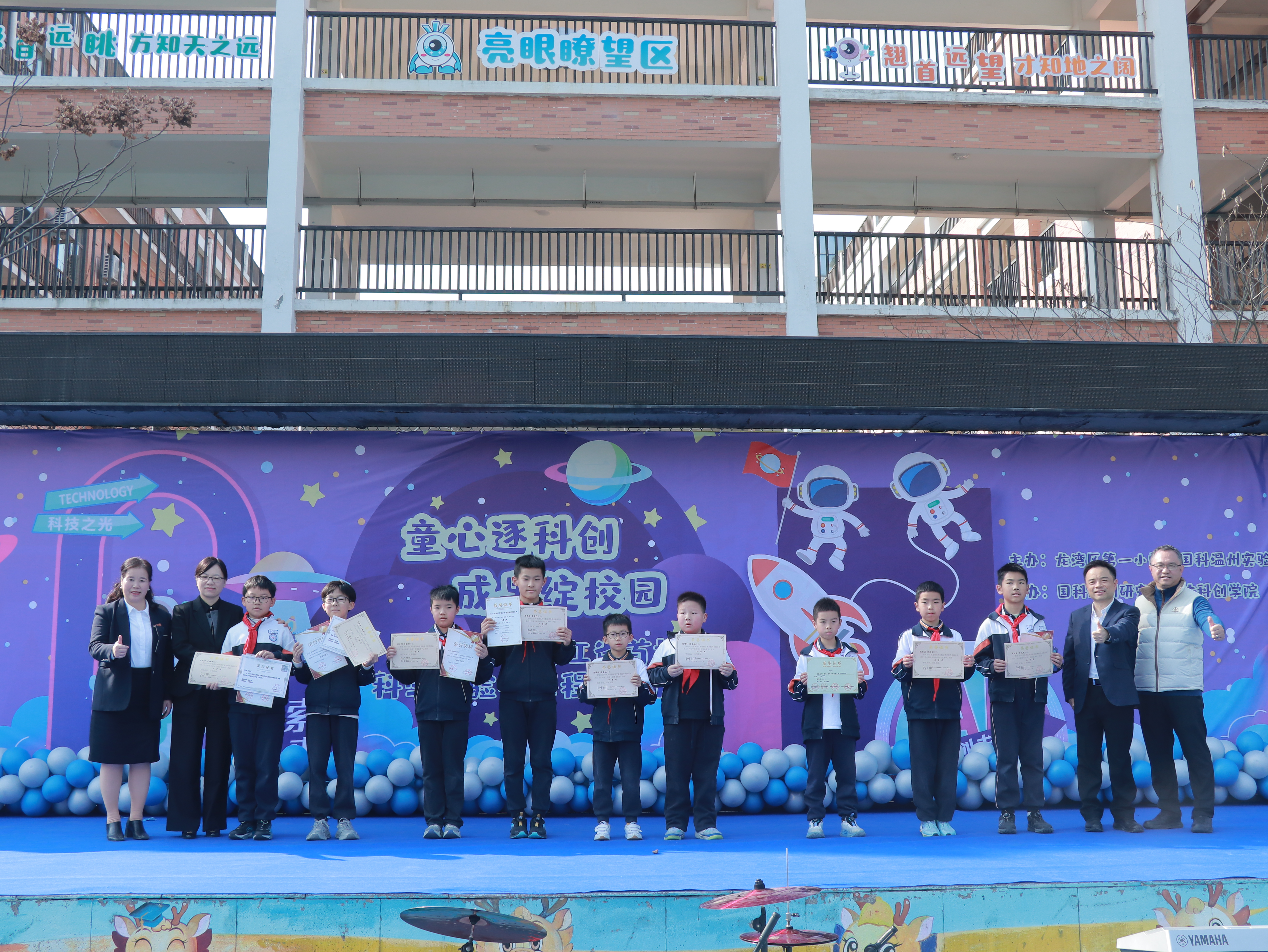 童心探科学,校园绽光芒 ——直击龙湾一小省科学实验校课程成果展 1月16日下午,龙湾区第一小学(国科温州实验小学)的绿茵场上热闹非凡!科技感满满的展台、兴奋的笑脸、动手操作的同学们……这里正在举办一场别开生面的科学成果展示活动。作为浙江省首批中小学科学实验校,学校以“童心逐科创,成果绽校园”为主题,把科学变得好玩又亲切! 活动一开始,龙湾区科协吴伊峰主席就为学校和同学们点赞。他说,学校与国科温州研究院的合作让“高深科学”走进了课堂,真正做到了“学生也能动手做研究”! 随后,一批在科学活动中表现优异的同学获得了“科学家小达人”等荣誉。 五年级的陈佳铭同学还分享了自己从对人工智能好奇到拿下机器人比赛奖牌的故事,听得我们跃跃欲试! 国科温州研究院副院长帅建伟教授也来到我们中间。他笑着鼓励大家:“你们不仅是学科学,更是在玩科学、创科学!”并表示以后还会带来更多有趣的课程和资源。 颁奖结束后,最令人期待的体验环节开始啦!操场瞬间变身“迷你科技馆”,分为展示区和体验区。展示区里,“电的奥秘”“激光切割”“小小工程师”等18门课程作品琳琅满目,同学们自信地当起讲解员,讲述自己的创作故事。体验区更是人气爆棚!“点亮城市”“火星车”“机器狗操控”“脑控赛车”……十多项体验项目吸引大家排起小队。我们也亲身体验了许多项目,新奇又有趣! 这次活动不仅让我们玩得开心,更让我们感受到:科学不是遥不可及的公式,而是动手创造的乐趣。一颗颗好奇的种子,正在这里悄悄发芽…… 潮新闻小记者报道:51班周曼岑 52班吴炜桢 53班郑书妍 53班陈盈颖 指导师:饶糯然