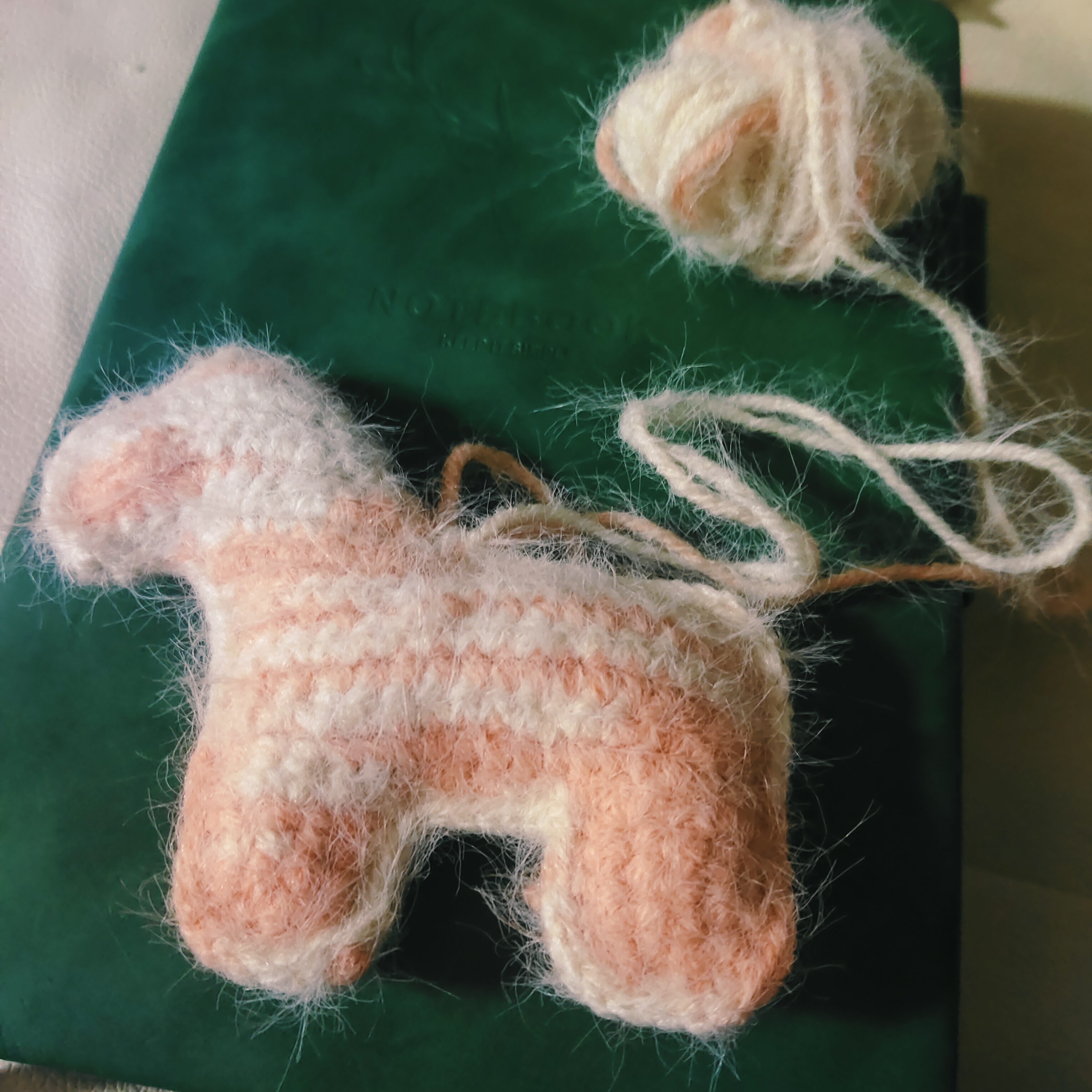 用的是织渔夫帽剩下的一小团毛线。 鬃毛和尾巴还有马鞍该用什么毛线什么颜色装饰呢?还在思考中…… 预祝大家在新的一年里,都要马上发财💰马上如意噢🤓 马上发发发