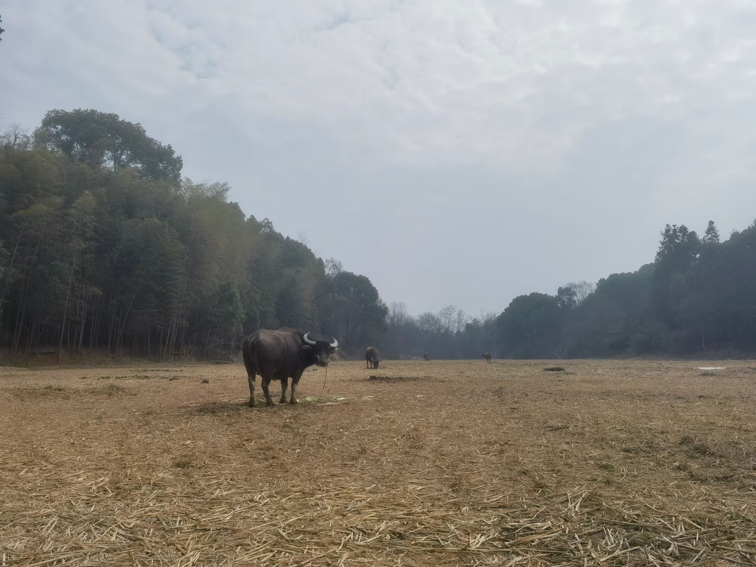 冬日田园,牛在田坎