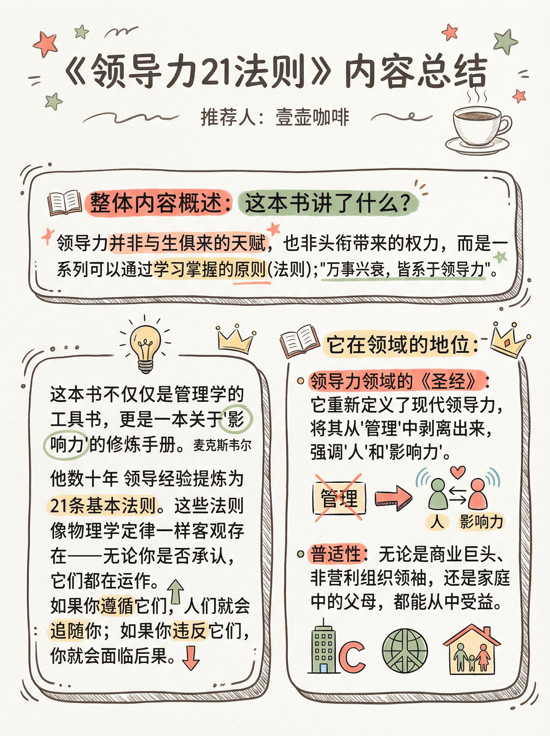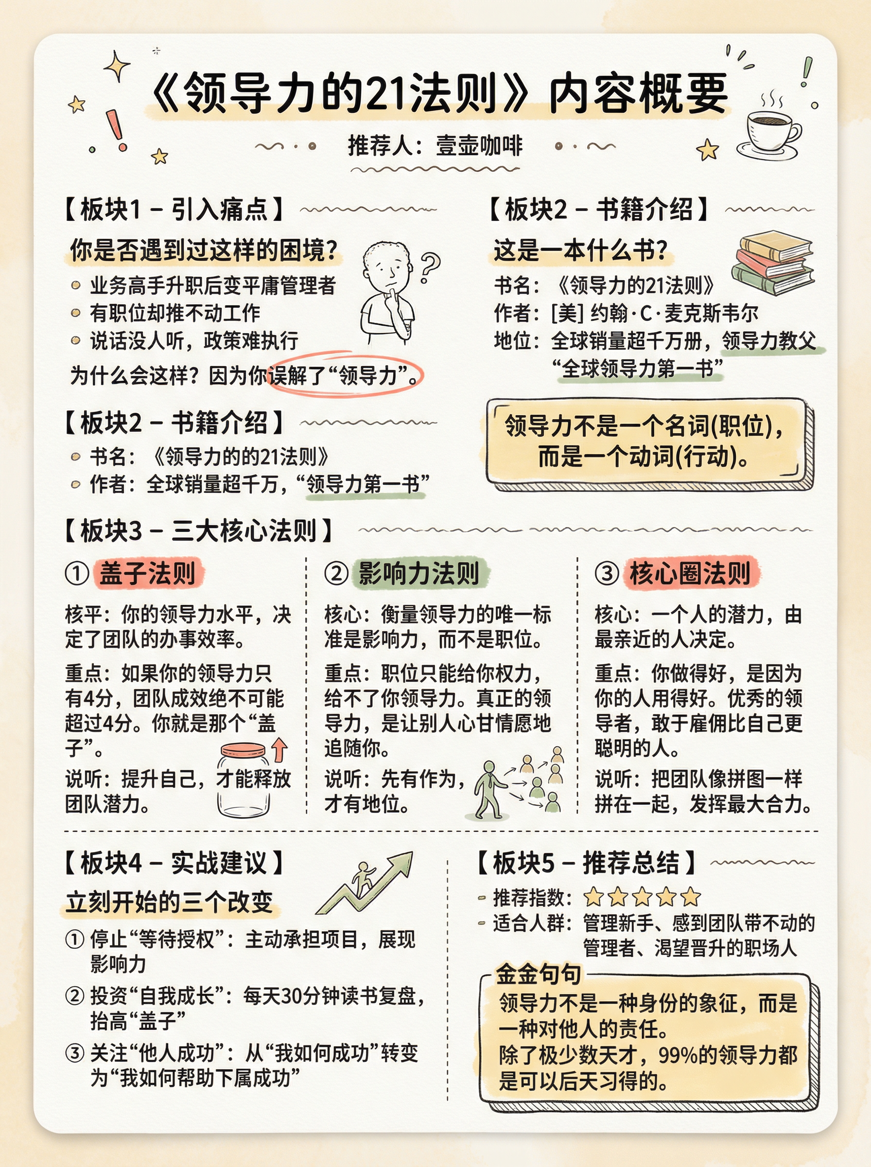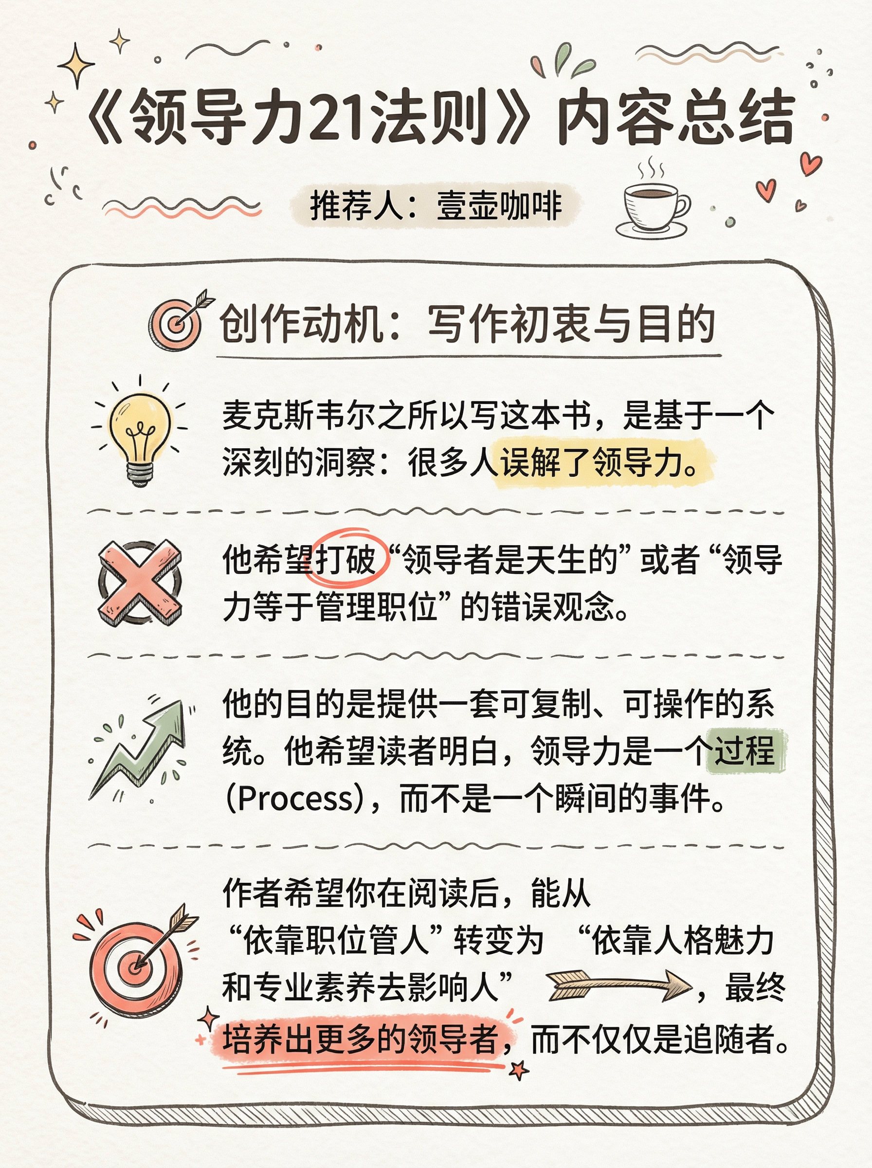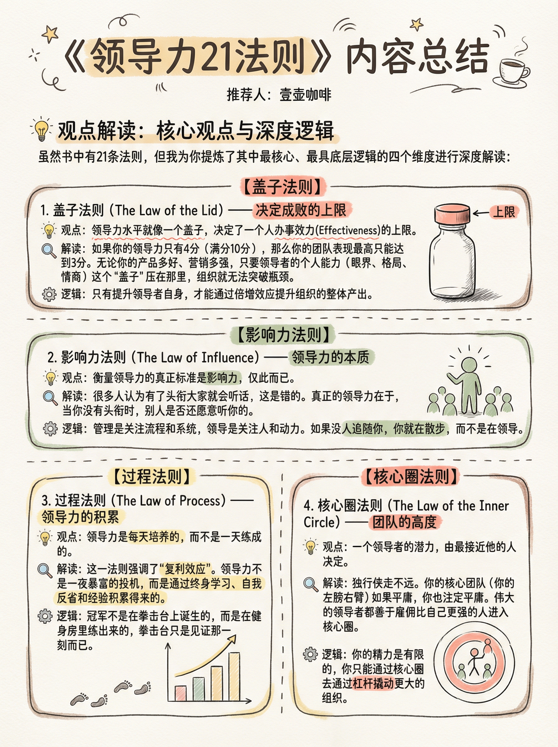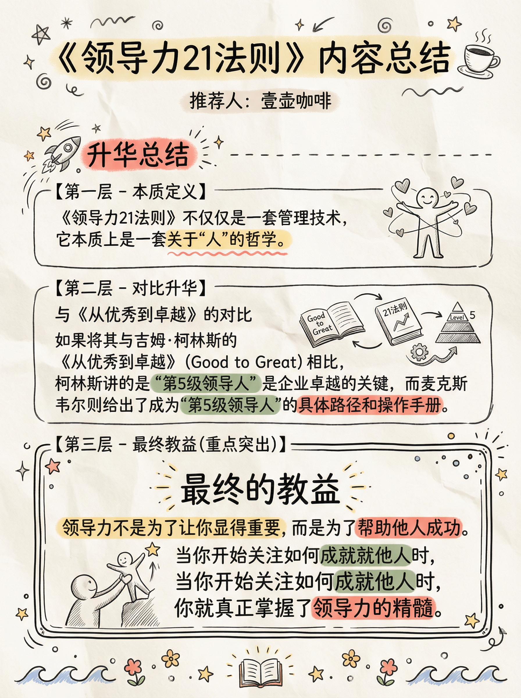 以前总觉得,领导力就是“定规矩”和“抓执行”。 直到读了约翰·麦克斯韦尔的《领导力的21法则》,我才意识到:👉 如果你以为你是在领导,却没有人追随,那你只是在散步。 👨🏻💻做管理者,不需要这一秒发火,下一秒后悔。你需要的是——过程法则。 领导力不是一天练成的,而是每天的积累。带人其实就是带心。 《领导力21法则》这本书不仅是CEO的案头书,更是每一个想在职场突围的人的“生存指南”。 📖它戳中了我的痛点: ❌ 拼命干活,团队业绩却不增长?——那是盖子法则限制了你。 ❌ 说了半天,下属听不进去?——因为你没有遵循亲和力法则,先感动心,再感动脑。 今天工作推不动了?别焦虑🙅 记住书里那句话:“领导力就是影响力,不多也不少。”从今天起,试着去赋能身边的人,而不是控制他们。 愿我们都能从“管理者”进化为真正的“领导者”