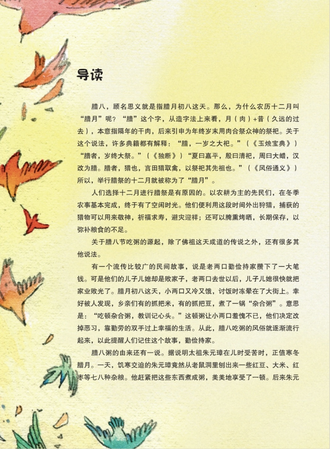 《腊八 节日里的中国 学习书》是潮新闻第十一期阅读活动我第一本读完的书,其是《节日里的中国》传统文化绘本系列中的一本。这个系列由孙亚敏等多位作者参与编写,旨在通过绘本、游戏和阅读相结合的方式,向儿童介绍中国传统节日。 下面是这本书的一些关键信息,可以帮助大家快速了解它: 📚 书籍基本信息 · 完整书名:腊八(节日里的中国:彩虹伞绘本馆) · 作者与绘者:孙亚敏(文), AMBER MA(绘) · 出版信息:浙江人民美术出版社,2018年 · 丛书构成:包含一本绘本、一本游戏书、一本亲子阅读书,共三册 · 定价:68.00元 🎯 内容与定位 · 核心内容:讲述腊八节的传说(主要介绍佛陀修行、牧女献乳糜,后演变为腊八粥习俗的故事),并介绍相关习俗。 · 目标读者:儿童(特别是学龄前及低年级学生)。 · 创作理念:采用 “故事(绘本)+知识(阅读书)+游戏(游戏书)” 的三合一模式,从多个角度介绍节日。 ✨ 主要特色与价值 · 形式创新:将故事、知识和互动游戏结合,可能更符合儿童认知习惯。 · 视觉呈现:插画具有中国风味,色彩柔和细腻。 · 文化启蒙:以轻松方式开启孩子对传统节日的认知。 ⚖️ 读者反馈与评价 读者评价呈现两极分化,具体如下: · 正面评价:认为画风精美、有中国风;是给孩子进行文化启蒙的好工具;故事可爱,适合低龄儿童。 · 批评意见:部分读者认为故事性大于知识性,对节日文化介绍不够详细和严谨;有读者指出书中存在内容重复和编辑错误(如将安徽“黟县”误写为“黔县”);还有读者认为系列质量不均衡,仅《腊八》等单本尚可,其他分册略显敷衍。 💎 综合点评与建议 这本书可以看作一份针对低龄儿童的传统文化启蒙“体验套装”。它的价值在于其创新的三维形式和视觉美感,适合用于亲子共读和节日氛围的营造,而非追求知识的系统性或深度。 如果大家想为自己或孩子选择这本书,可以参考以下建议: · 如果你的需求是:为自己和孩子寻找一本画面优美、有简单故事和互动活动的节日绘本,作为亲子阅读和节日仪式感的载体。那么这本书的设计是合适的。 · 如果你的需求是:为孩子或自己寻找一本系统、准确、深入介绍腊八节乃至所有传统节日文化的知识读本。那么这本书可能无法满足你的期待,你可能会觉得它内容稍显单薄且有疏漏。 总而言之,这套书更像一个精美的“文化点心”,意在引发兴趣和感受氛围,而非提供严谨的“文化正餐”。在购买前,最好能确认你的主要需求是“启蒙体验”还是“知识获取”。 如果大家对腊八节或其他传统节日更深入的历史渊源、习俗演变和背后文化内涵感兴趣,我也可以为你们推荐一些更侧重民俗学或学术普及类的读物哦~