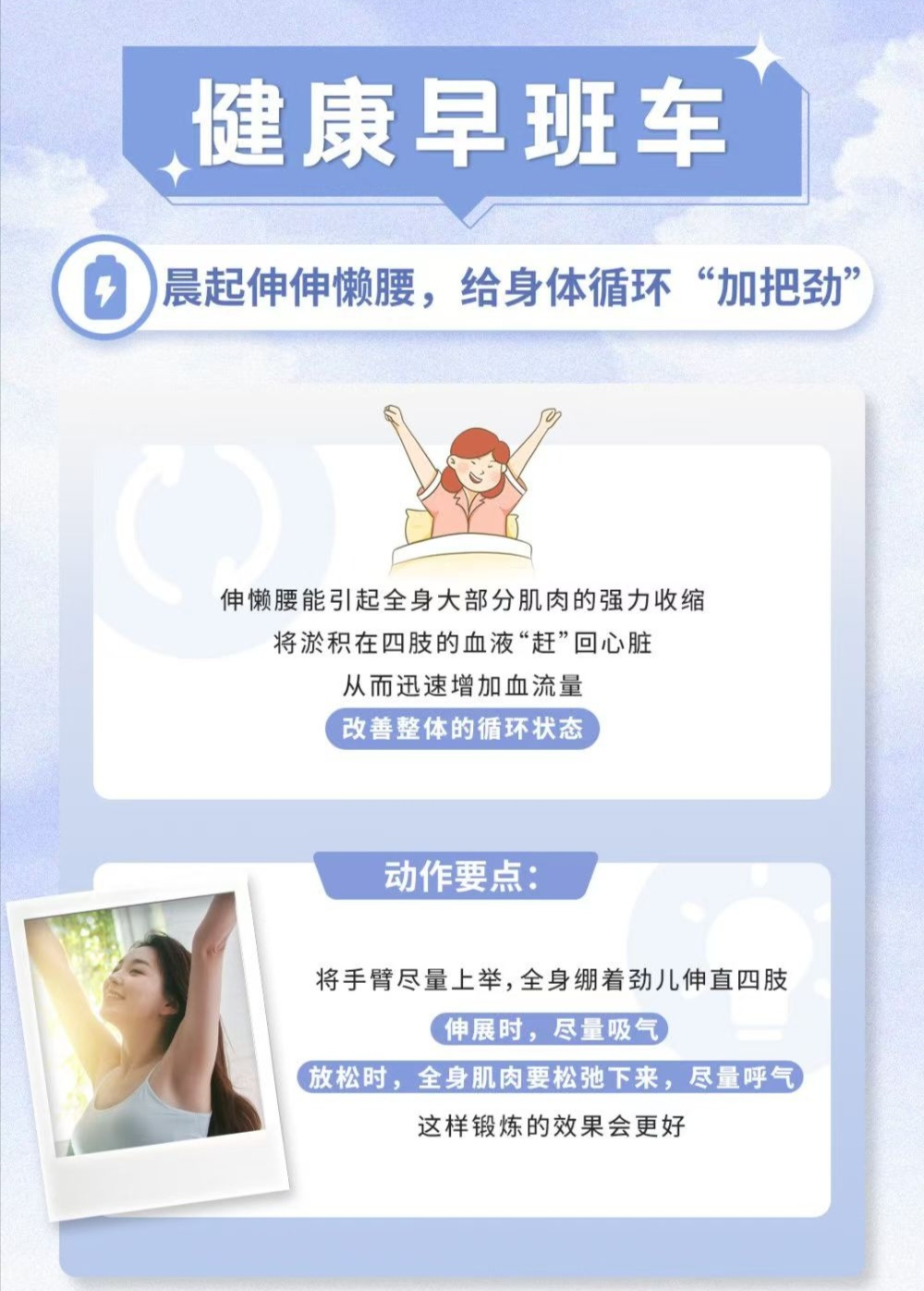 早上起床伸伸懒腰,给身体循环加把劲!