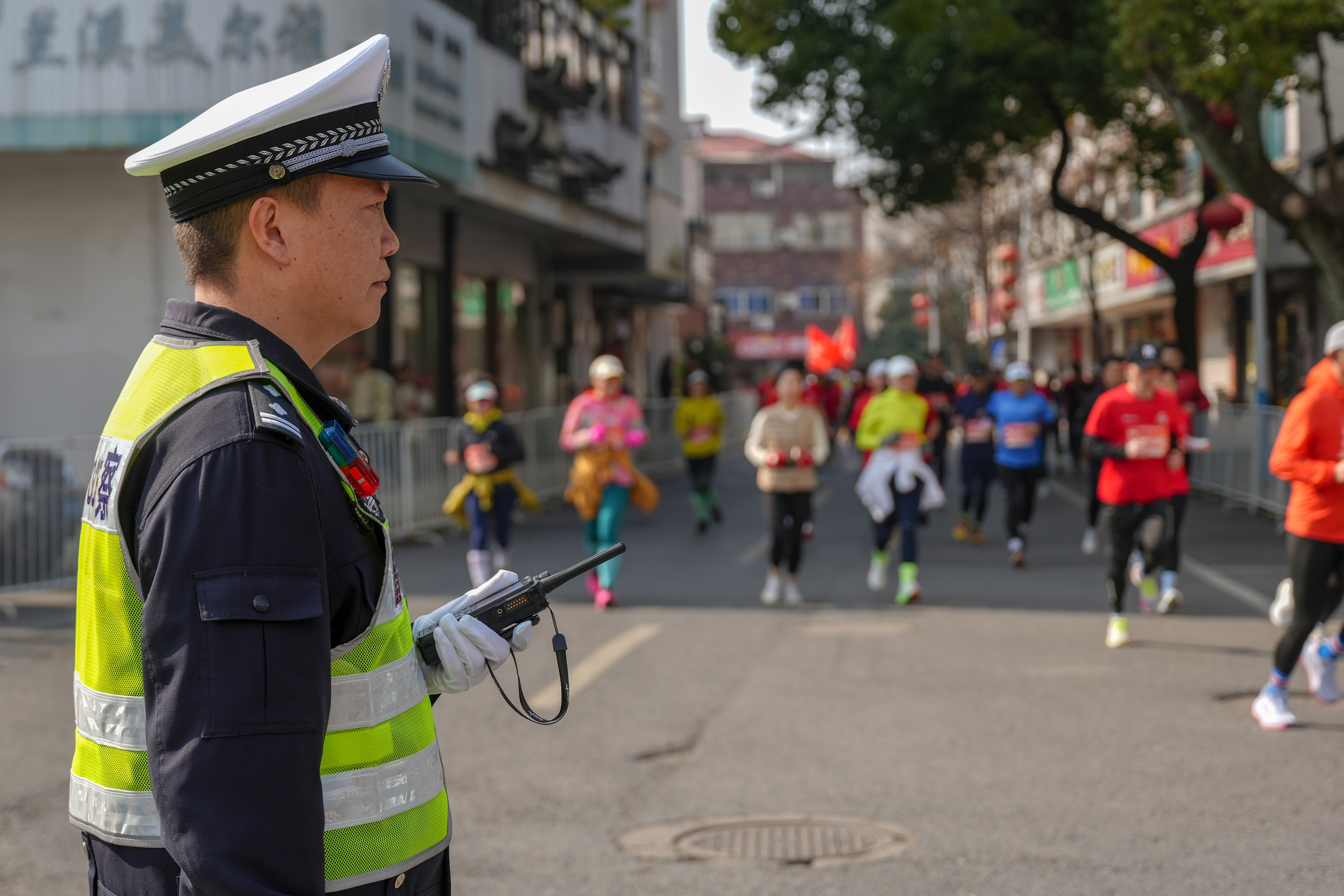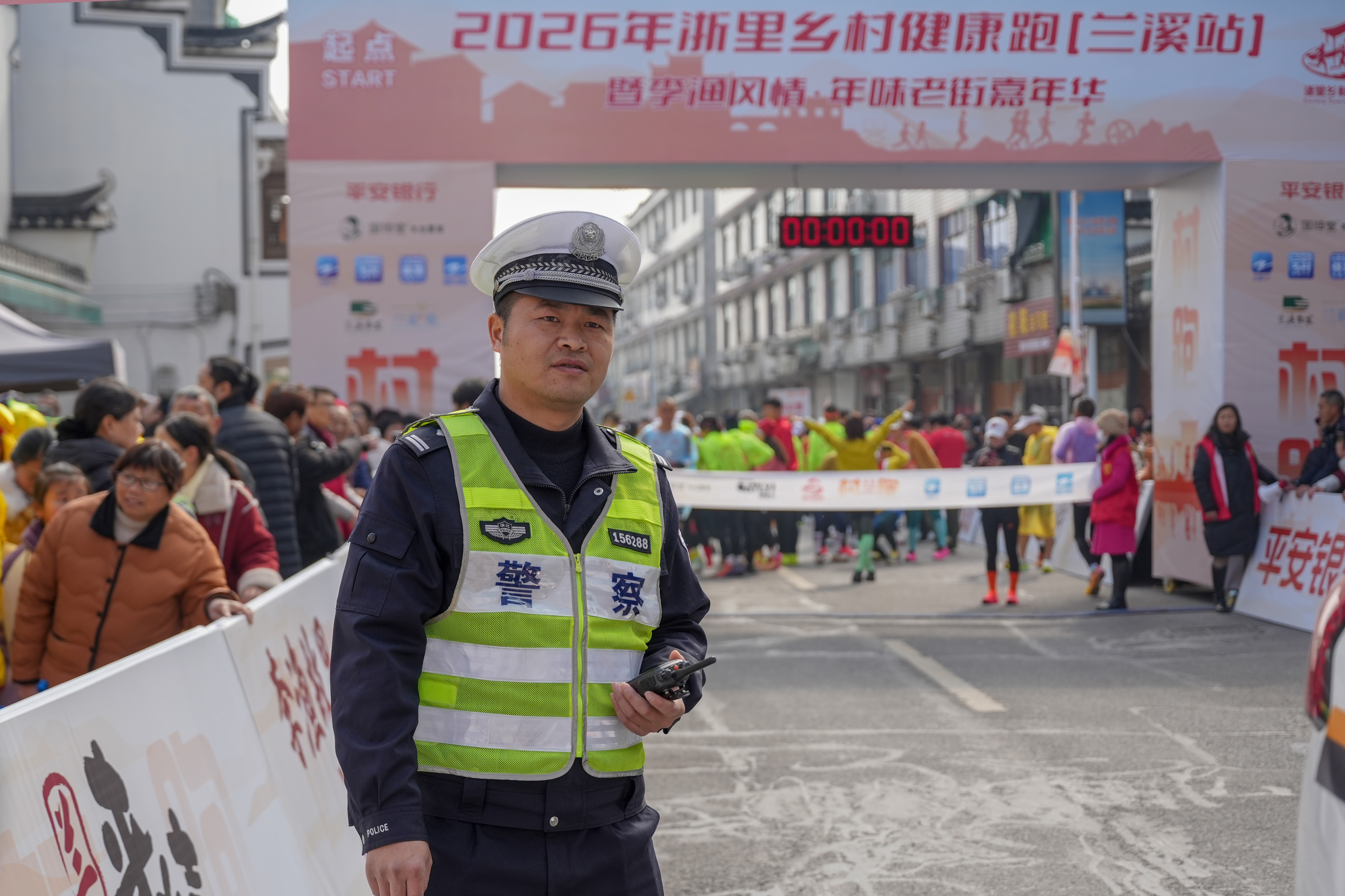 【平安“村跑”,藏蓝守护】1月24日下午,“浙里乡村健康跑”兰溪站暨“李渔风情·年味老街”嘉年华在浙江省兰溪市永昌街道的永昌古街鸣枪开跑。兰溪市公安局交通管理大队将警力下沉路面一线下沉,依托“铁骑巡逻、驻点执勤、空中巡查”的“空地联动”模式筑牢安全防线,守护10公里赛道上800余名跑者平安竞跑,全力做好赛道周边道路疏堵保畅、宣传教育、服务引导等工作,用责任与温情守护浓浓烟火气。(董剑浩)