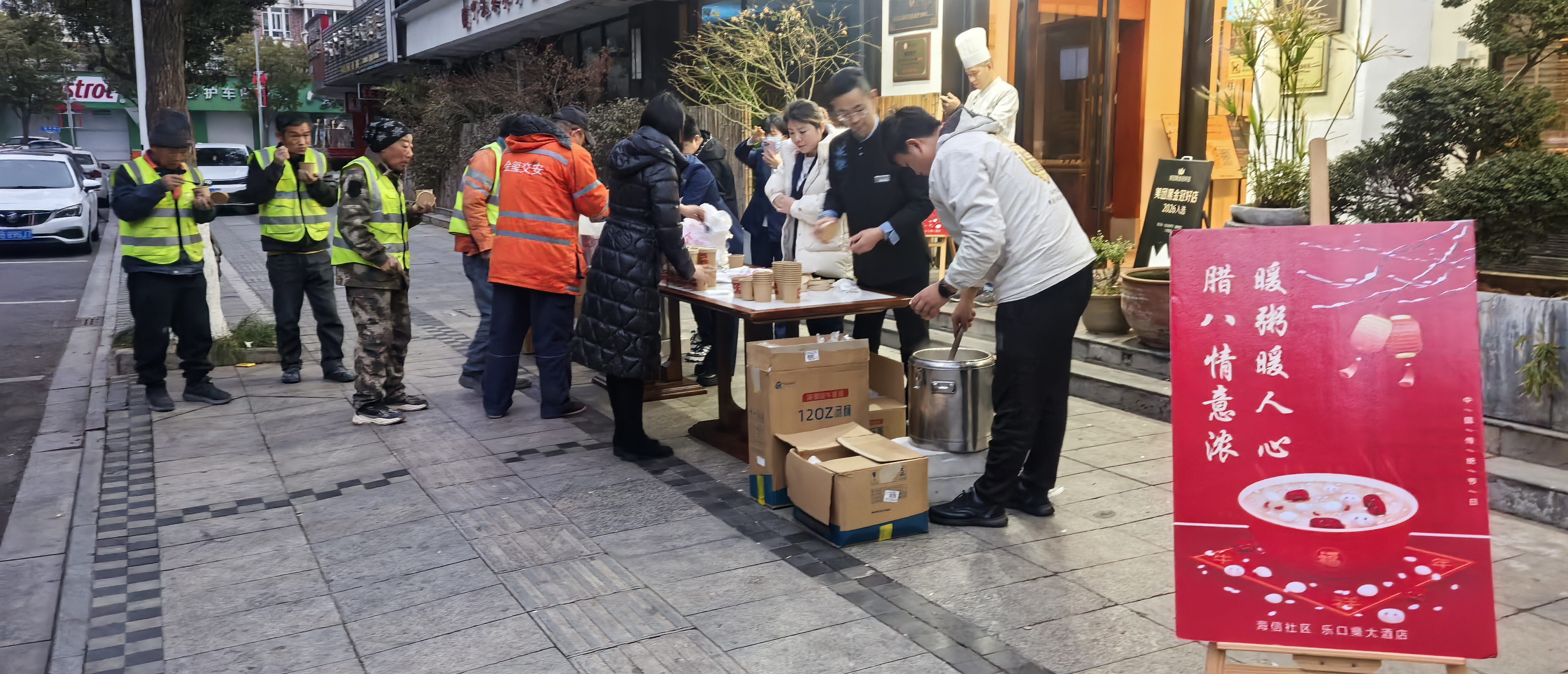 [编者按]我被工作的地方感动了:自已从早晨6:28分抵达现场,还用职业敏感视角生动纪录了大榭街道海信社区“信福里”故事—— 之一:让志愿者的双手用温暖传承中国传统“腊八节”,大学生能够一勺勺把宁波三十年老字号的乐口乐大厨师们甘润,熬了一宿夜粥喂入到在老人嘴里,那份情景看到的女孩与自已孩子一样长大了。 之二:通过她与他的榜样,从此给您送去的年味,而不是放在年迈的床头…… 之三:主办方、工作者都在与街头百姓一起品尝年味,使今年已坚守10年的故事在继续下去……而且一开始的广告词:“乐口乐和海信社区免费送,快来领……”大家一想应该是这样:“您辛苦了,在为大榭建设出了一把力,我们给您送年味来……” 之四:许多再也普通不过来舍粥、领一杯满满标贴有“信福里”自已的心意,他、她们用自已的方式,先录下视频,再双手接过粥! 之五:小花们文章也出手快—— 《腊八,大榭一条“信福里”视频传递着……》 “来,大哥,喝一碗腊八粥吧!”腊八至慰你风尘,年味浓碗粥甜香。在浙江省宁波市北仑区大榭街道信民路上“乐口乐海鲜酒店”大门口摆起了一排格外醒目的腊八粥摊位,大榭海信社区社工、酒店员工都成为了志愿者,将一碗碗热气腾腾的腊八粥送到了城市里最早一拔的人群有环卫工人、工厂上班族、上学的孩子手中,为冬日的大榭街头增添了浓浓情深的腊八暖意。 当天清晨,共发放腊八粥1600杯。一些市民还自媒体记录了喝了10个年头的镜头:一些市民亦亲亦甜把那份亲情记在心头——“啊,这已经是腊八送暖心粥拥有第十个年头了,我也是满怀感激呢。” 清晨6点开始,腊八粥也就这样在志愿者手上传递。志愿者和乐口乐厨师精心熬煮的腊八粥亲手递到赶着上班、送孩子上学的人群手中。每年腊八节海信社区的党员志愿者与乐口乐的工作人员都会为居民送上一碗软糯香甜的腊八粥,传递新年的喜气。 从提前一天的材料浸泡到凌晨4点的大锅熬煮,他们同样一起坚守了十年,这份坚守为志愿红增添了活力,让冬日温暖传递得更远…… “这腊八粥煮得好,香甜可口。”来自河南的一位居民在品尝完腊八粥后,直呼好喝又暖心。 “其实去年这个时候我在附近买早饭,也喝到了那次的腊八粥,那时候刚搬来不久,收到这份节日的暖意,挺温馨。” 住在隔壁小区的胡大姐开心地领完腊八粥说道:“每年就盼着这碗粥,自己煮腊八粥费事,也太麻烦,料多也难把控还就又费时,煮多了又吃不完,而且这份东西非大锅烧才地道哩。”一碗小小的腊八粥不仅煮出了传统节日的韵味,更凝聚着这家餐饮企业反哺邻里,也就在“信福里”群众拥有那份真情。在冬日的早晨,送上一碗暖融融、甜滋滋的腊八粥,喝在嘴里、甜到普普通通百姓心里。 暖粥的温情不止于街头。除了现场分发,社区的志愿者小分队又将“信福里”幸福感受精心打包好,还贴上“信福里”品牌的腊八粥标签送到社区军嫂灵活就业共富工坊,让军嫂感受别样的节日温情。他们走进大榭街道金城小区,让身体不便的阿婆感受到有年味至亲情感。 胡阿婆前段时间摔了一跤,腿脚不方便,最近很少出门,志愿者们带着腊八粥前去探望,还将一口口浓重年味送到嘴上,老人家高兴得合不拢嘴。 社区工作人员和志愿者还把一大桶腊八粥送到大榭颐养院,一碗碗地分送到长辈们手中。 志愿者“信福里”粥还送到马路上坚守岗位的交警手中,与他们共同分享腊八的甜蜜。 过了腊八就是年。十年坚守,一碗暖粥串起社区、企业与居民的那种大榭般情谊,把传统节日的美好与邻里温情熬进每一口香甜中。大榭海信社区党委书记胡飞凤说:“其实这份温情,更体现了文明新风在街头巷尾滚烫地流淌……” (供稿:花赛蓉 傅婷婷)