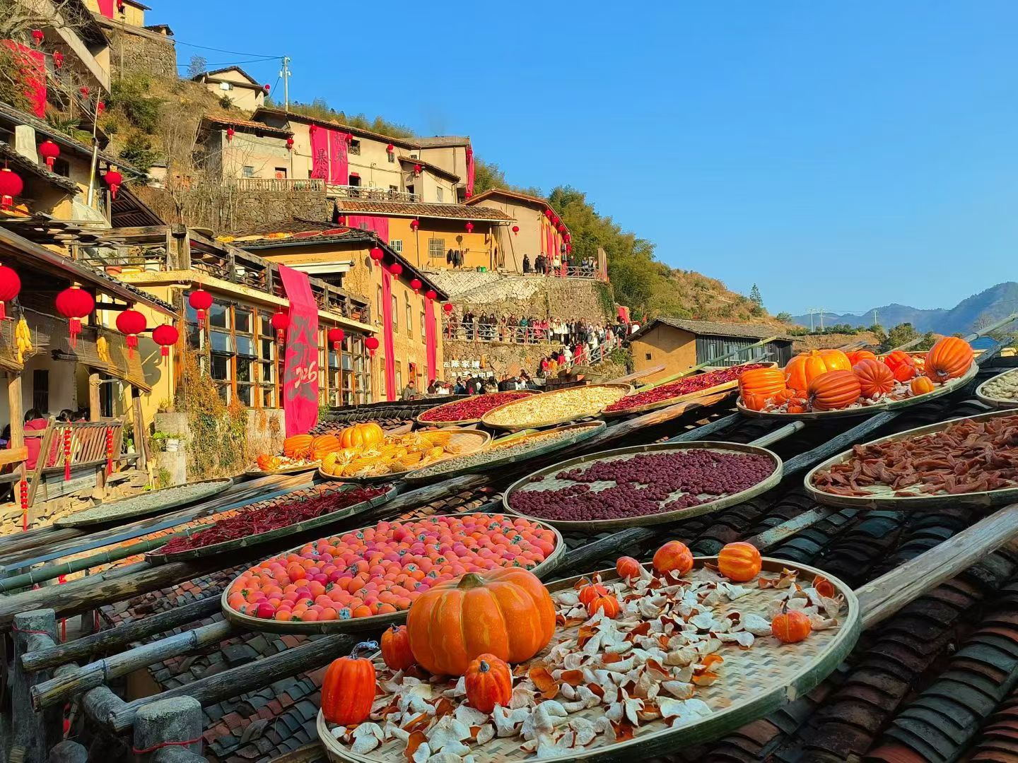 浙江陈家铺的年味有多绝😊红灯笼挂满山墙,晒秋色泼墨古村,央视盖章的"年味天花板",暖到心坎里!