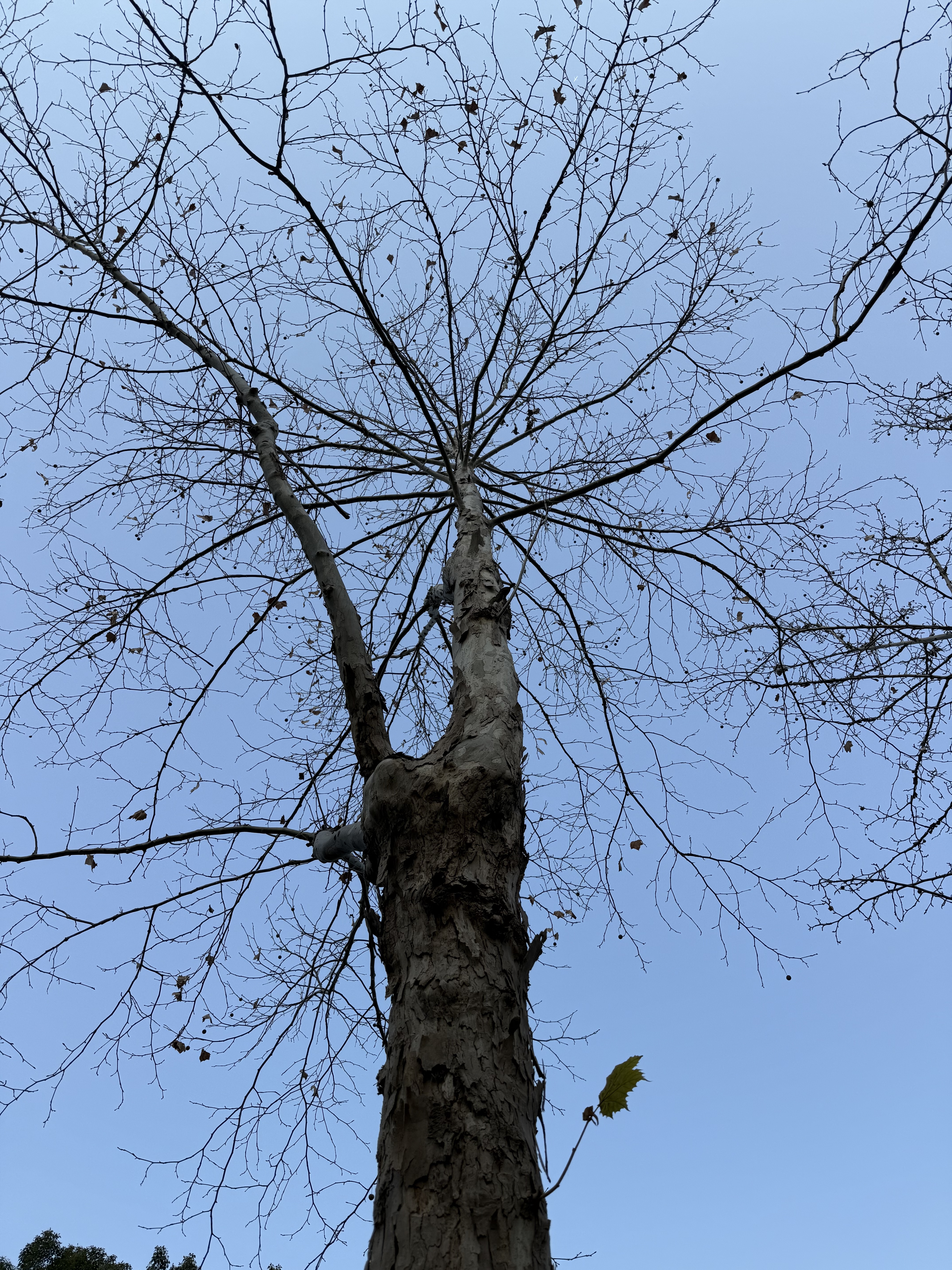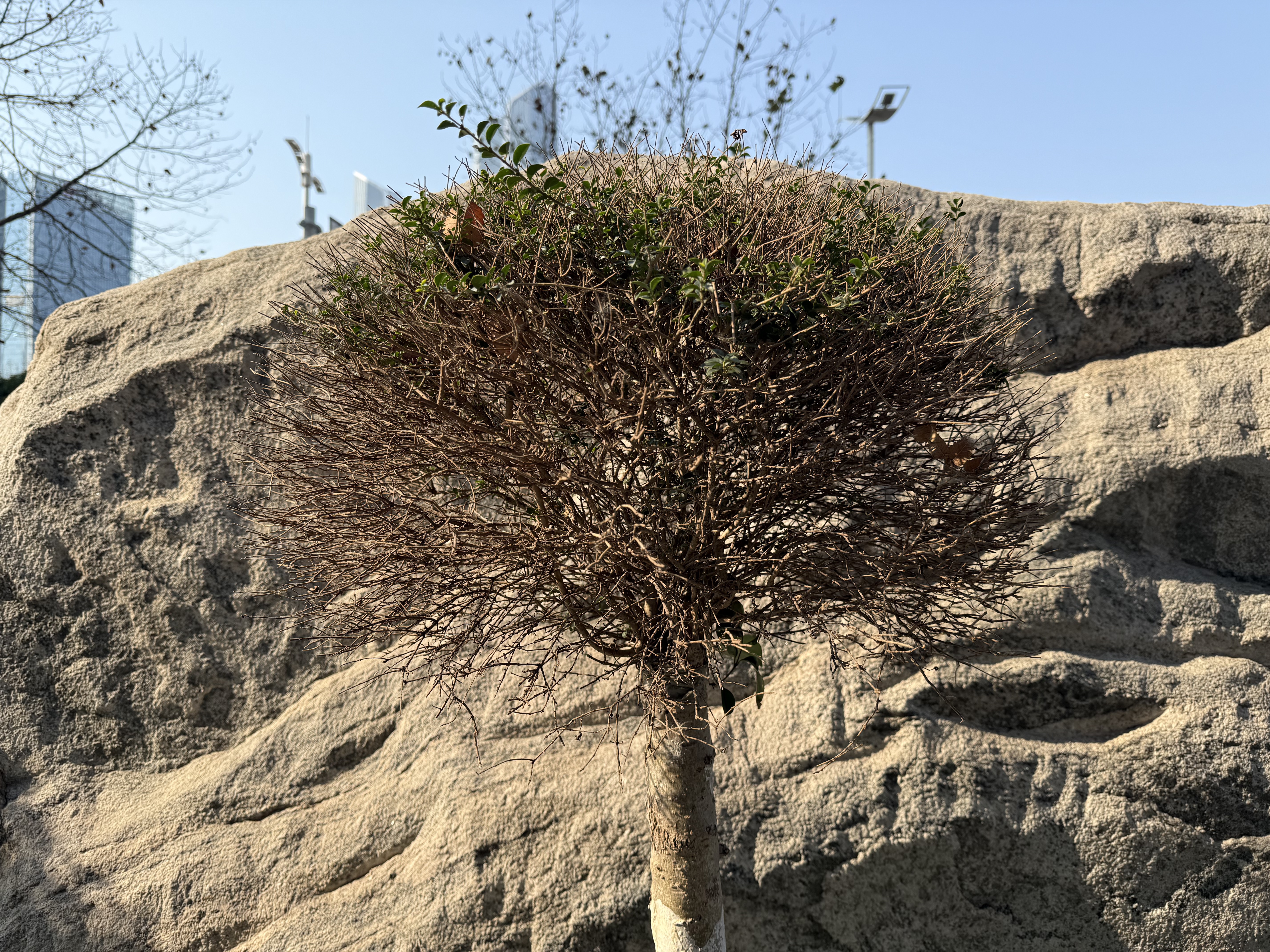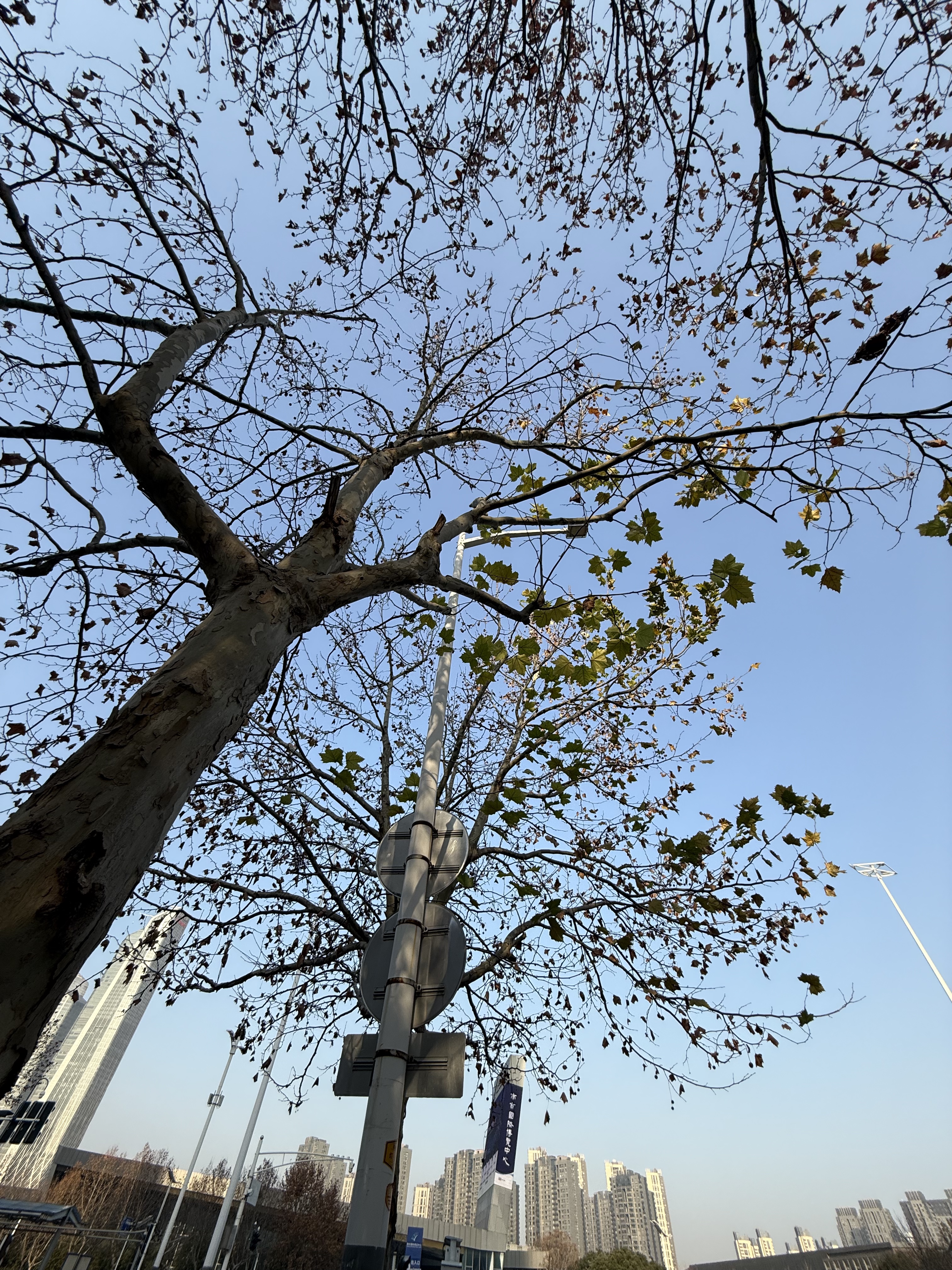 致敬大寒里的残叶。以前的印象,冬天到来以后,非常绿的树只剩下光秃秃的树枝。前段时间发现,不少梧桐树上不仅有焦黄的树叶,有些还有绿叶,展现了非凡的生命力。不同颜色的树叶相互映衬,比夏天一色的绿叶更有味道。不知名的灌木,也有这样的情况。