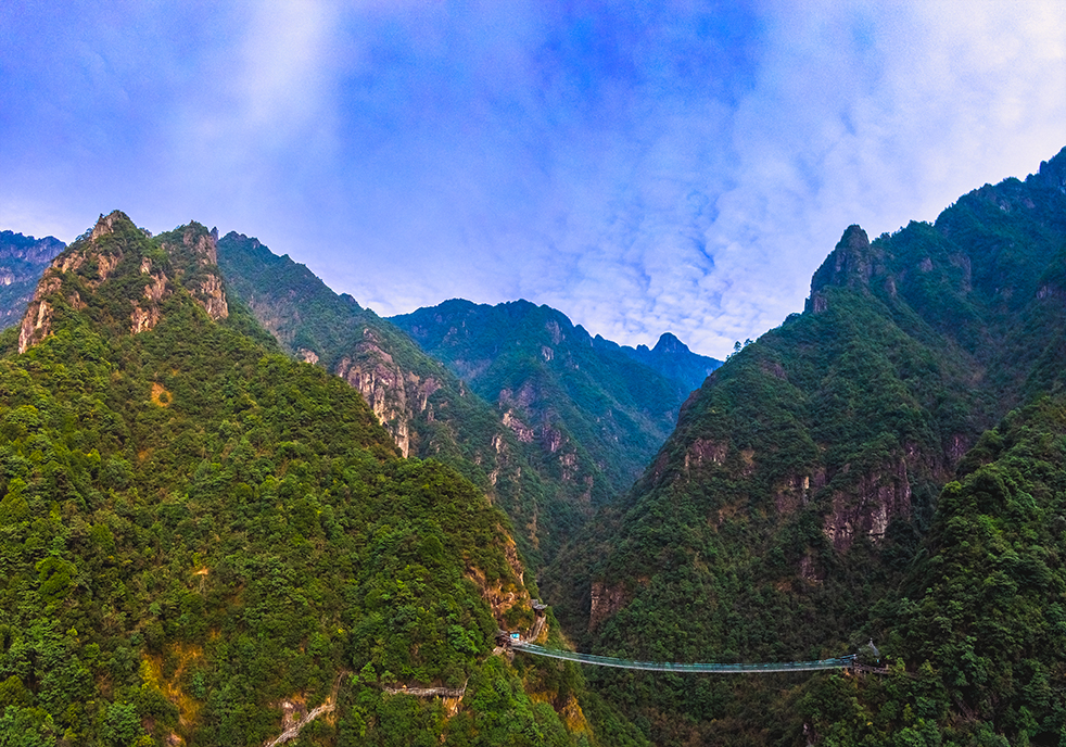 《绝壑飞梁行》 巉岩劈空青冥裂, 双峰欲倾云胁折。 一索横秋割苍烟, 飞梁悬魄贯寒铁。 俯窥渊壑蛟龙腥, 仰触星河乌鹊怯。 不知人力几艰难, 但见鸿蒙开险绝。