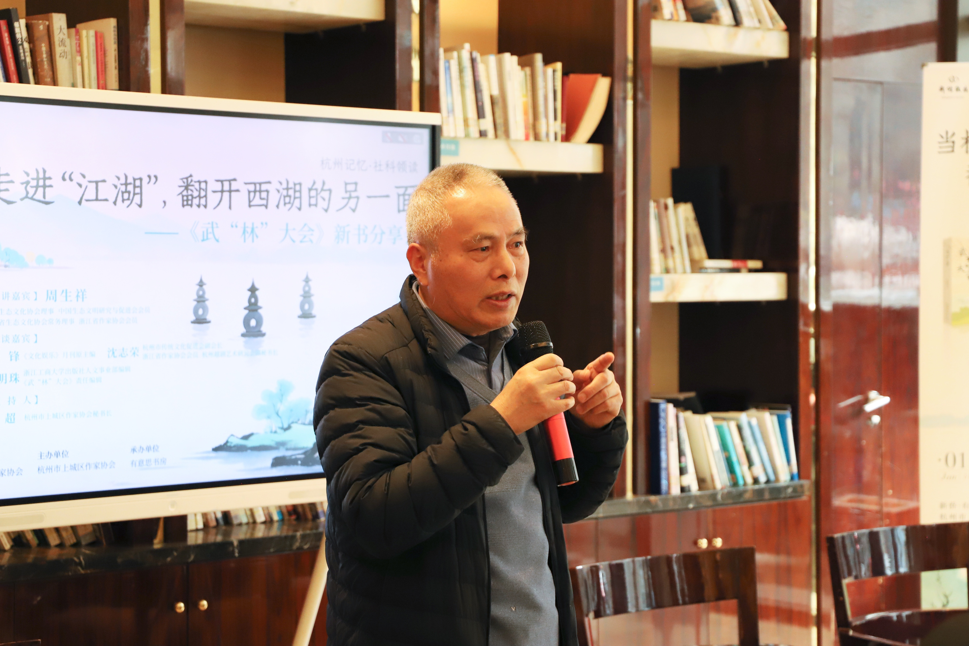一叶一江湖:西湖畔的草木低语 腊月初七的杭州,冬阳酿着蜜似的暖。解放路梧桐筛下的光影里,新侨饭店的“有意思书房”正氤氲着一场别样的聚会——空气中有书香,有茶香,还有一种若有似无的、来自草木深处的清气。 推开一扇窗,遇见一个会说话的江湖 窗棂外是淡墨般的西湖远山,窗棂内,作家周生祥先生含笑而立,手里捧着的不是书,倒像捧着一整个会呼吸的森林。“各位看客,”他声音温厚,如树根渗入泥土,“今日我们不谈刀光剑影,只说——松如何挺一身傲骨,柳如何垂万缕情丝,桃花瓣上,又曾掠过怎样的剑气。” 底下坐着的人们,眼睛忽然都亮了起来。那一瞬,仿佛所有人都听见了,西湖千年的湖山,正透过这一室的安静,开始娓娓地“说话”。 那个“不务正业”的倾听者 “我是个‘不务正业’的理科生。”周生祥这样介绍自己,眼角漾开细纹,像湖面被风拂过的涟漪。退休前,他是省林业厅的高级工程师,与树木花草打了一辈子交道。别人散步是散步,他散步,却是一场又一场的相逢。 “我总觉得,树在对我说话。”他分享道,目光悠远,“晨光里香樟的摇曳是问安,暮色中银杏的落叶是道别。你静下来,就能听见——它们争阳光时的细语,共风雨时的扶持,那是一个完整的、有情有义的江湖。” 正是这份沉静的倾听,催生了《武“林”大会》。在这部书里,西湖边的两百余种植物不再沉默。松是稳重的掌门,柳是温柔的女侠,桂子暗香可作无形剑气,残荷听雨亦成绝世心法。书名中那个带着引号的“林”字,便成了三重重门:推开是武侠世界的快意恩仇,走进是草木世界的枯荣有序,而那最深处的门楣上,赫然刻着杭州最古老的乳名——武林。 叶脉上的掌故,花瓣里的乾坤 分享渐入佳境。他信手拈来的,皆是草木间藏着的、活的掌故。 “都说‘腊梅’,其实应是‘蜡梅’。”他指尖轻点书页,仿佛在触碰花瓣上那层天然的蜡质光泽,“不是腊月的腊,是蜂蜡的蜡。古人观察得多仔细啊,那花瓣上的光泽,他们早看见了。” 又说及西湖十景之一的“柳浪闻莺”,声音便柔软下来:“前些年湖边柳树移栽,全城讨论。你看,杭州人对草木的深情,是刻在骨子里的。那不止是树,是记忆,是乡愁,是长在生命里的根须。” 他写作时,常让自己“消失”。“我没有什么框框,就让植物自己说,用它们的眼睛看,用它们的心感受。”于是,竞争阳光不再是冰冷的生物学,成了少年侠客的比试;缠绕共生的藤蔓,成了执手相依的眷侣。生态知识不再是枯燥的条文,而是江湖的规矩、门派的情义,悄然流入读者心田。 当江湖际会,于字里行间 对谈环节,三位特邀嘉宾的点评,亦如不同树木的风姿。或深刻如古柏,剖析生态文学的人文厚度;或清新华美如春樱,赞叹笔下的诗性世界;或务实如修竹,探讨科普与文学的完美共生。言语往来间,那个绿色的江湖,在众人眼前愈发清晰辽阔。 互动时分,读者的问题如枝头新叶,纷纷萌发。有年轻人问如何开始倾听自然,他答:“先停下脚步,认认真真地,认识你家门口的一棵树。”有人问写作的秘诀,他笑:“我不过是把心里听见的话,替它们说出来罢了。”于他,写作是爱好,是本能,是与世界对话最自在的姿势。 尾声:赠一本书,种一片林 日影西斜时,周生祥将一沓新书赠予书房。那简单的仪式,像是一粒带着松香的种子,被轻轻放入沃土。我们知道,这个故事将顺着文字的脉络,流向更远的远方。 分享会散了,人们推门走入西湖的暮色。忽然觉得,身旁的每棵树、每株草,都有些不一样了。风过柳梢,那是青衫飘飘的侠女在低语;暗香浮动,那是内功深厚的隐者在吐纳。 原来,每一本书都是一扇这样的窗。推开它,窗外不只是山水——山是脊梁,水是柔情,而那漫山遍野、生生不息的草木,是一个平等、鲜活、正在我们耳边轻声细语的,整个江湖。 腊月江南暖,江湖一叶知。从此以后,当我们走过西湖,走过任何一片有绿意的地方,或许都会驻足片刻。因为我们已经知道,那些静默的枝叶间,正藏着风云际会,等着有心人,去听一段千古传奇。