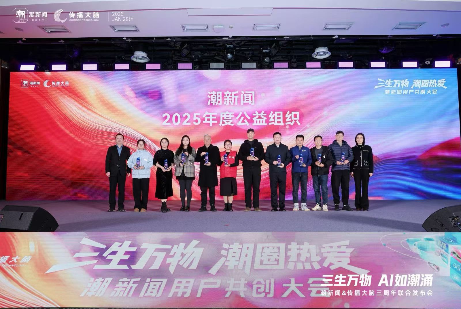 1月28日,“三生万物 潮圈热爱”潮新闻用户共创大会举行。来自五湖四海的创作者代表、平台机构代表、行业专家、媒体代表等300余名嘉宾汇聚一堂,共同感受潮新闻开放式内容生态的满满活力,分享彼此创作路上的闪光时刻,点燃新的灵感火花。在本次大会上,杭州市上城区戚宝兴公益服务中心被授予“2025年度公益组织”称号。展望未来,戚宝兴公益服务中心将继续秉持初心,在公益道路上深耕前行,传递更多温暖与力量。
