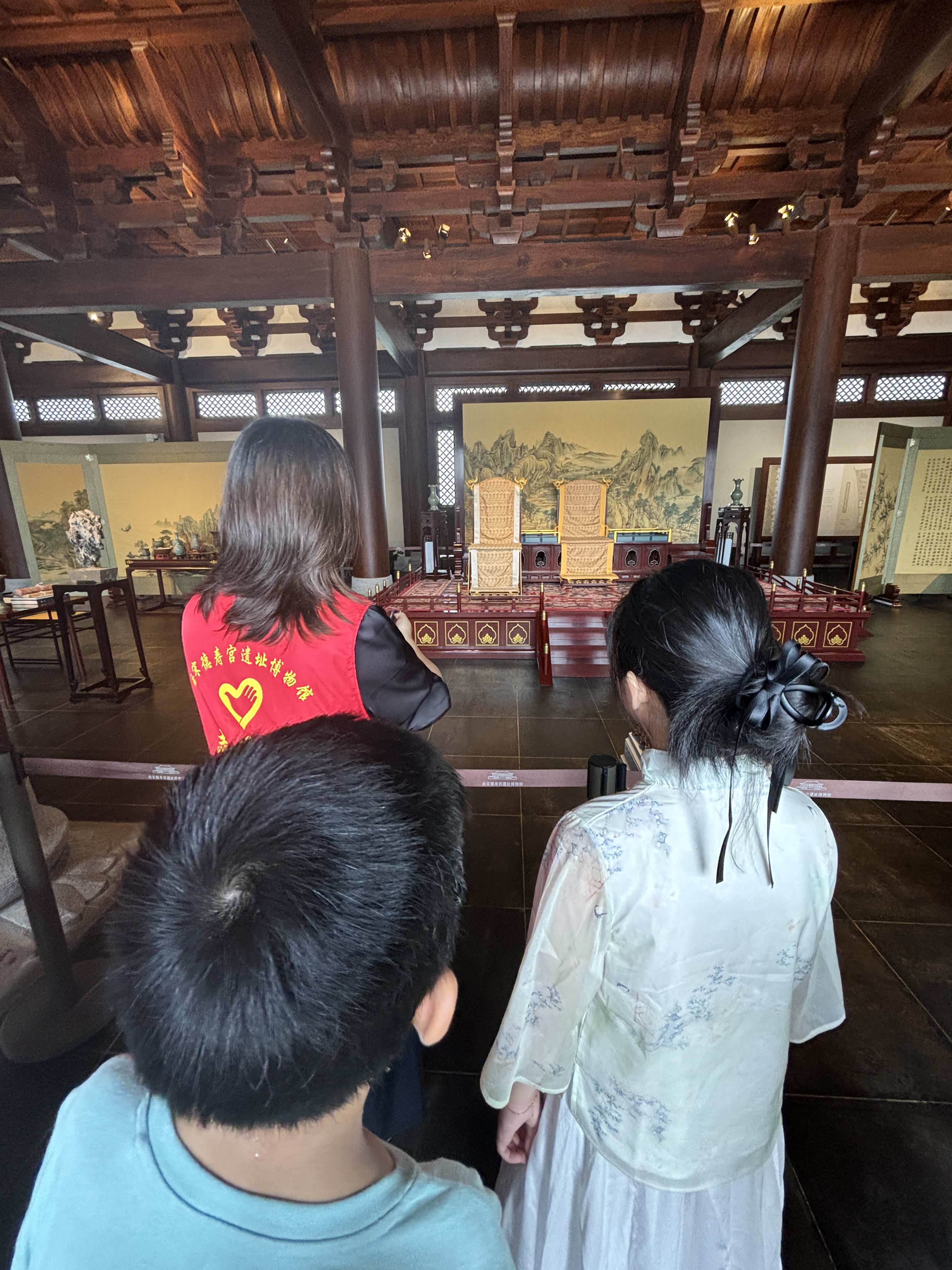 德寿宫遗址博物馆是杭州现存并发掘的最重要的南宋历史文化遗存。去年夏天,杭小栗参观了博物馆。馆中精细复原了建筑环境,数字讲解新颖有趣,让我们沉浸其中。 这一次参观中最有意义的经历,就是我们跟着公益讲解员,聆听了近2小时的讲解,老师温柔亲切而又娓娓道来,带大家于红墙、青砖、黛瓦中探寻南宋的风华,让我们震撼满满,非常有收获,尤如一次跨越时空的双向奔赴✨✨✨ 作为一名小讲解员和小志愿者,杭小栗刚刚幸运地获得了潮新闻2025年度公益达人称号。正是像德寿宫公益讲解员这样的志愿者老师们,以精湛的讲解和公益的态度深深地影响了孩子一一这是成长路上一份无价的财富🌹🌹🌹