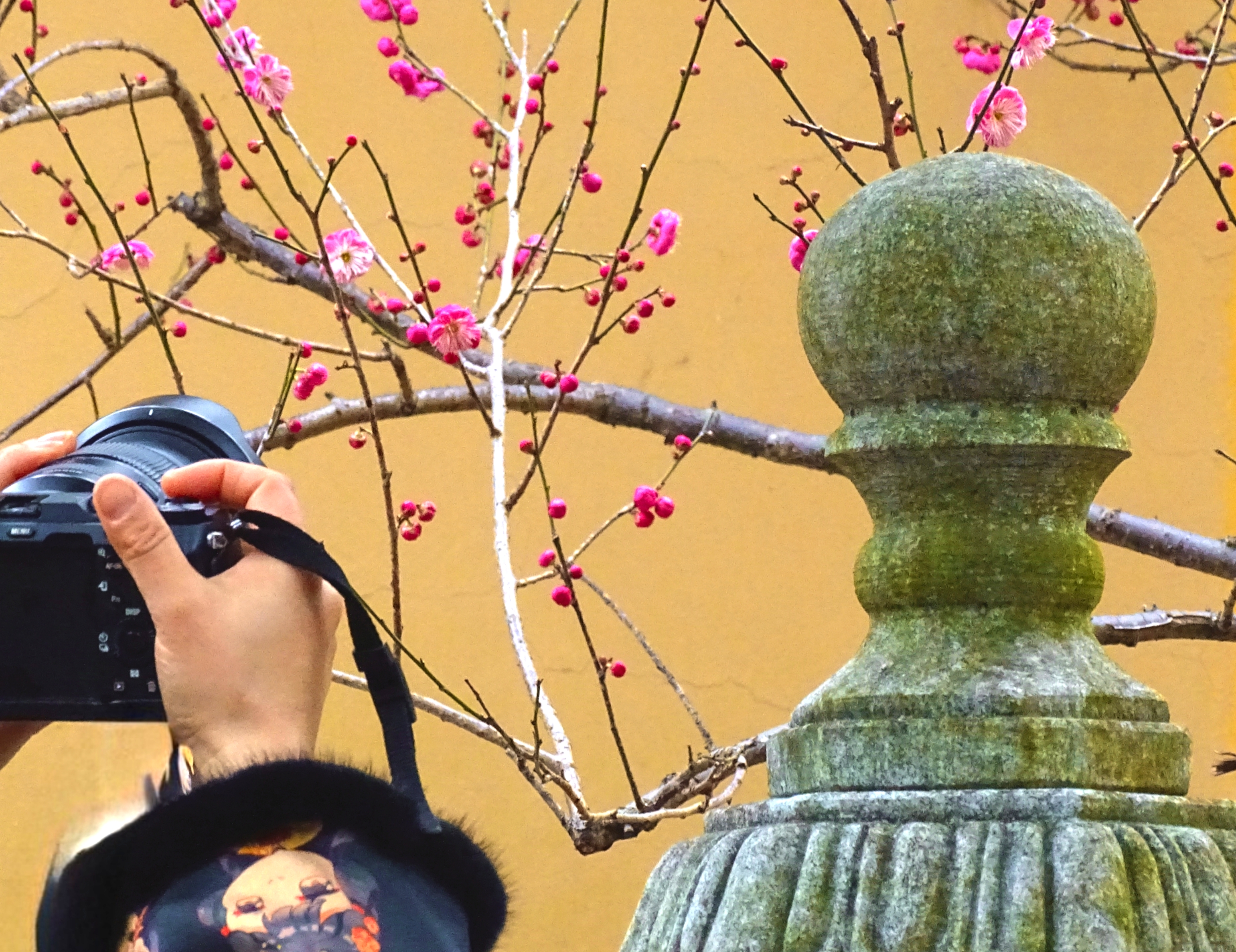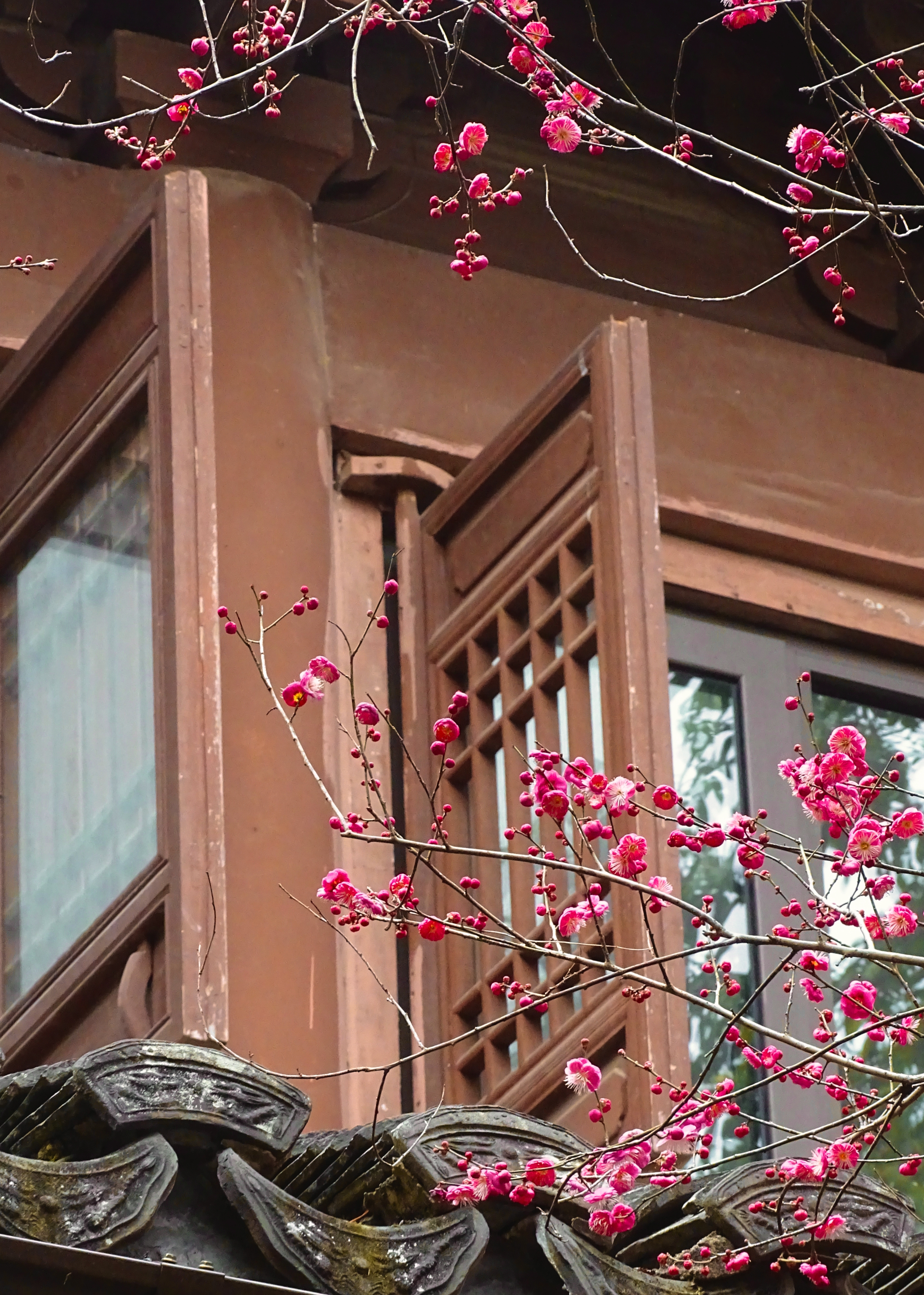 近日,慧因高丽寺梅花盛开,古寺映着粉梅,连空气都香香的。穿汉服的姑娘们站在花下,像从画里走出来一样。