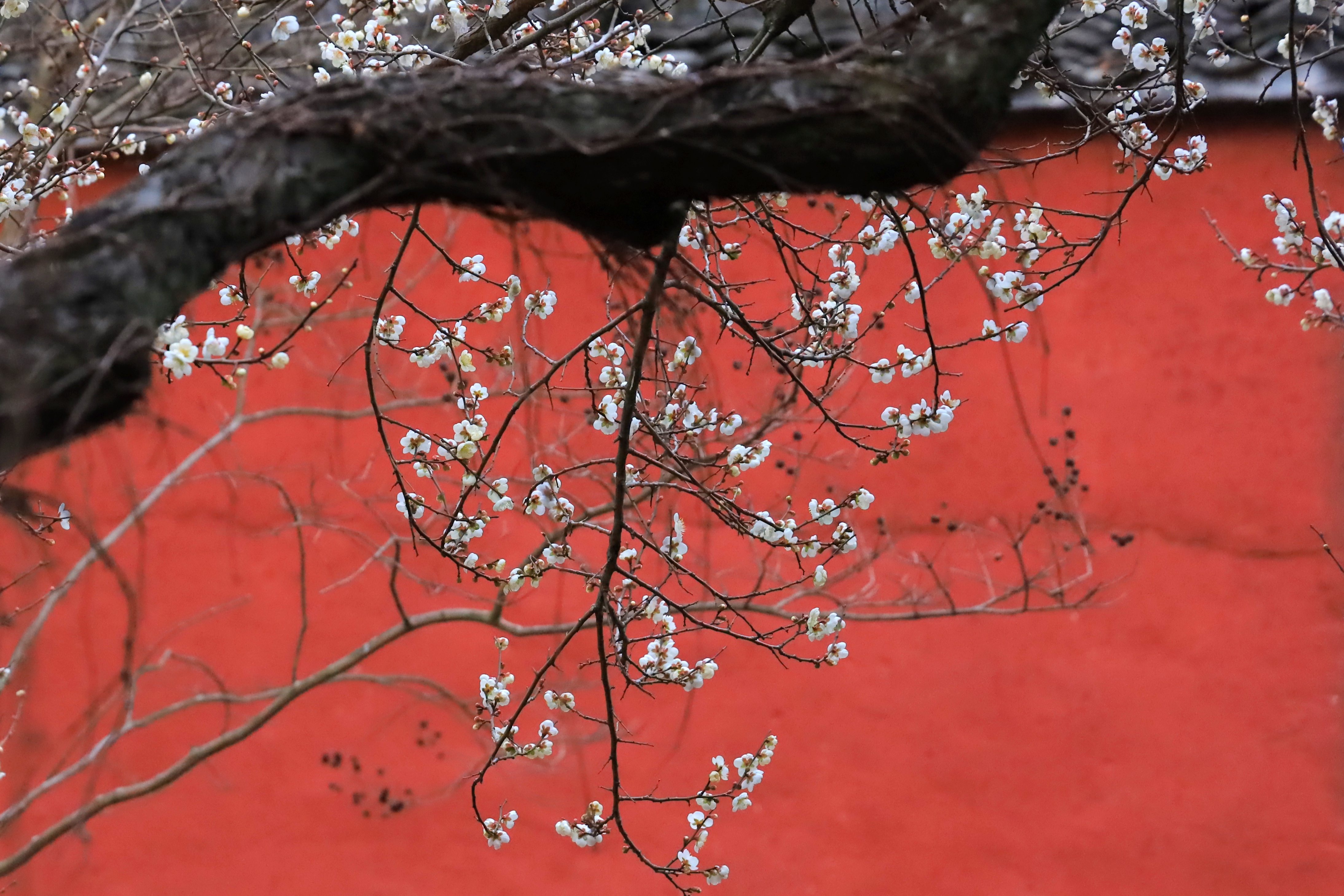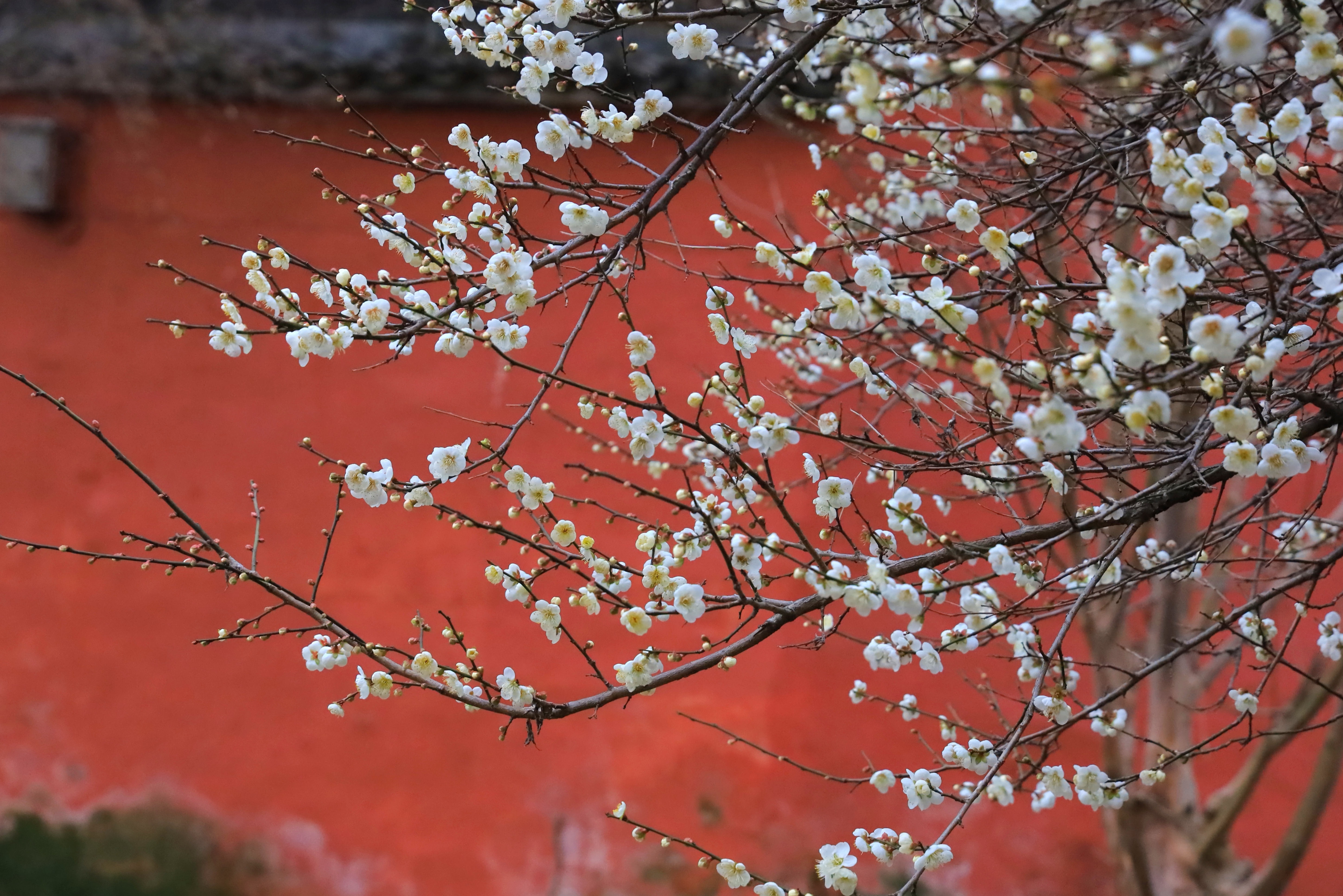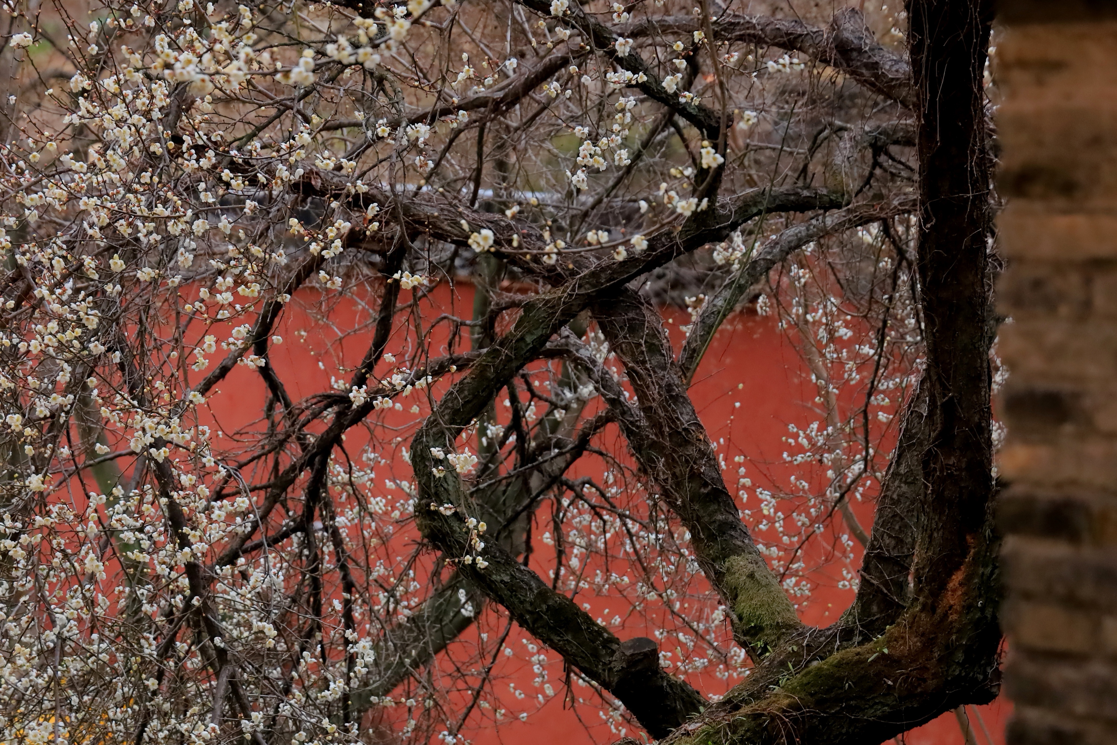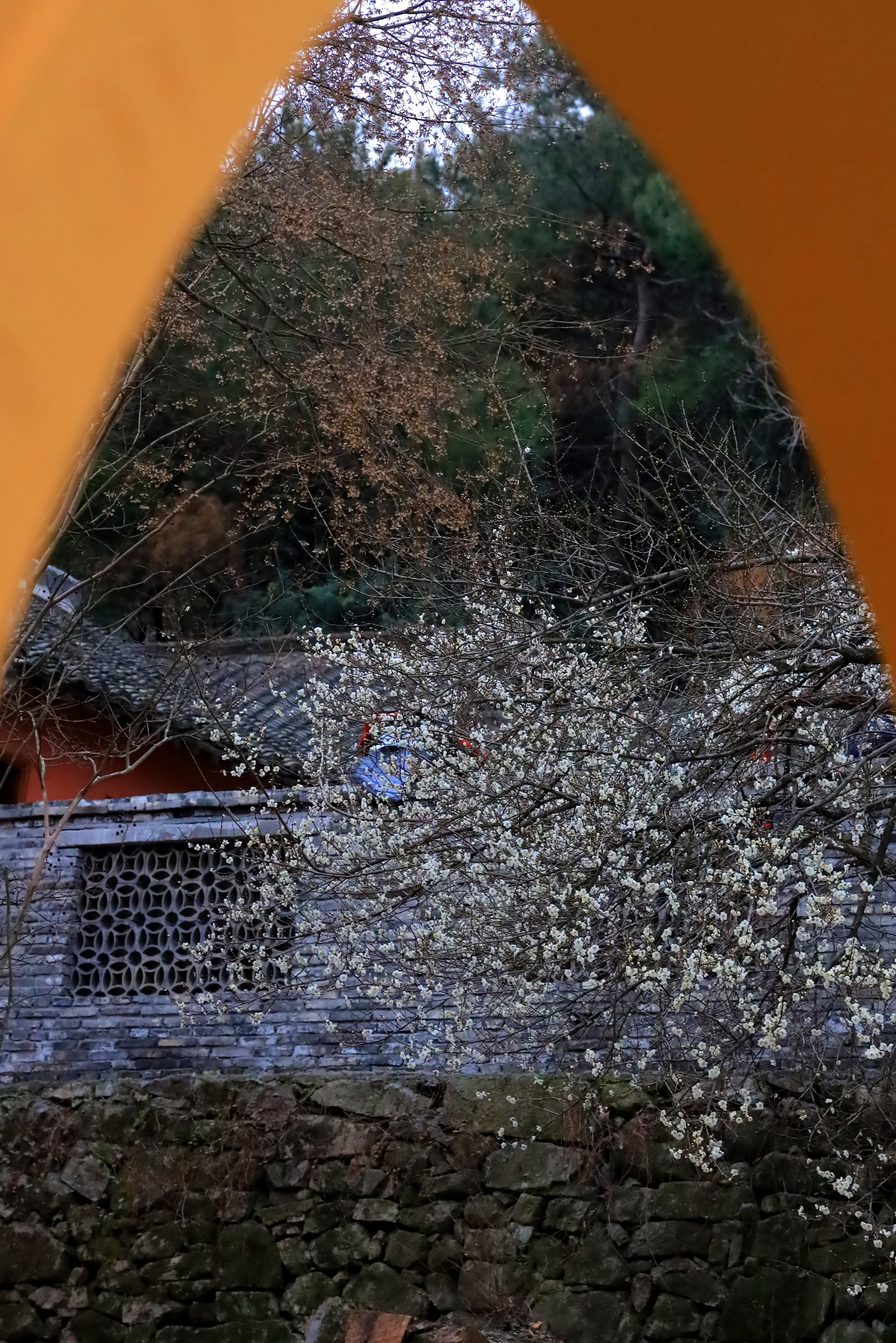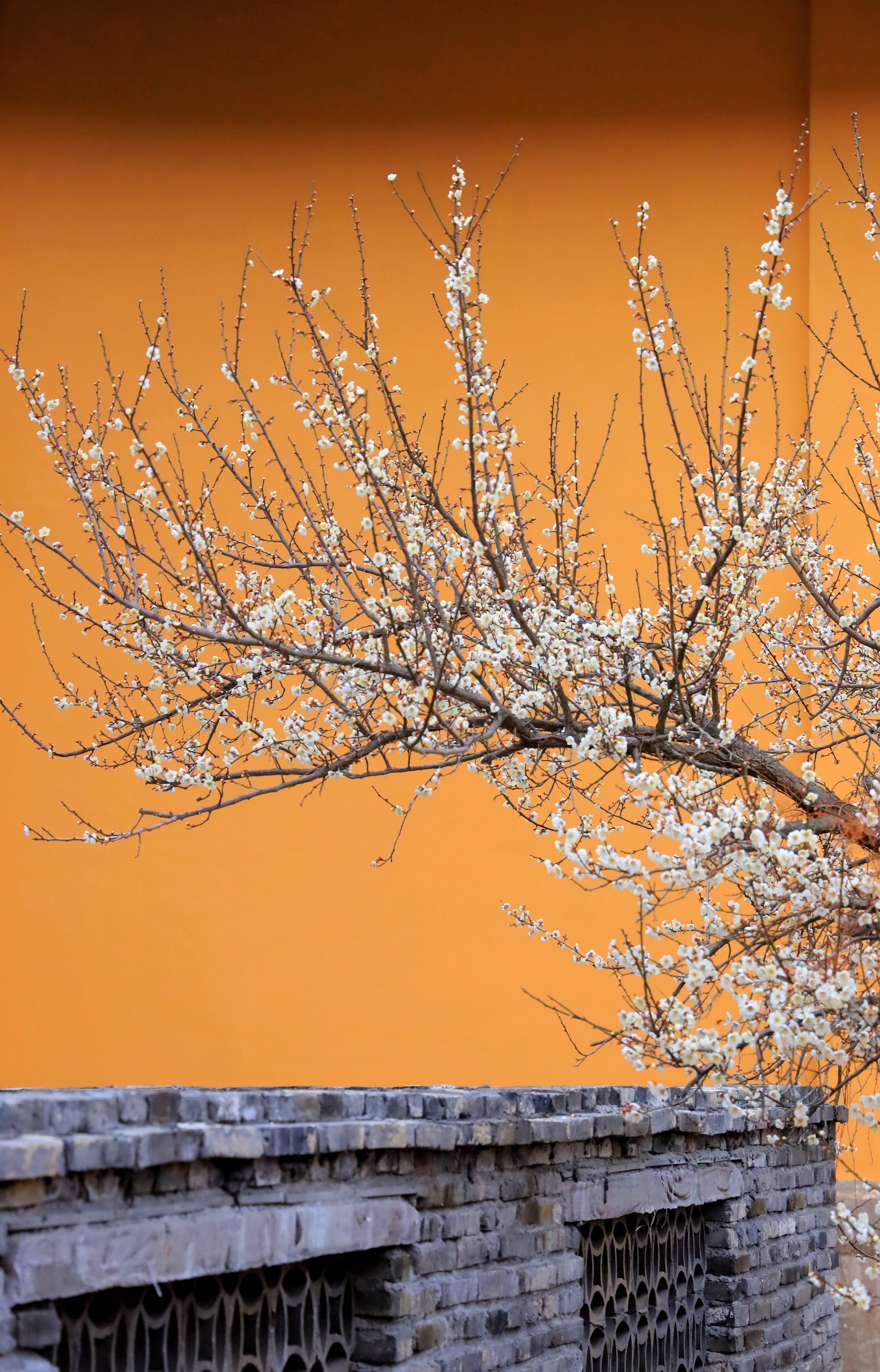 云岫庵出自陶渊明 “云无心以出岫, 鸟倦飞而知还” 庵内二树白梅 枝桠疏影花如雪 更有红黄青墙相衬 如画生香,甚是美妙