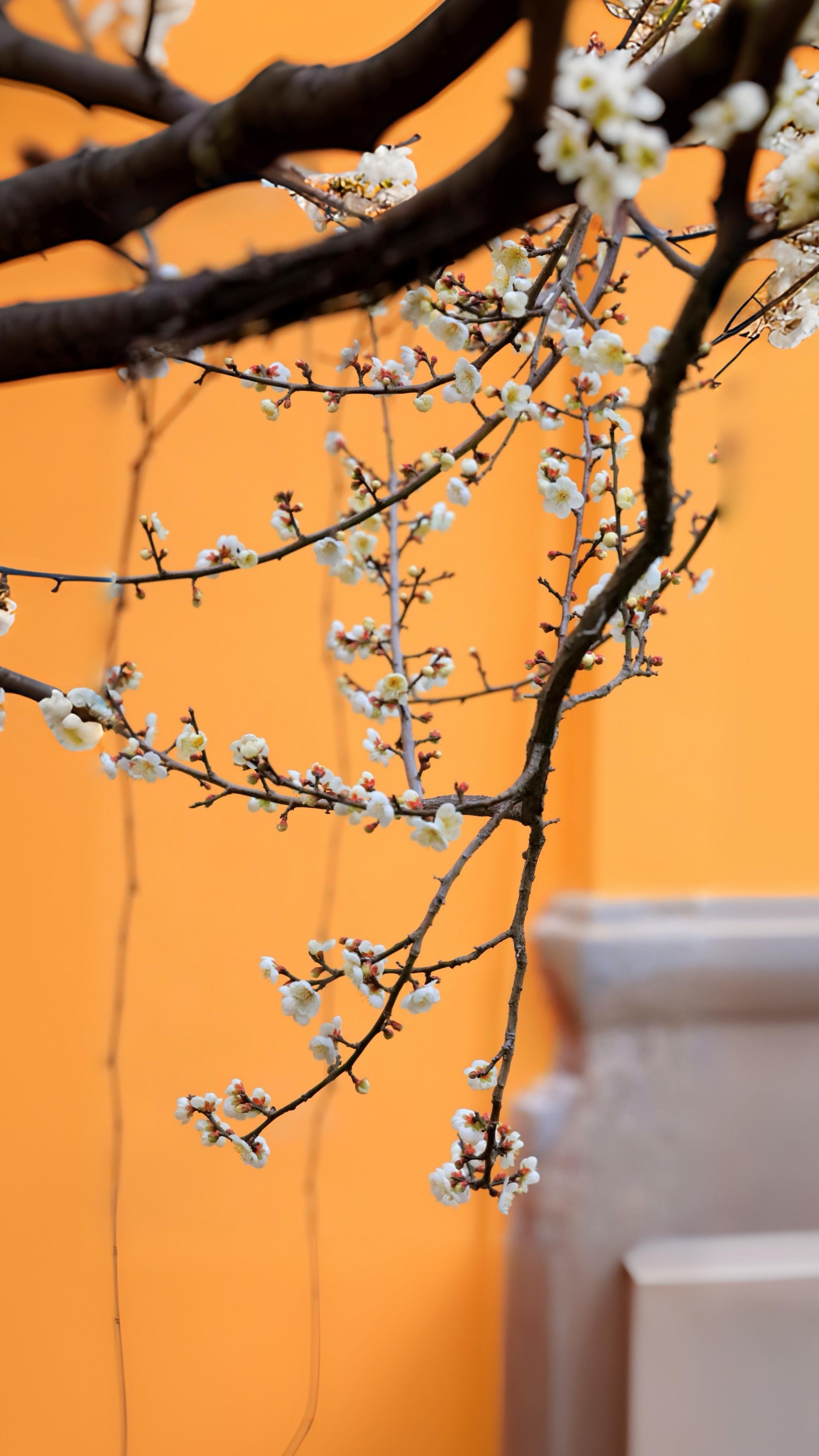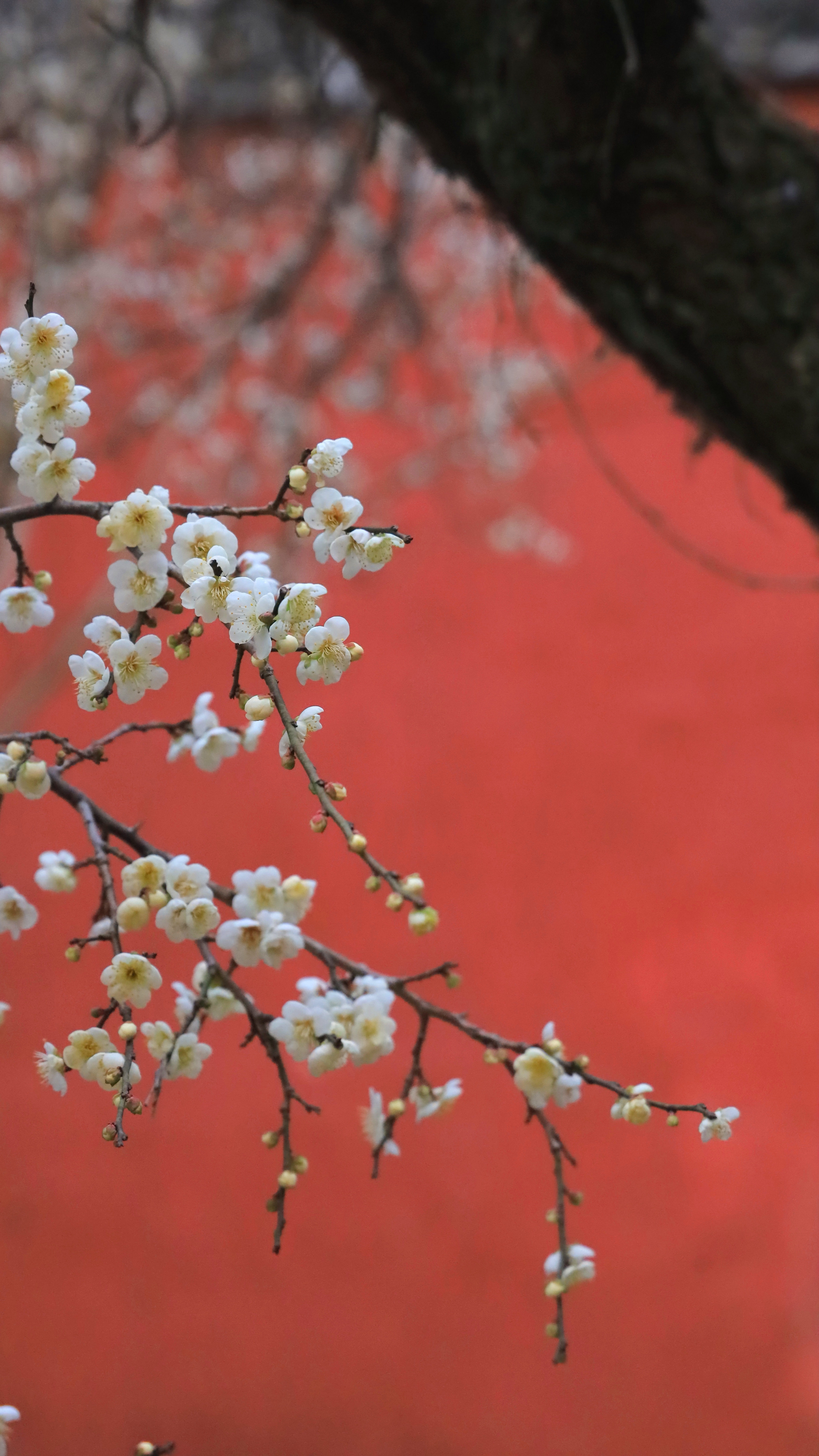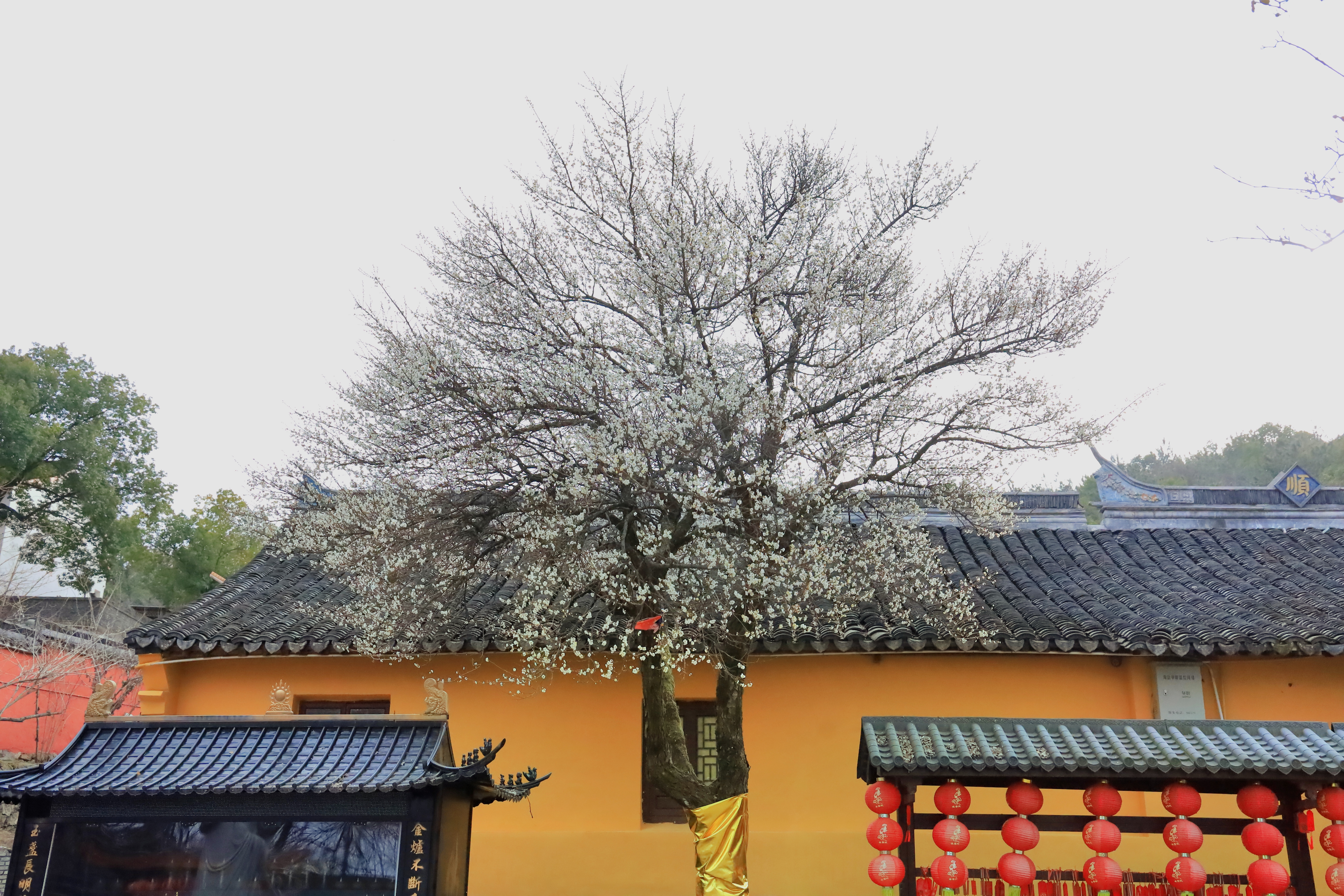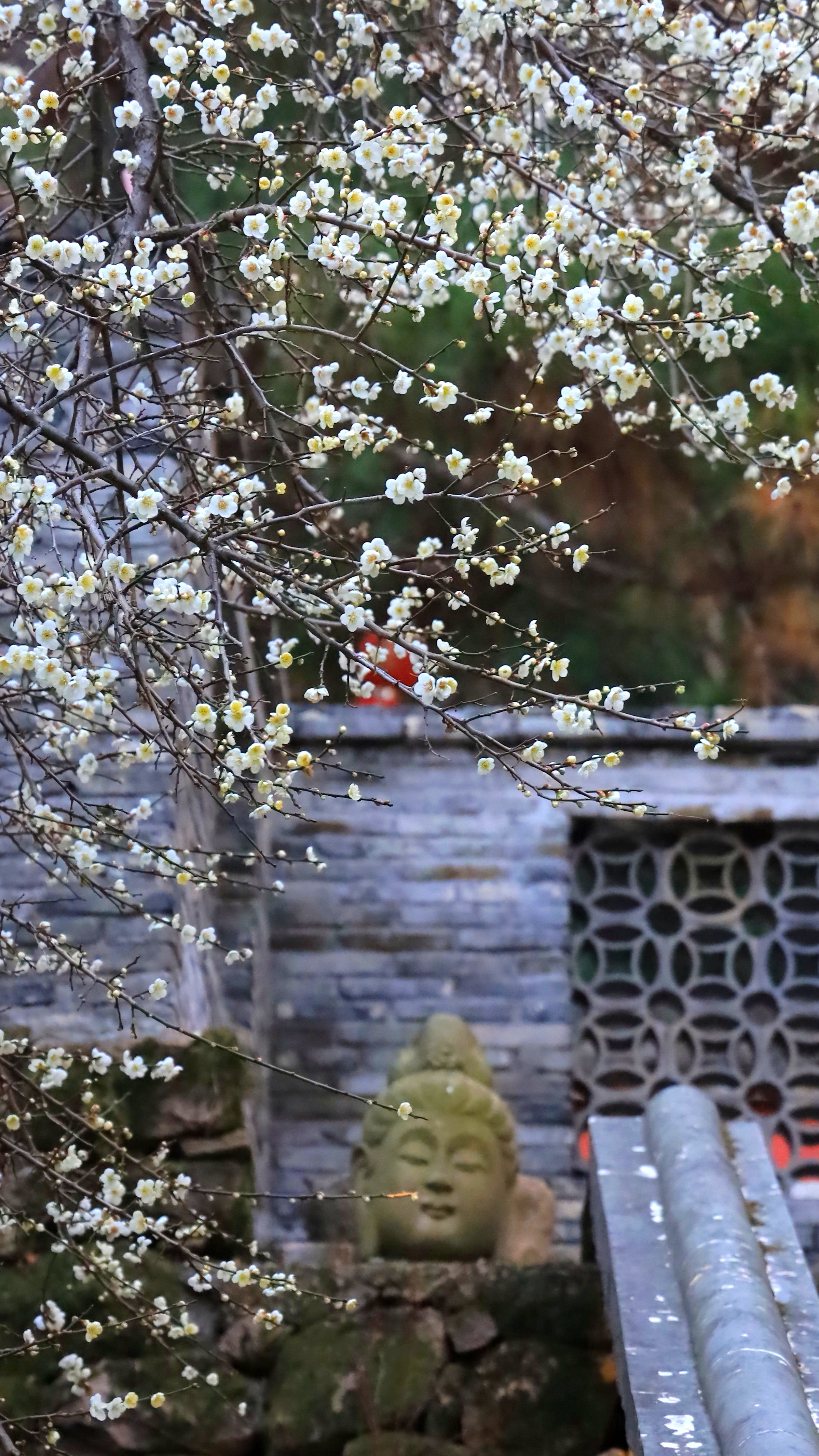 云岫庵出自陶渊明 “云无心以出岫, 鸟倦飞而知还” 庵内二树白梅 枝桠疏影花如雪 更有红黄青墙相衬 如画生香,甚是美妙